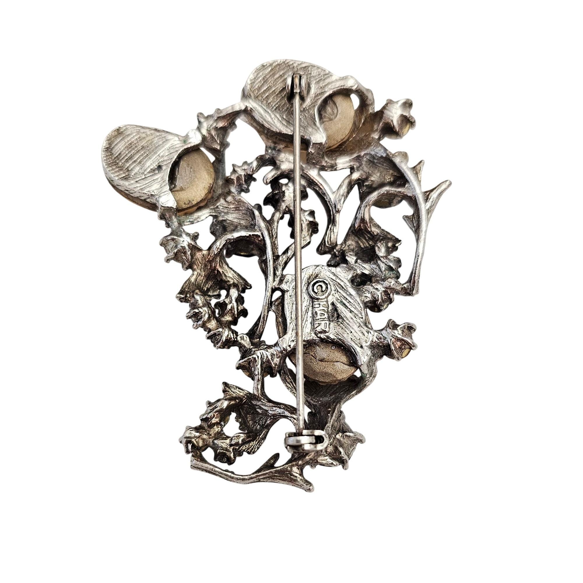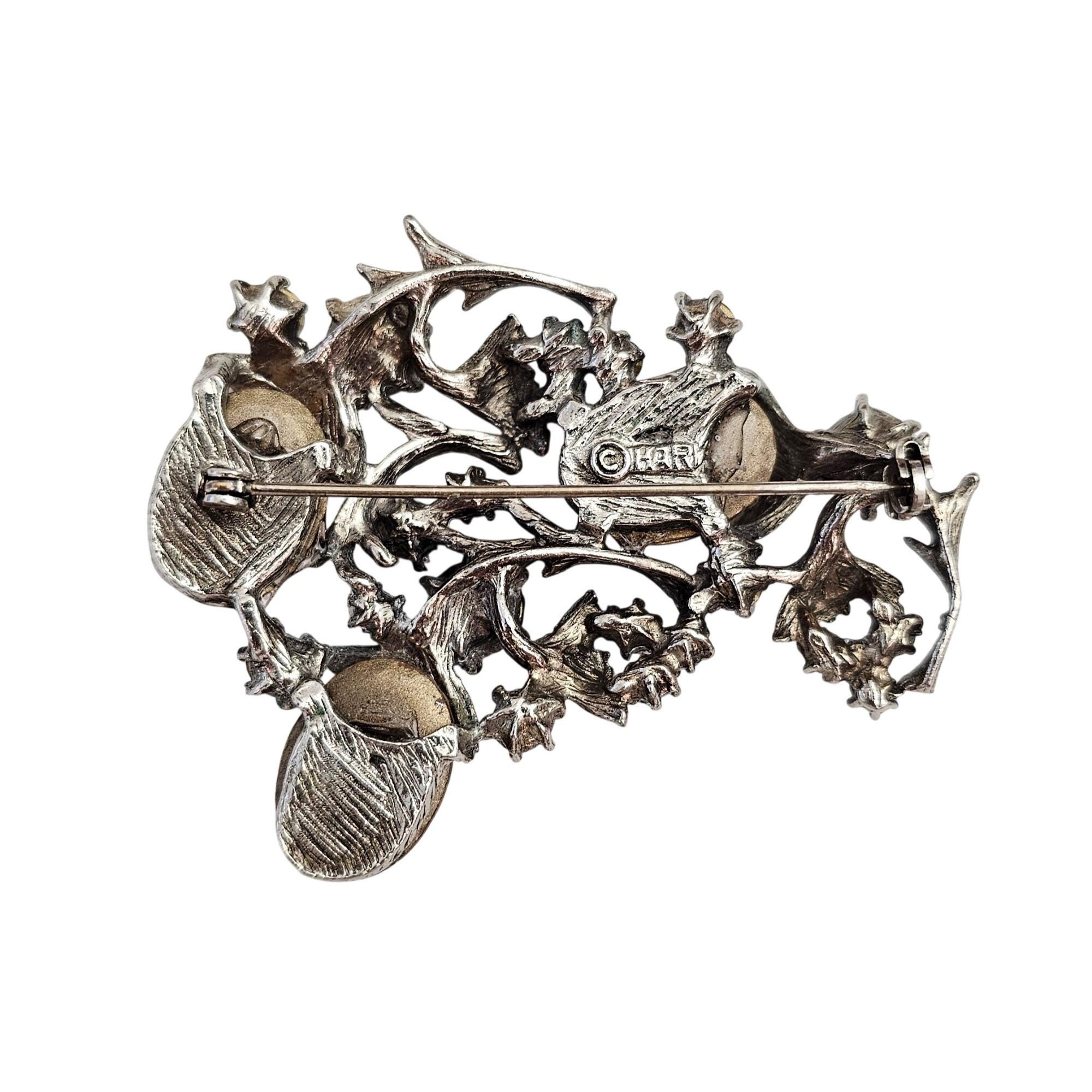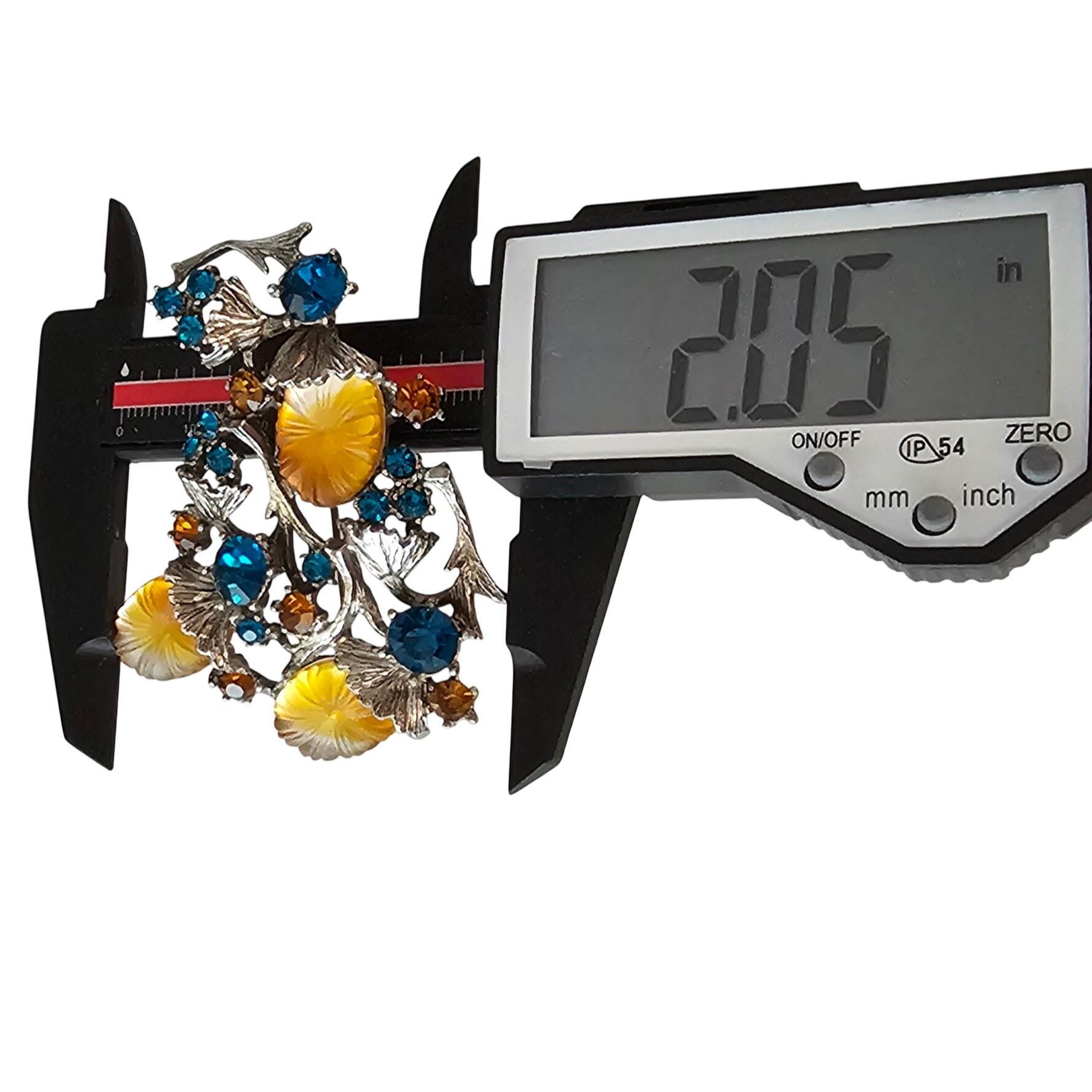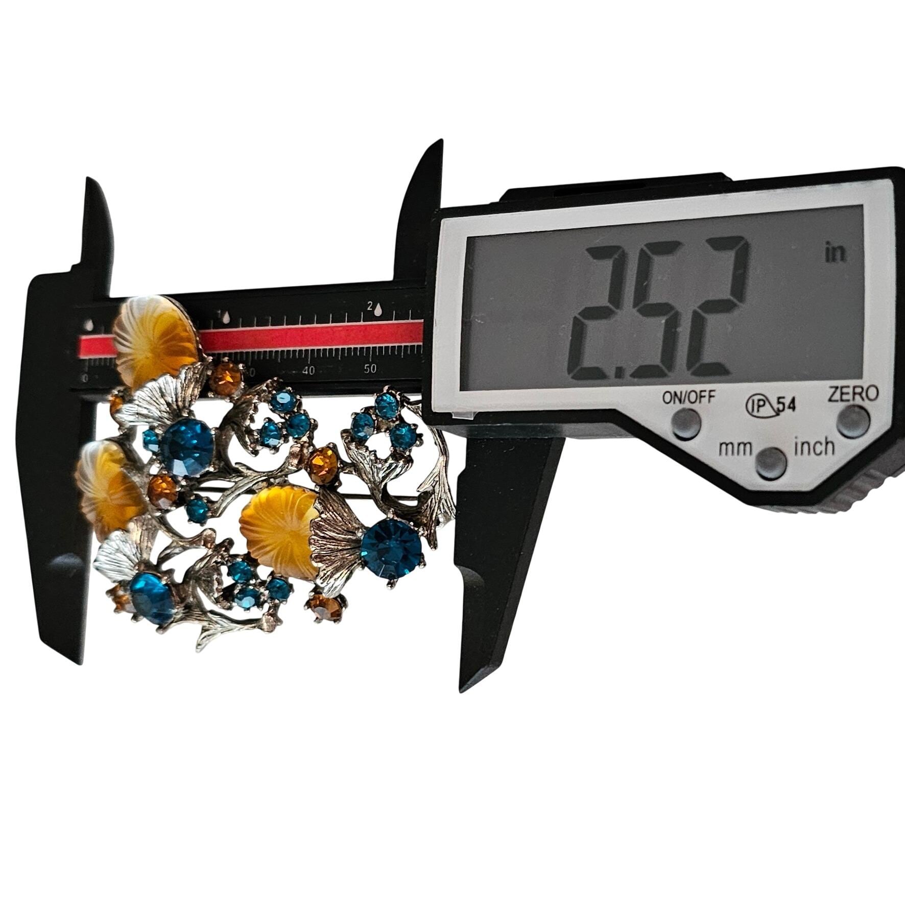 HAR Rare Thistle Style Brooch Yellow Givre Blue Rhinestone Pin Signed, J474