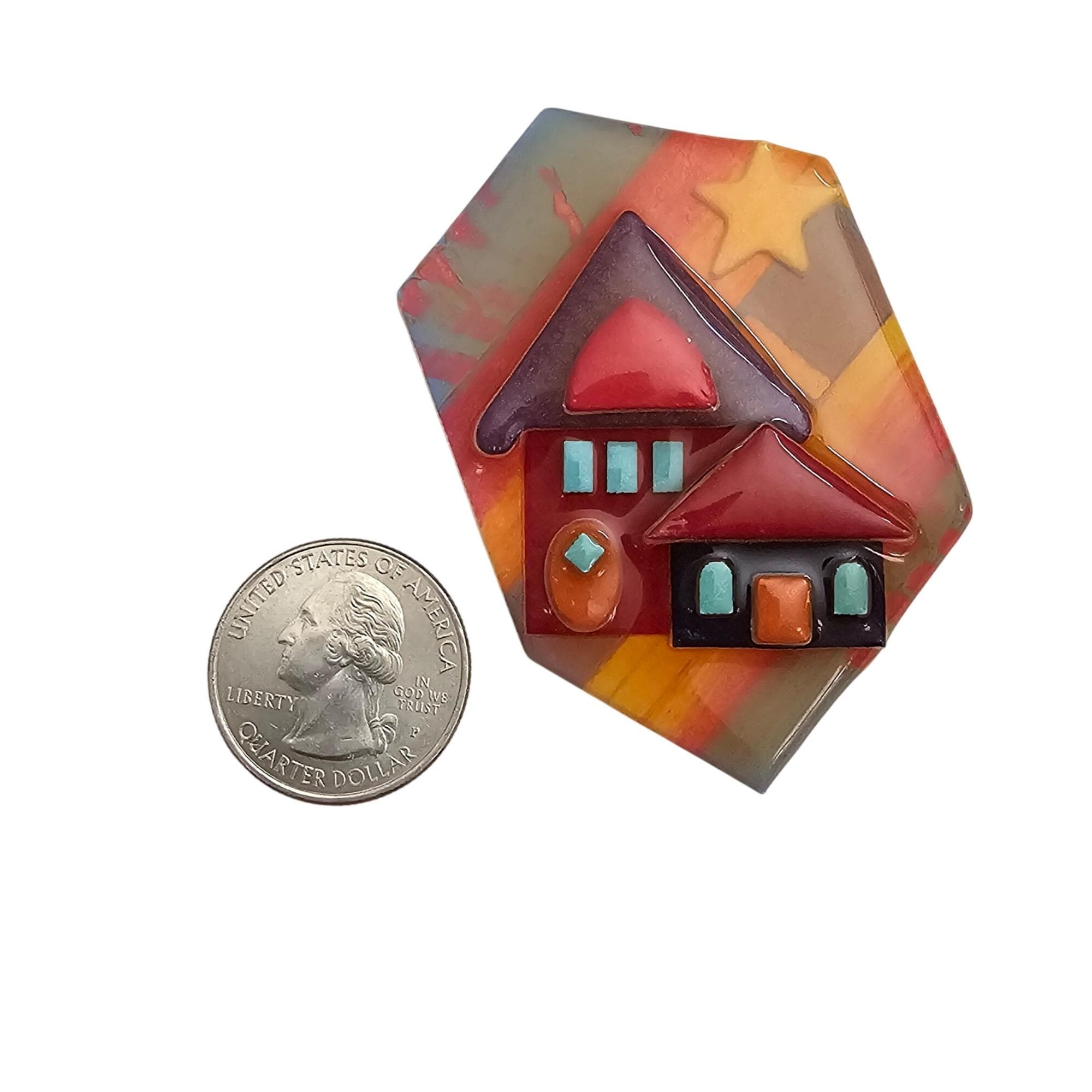 Lucinda Red Black Purple House Star Brooch Pin J498