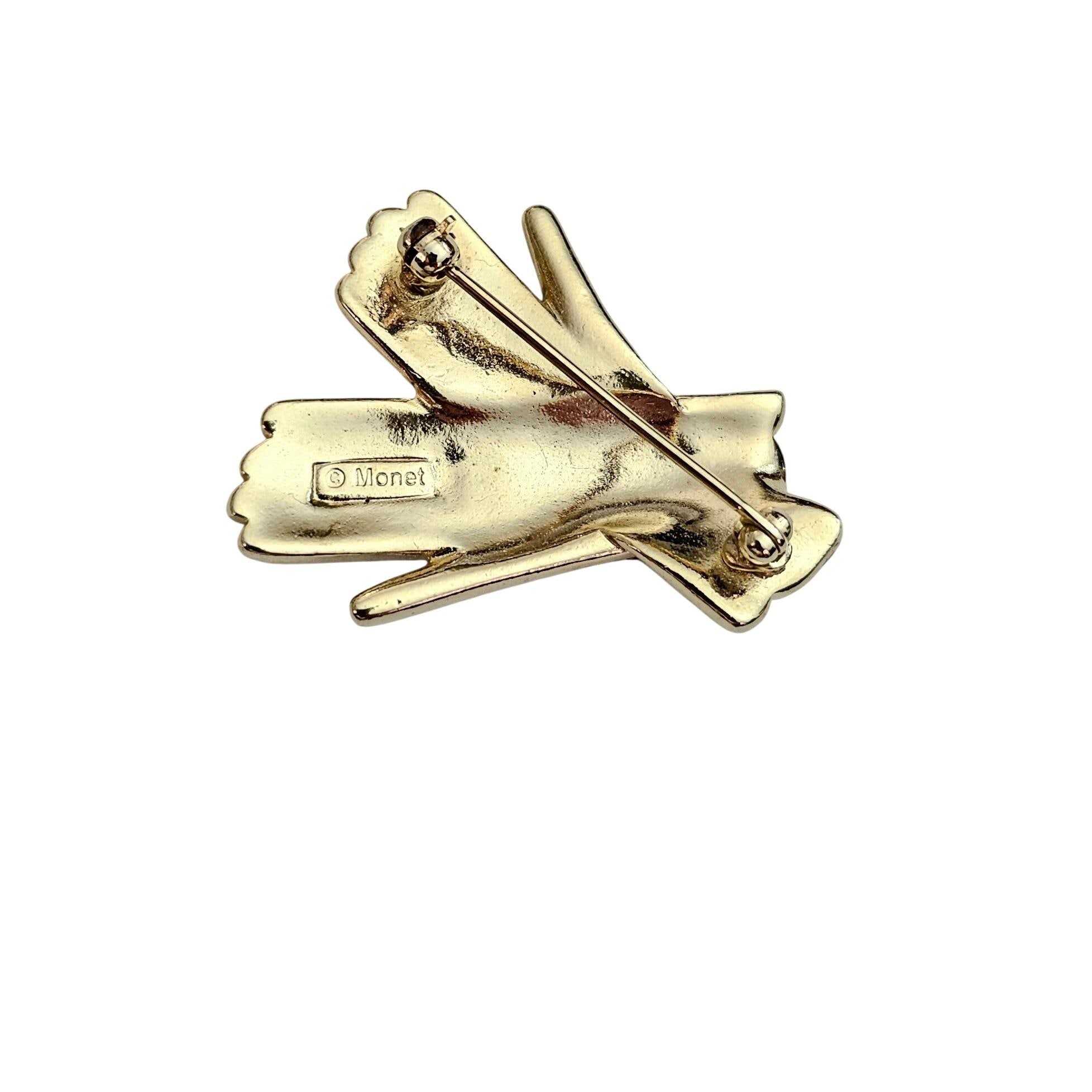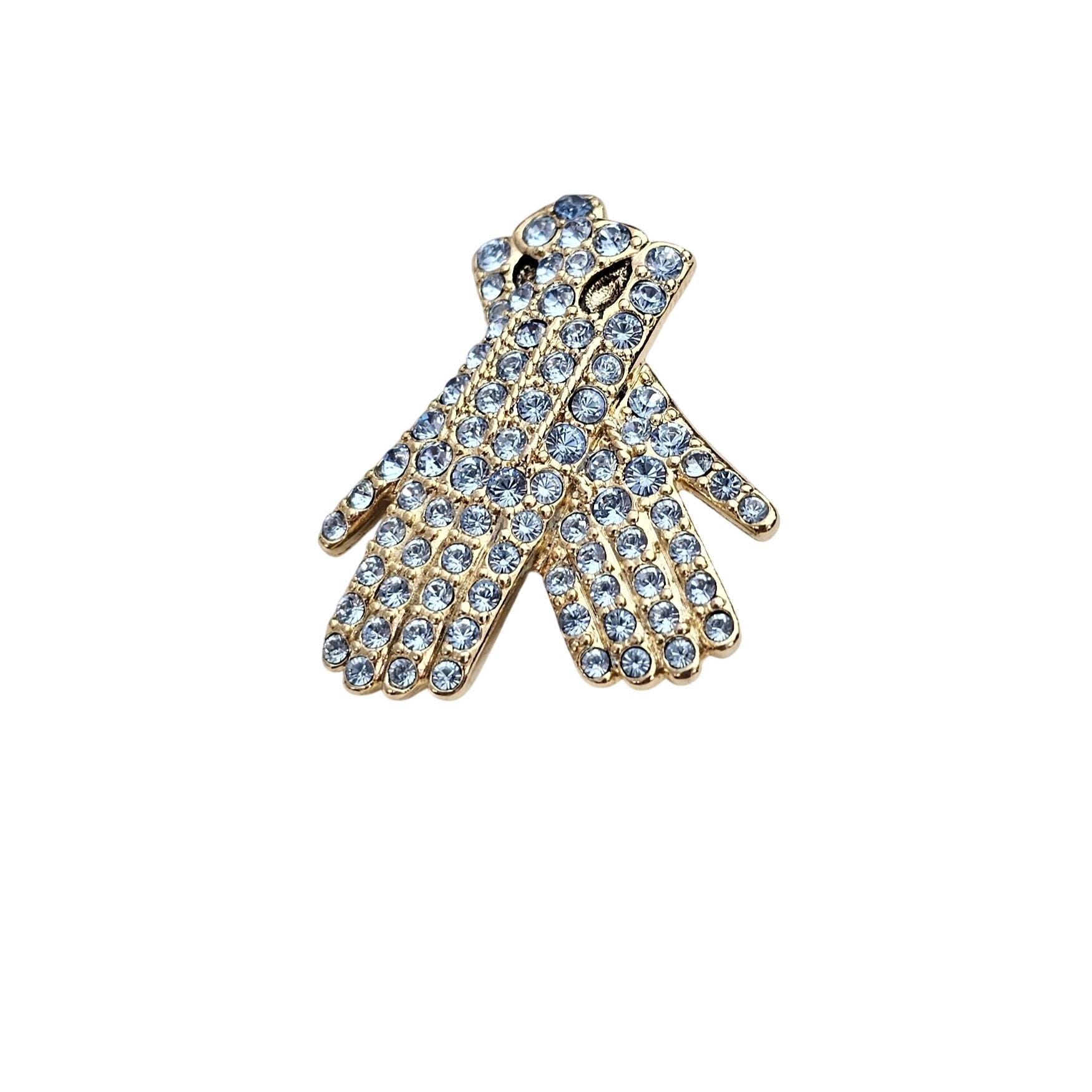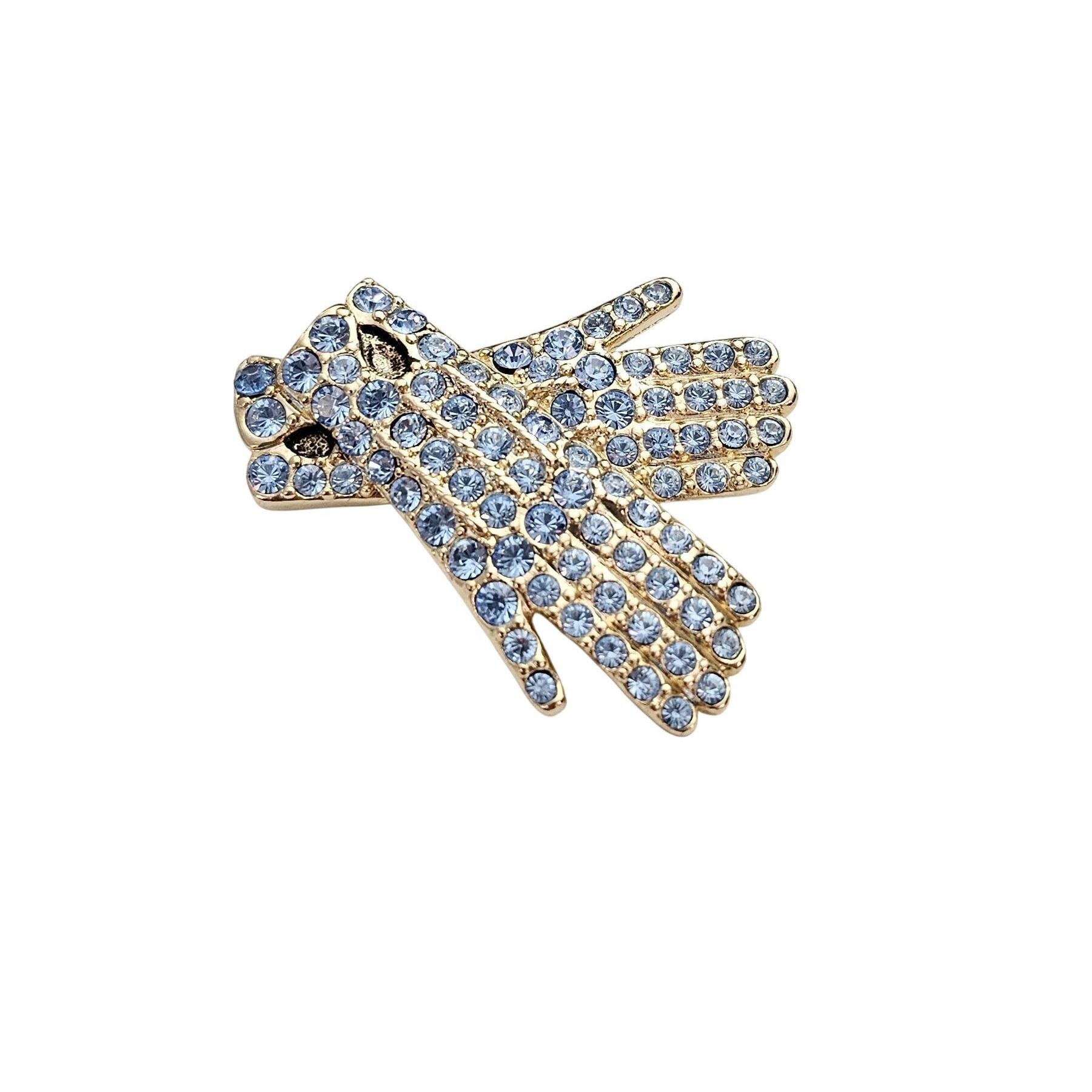 Monet Vintage Blue Rhinestone Ladies Gloves Brooch Signed, J560