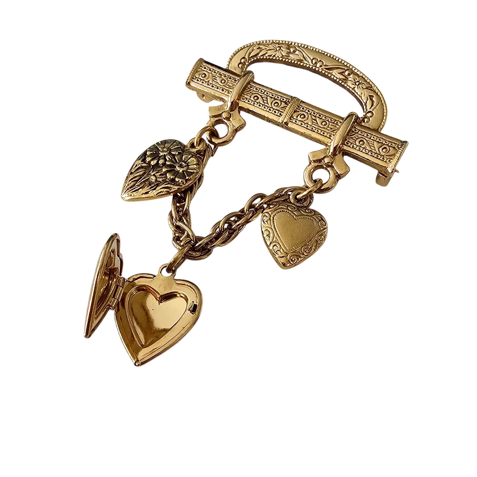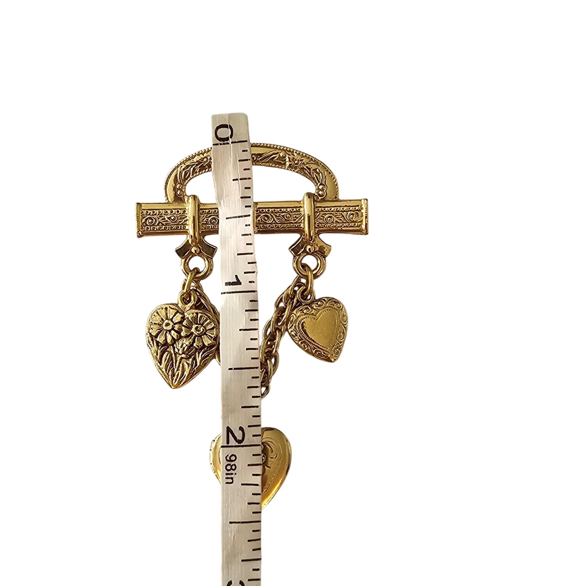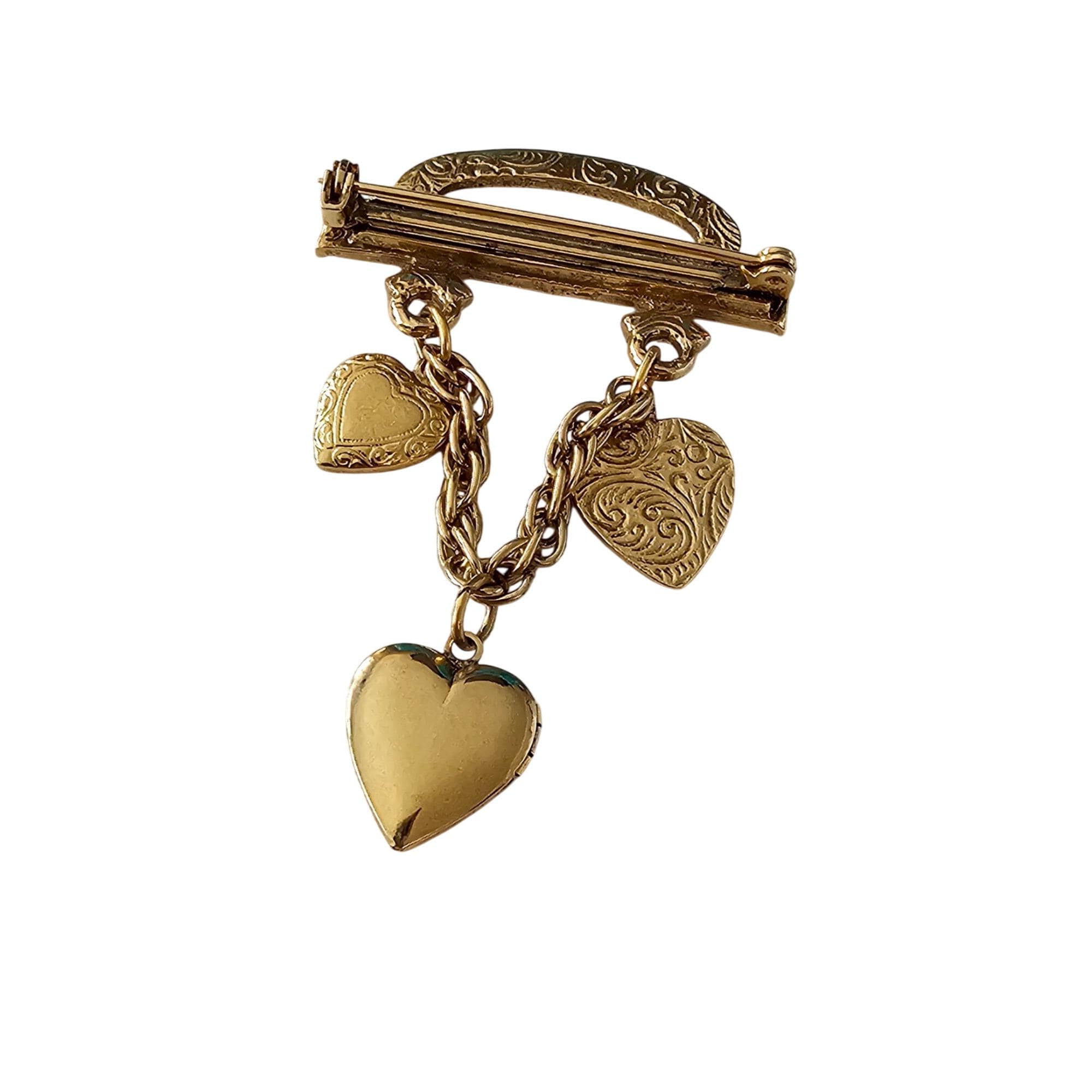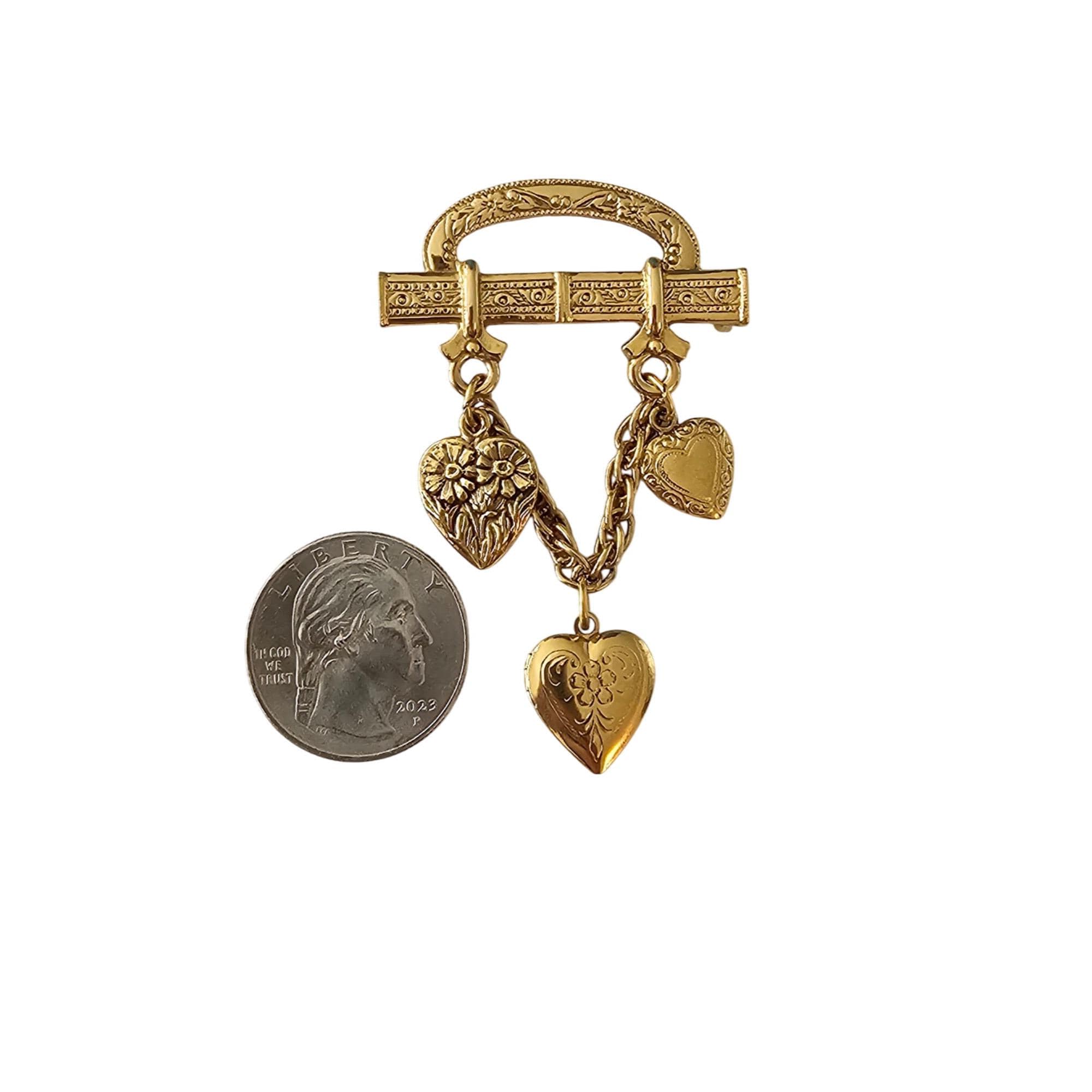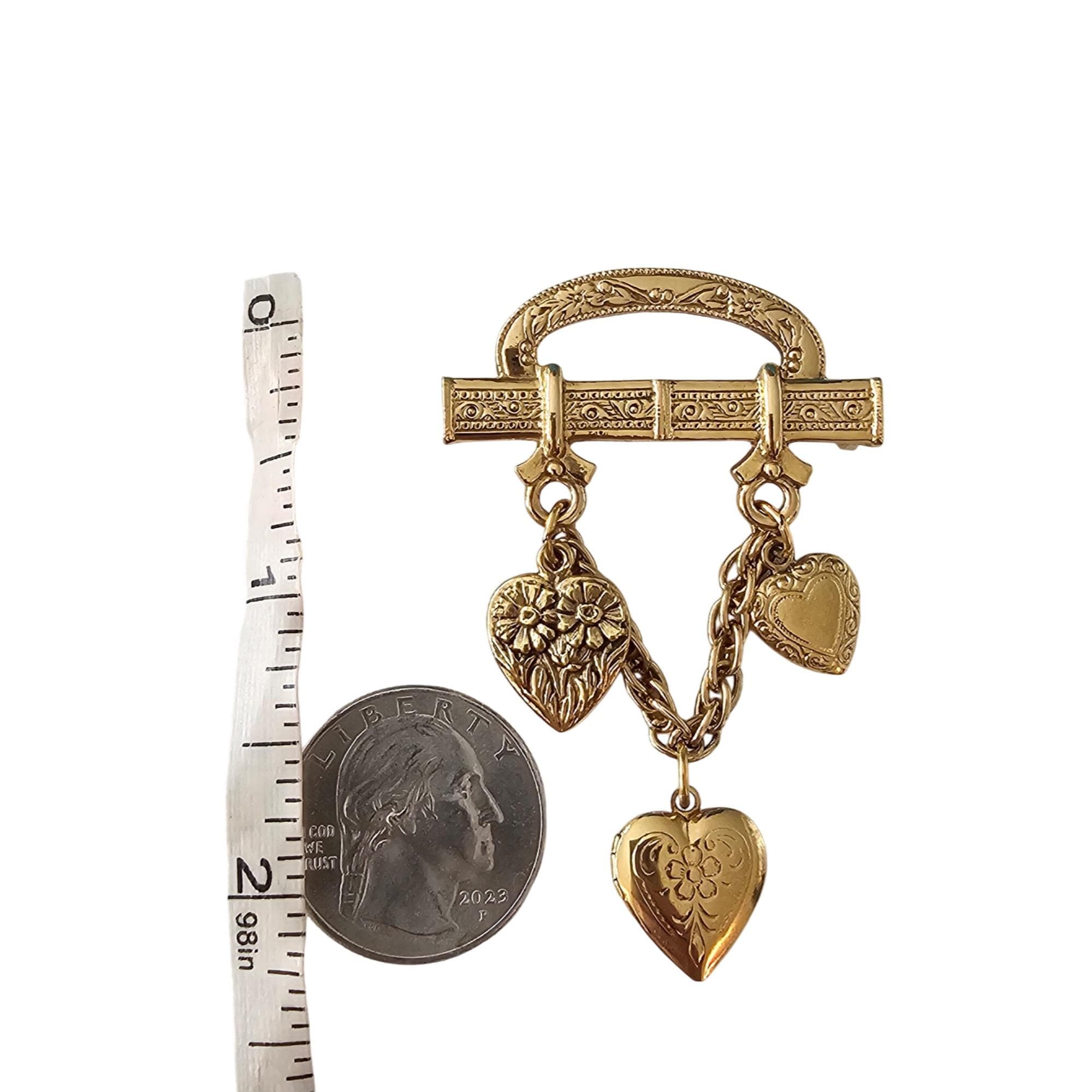 1928 Brand Bar Pin Heart Chain Dangle Brooch Locket Pin J522