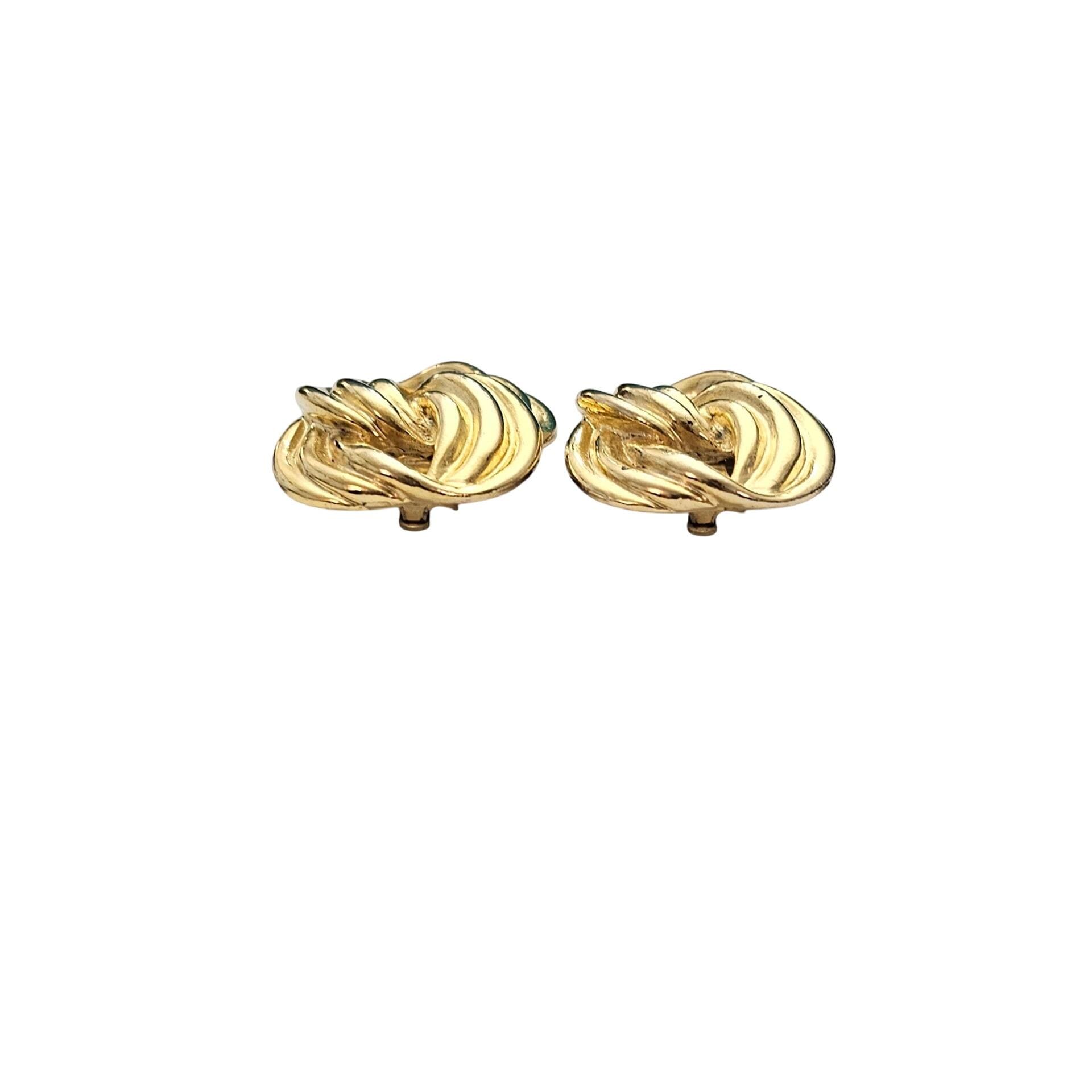 Gold Tone Ribbed Figure 8 Clip On Earrings J529