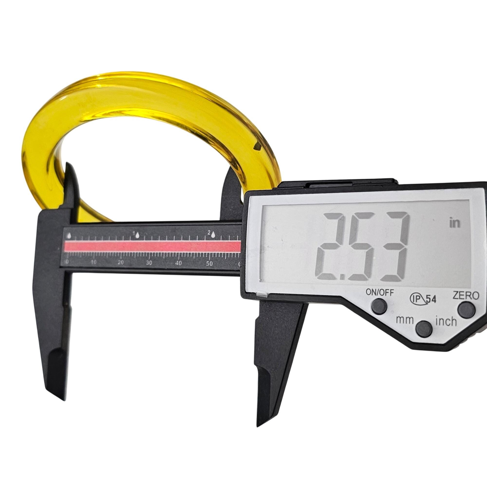 • It measures about 2.5 inches across (inner diameter), 1.8 inches wrist width, and 0.4 inches thickness