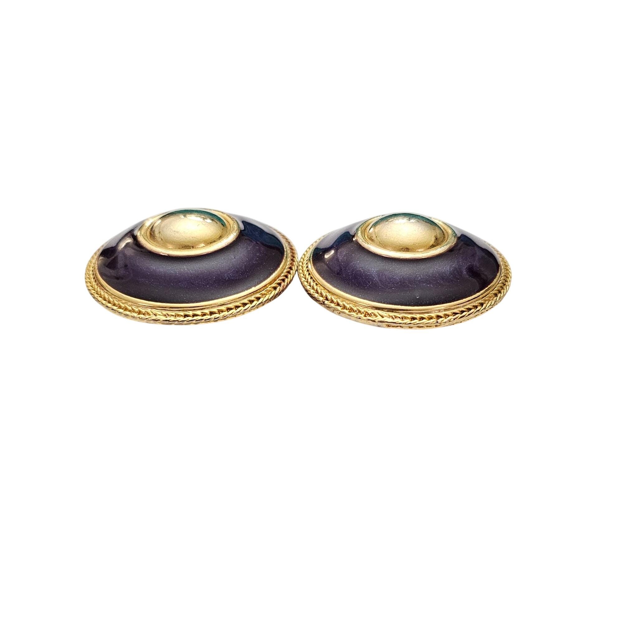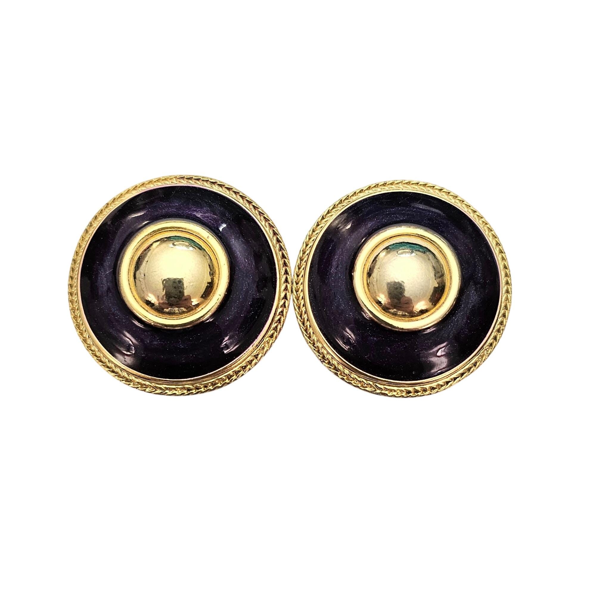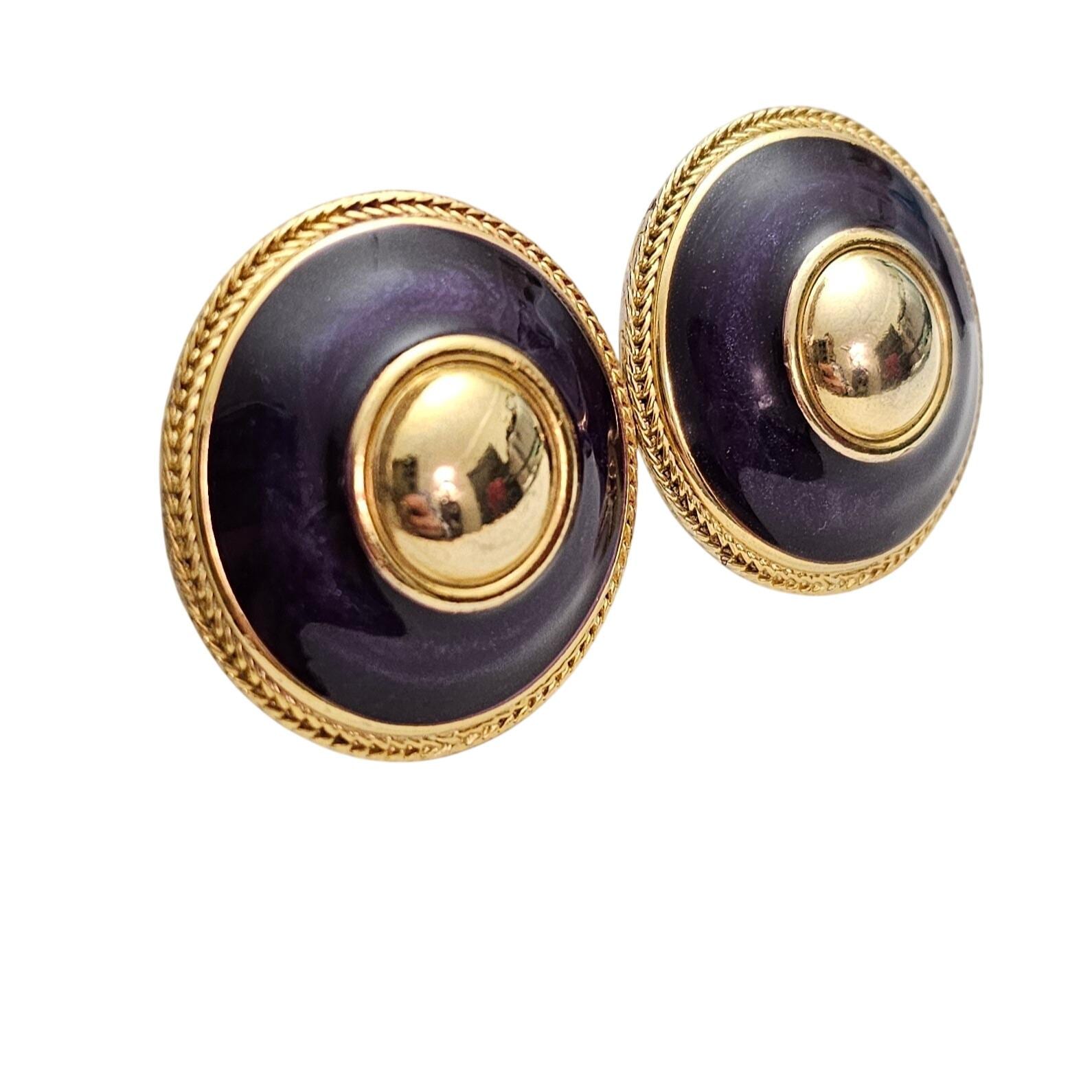 Purple Enamel Domed Gold Tone Button Clip On Earrings J536