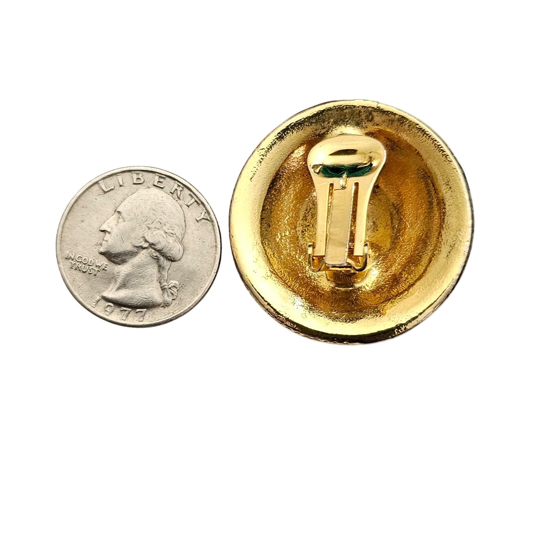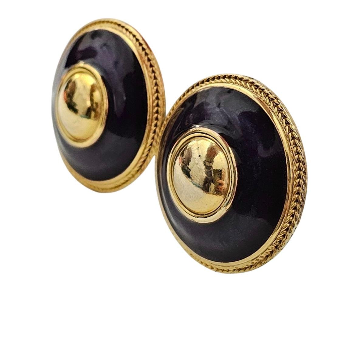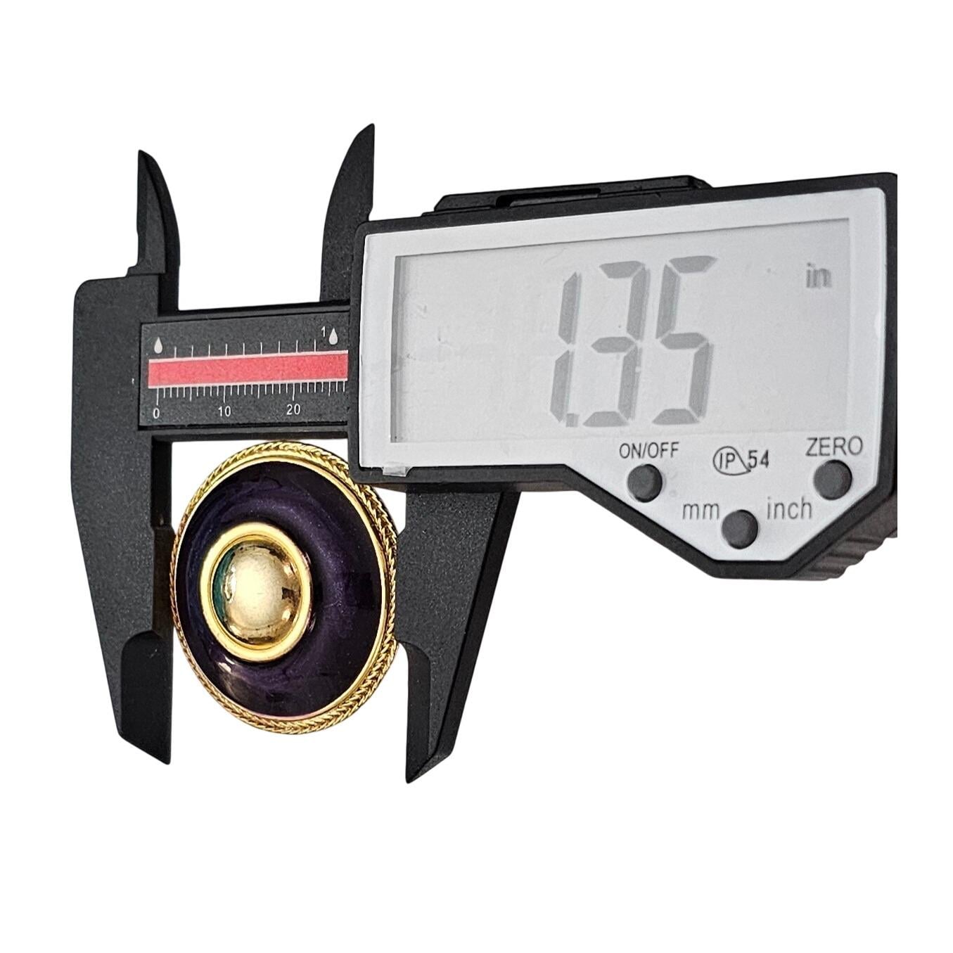 Purple Enamel Domed Gold Tone Button Clip On Earrings J536