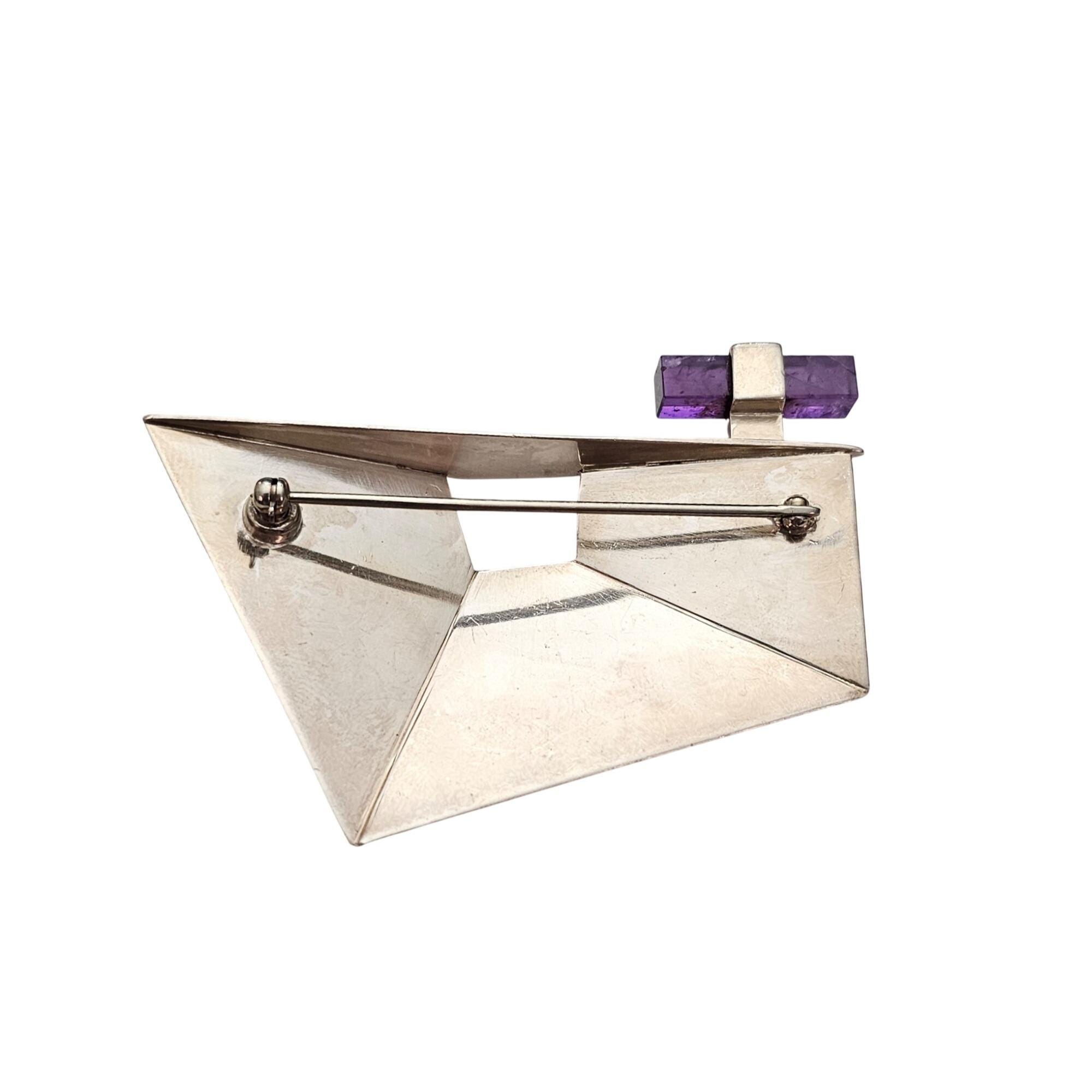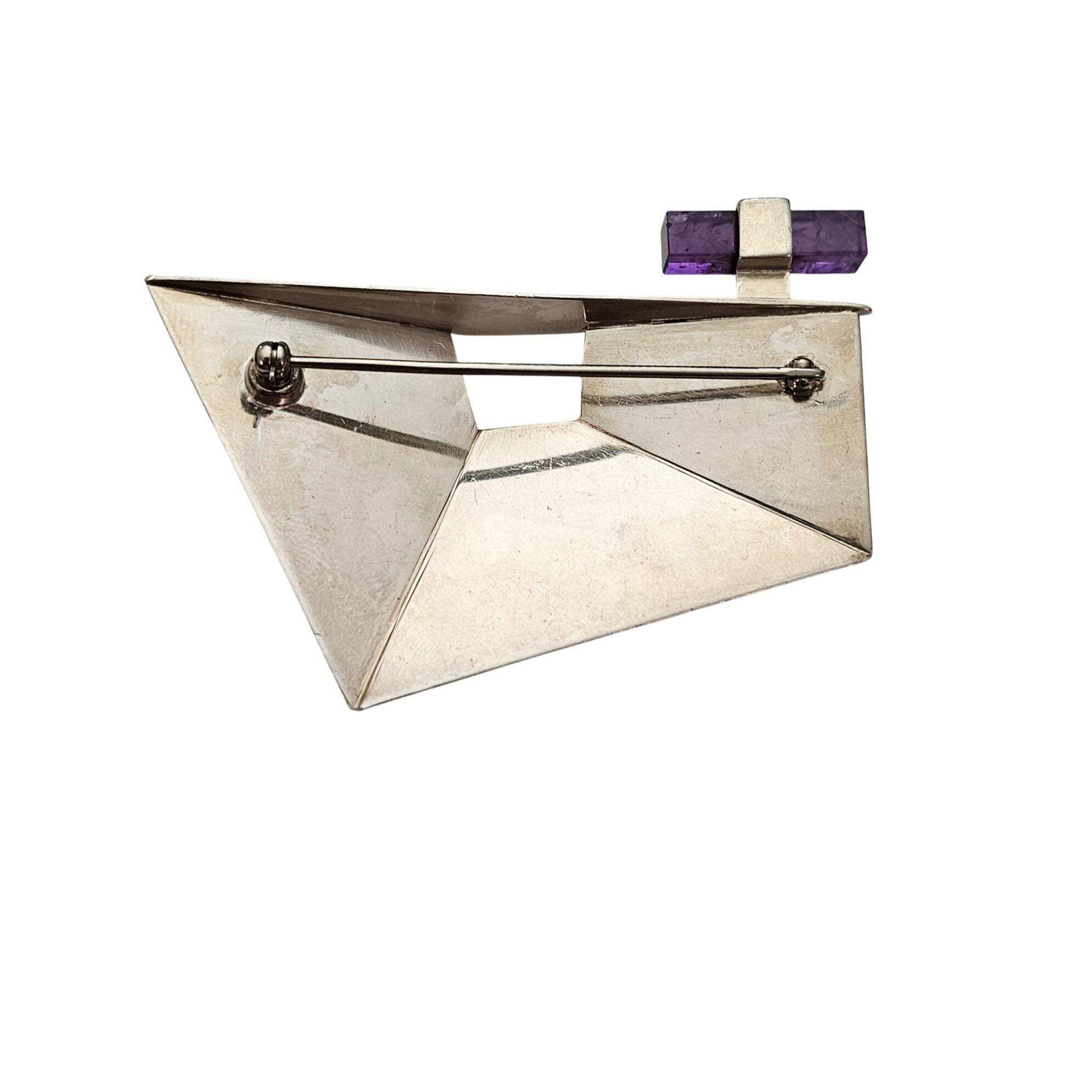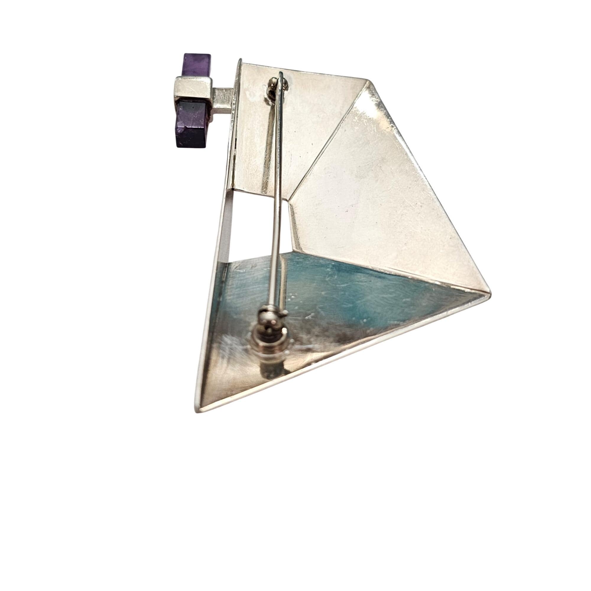 Sterling Silver Geometrical Brooch Amethyst Cube Pin J530