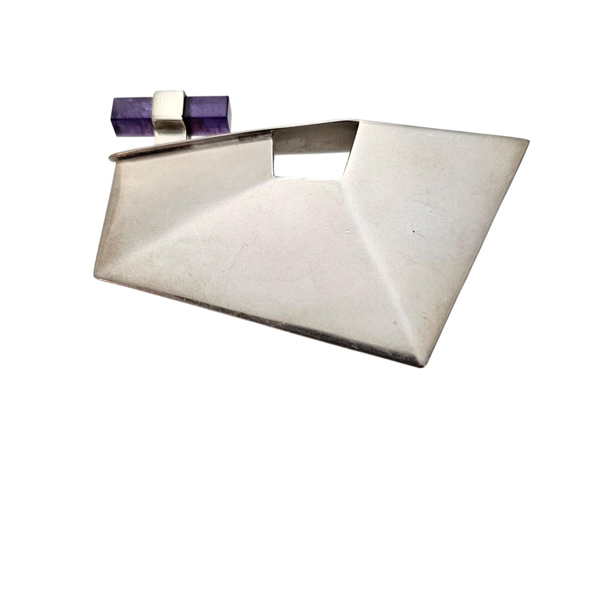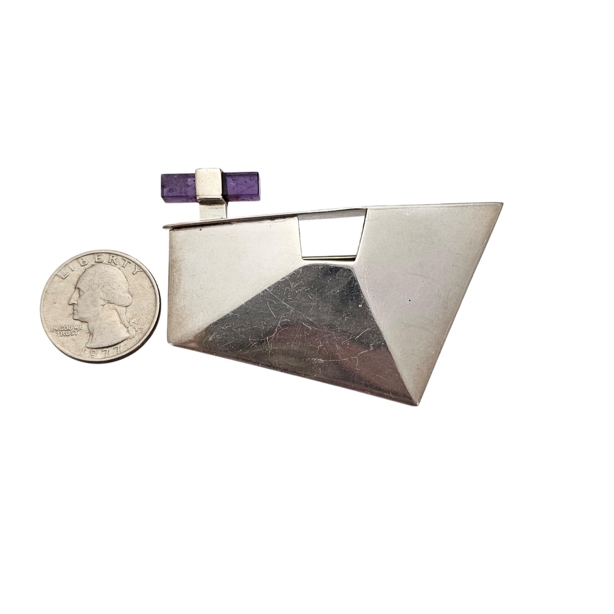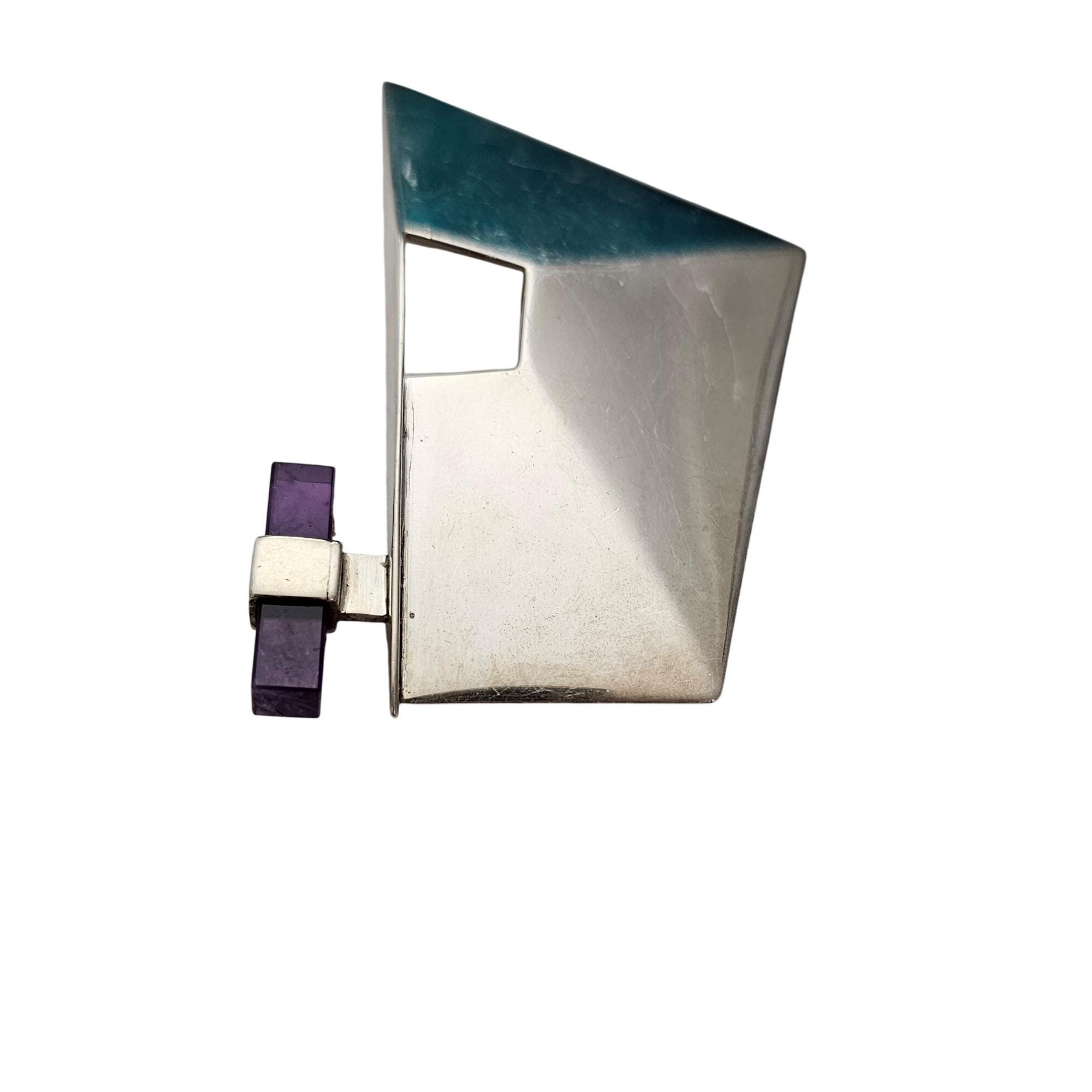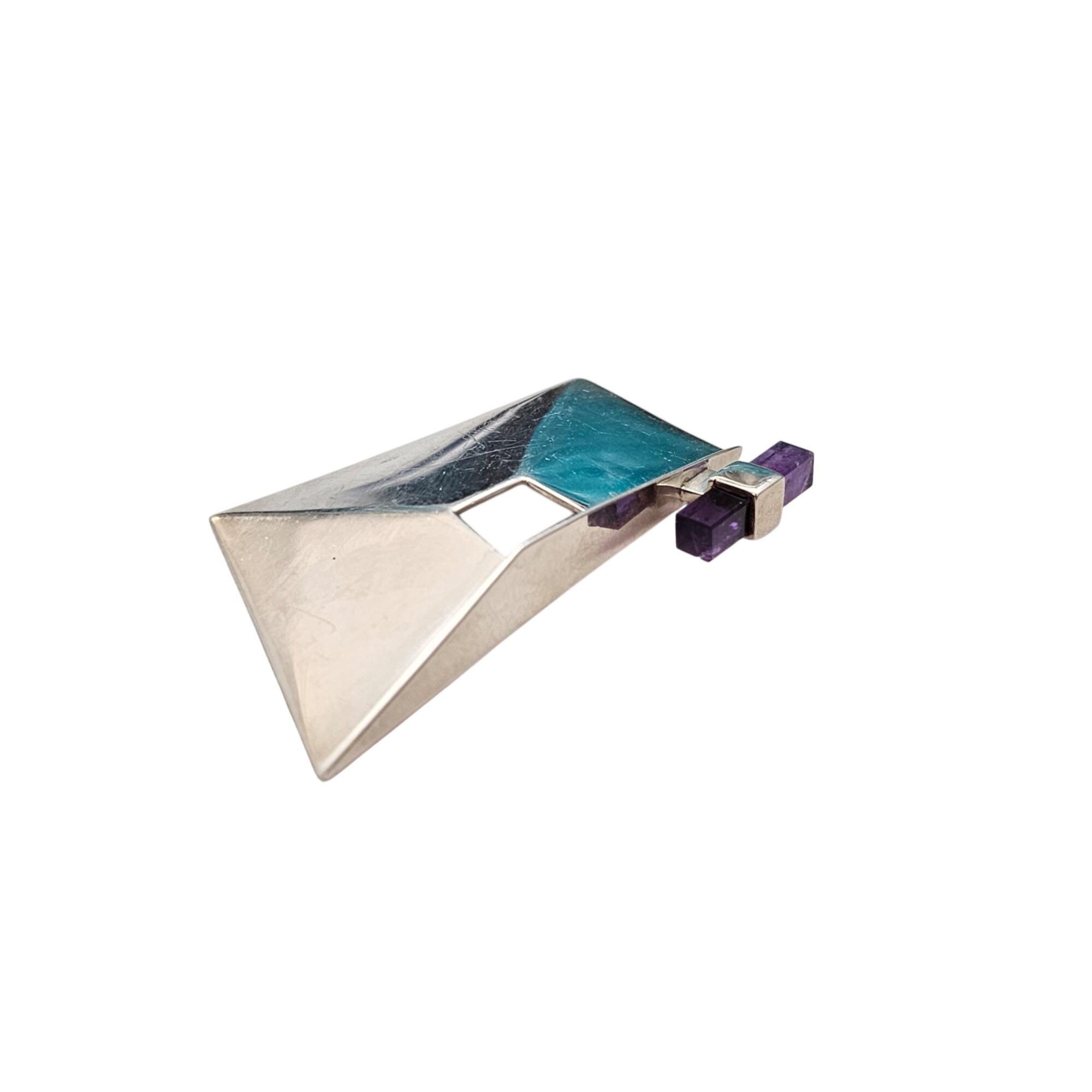 Sterling Silver Geometrical Brooch Amethyst Cube Pin J530