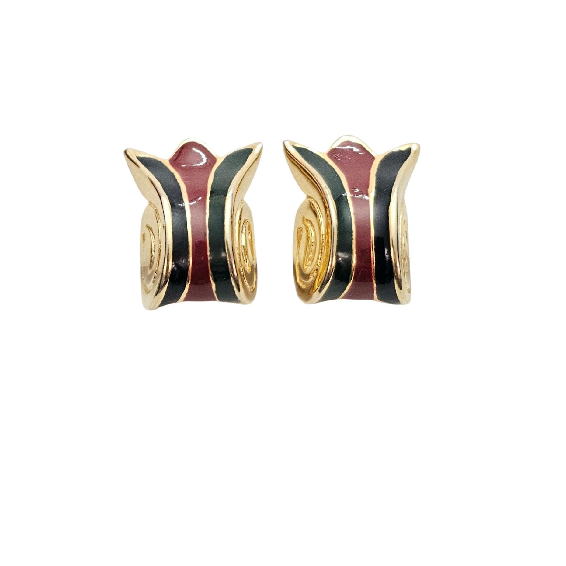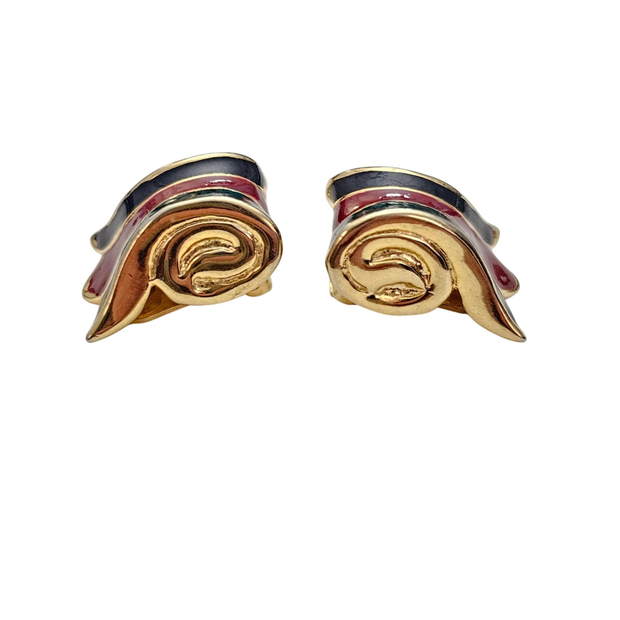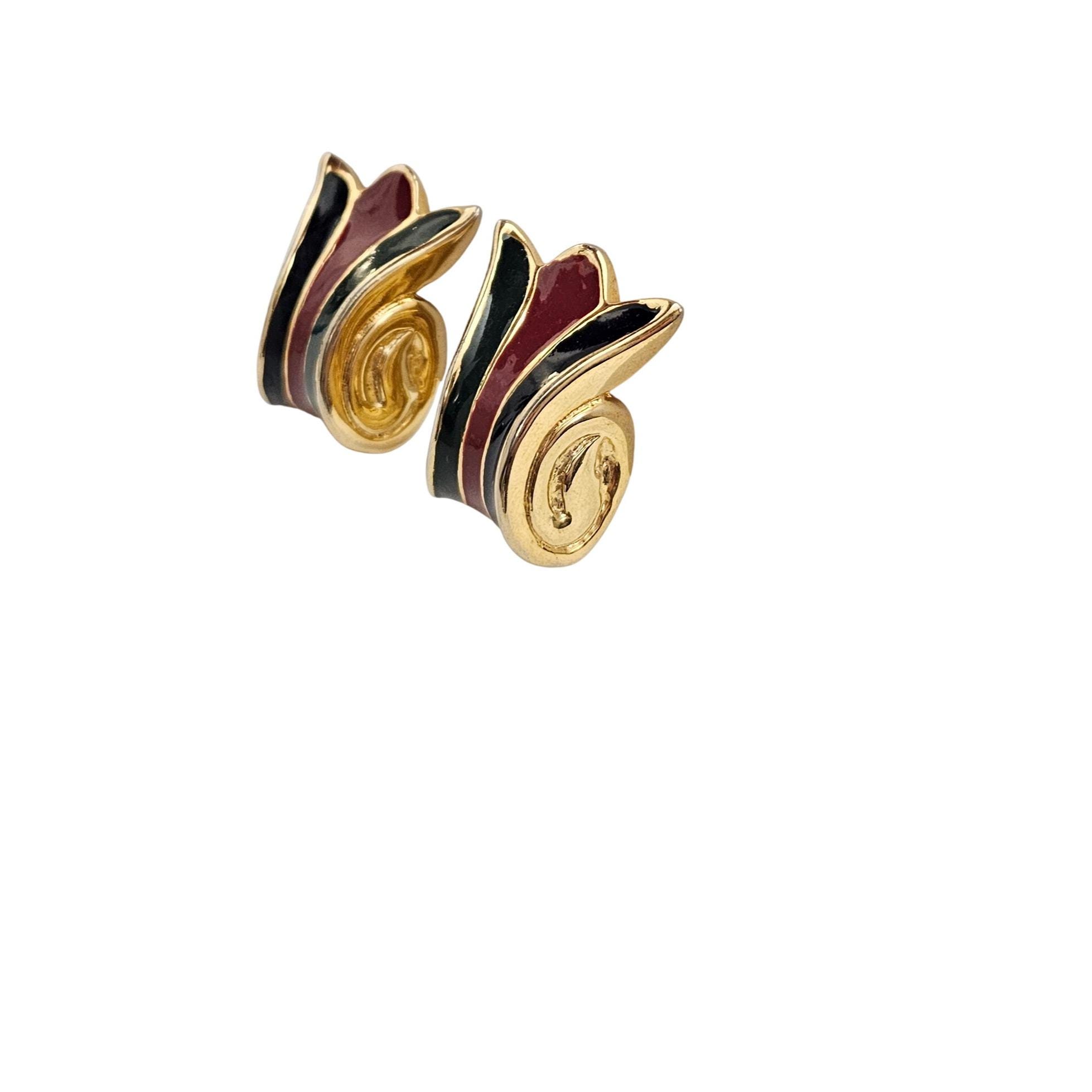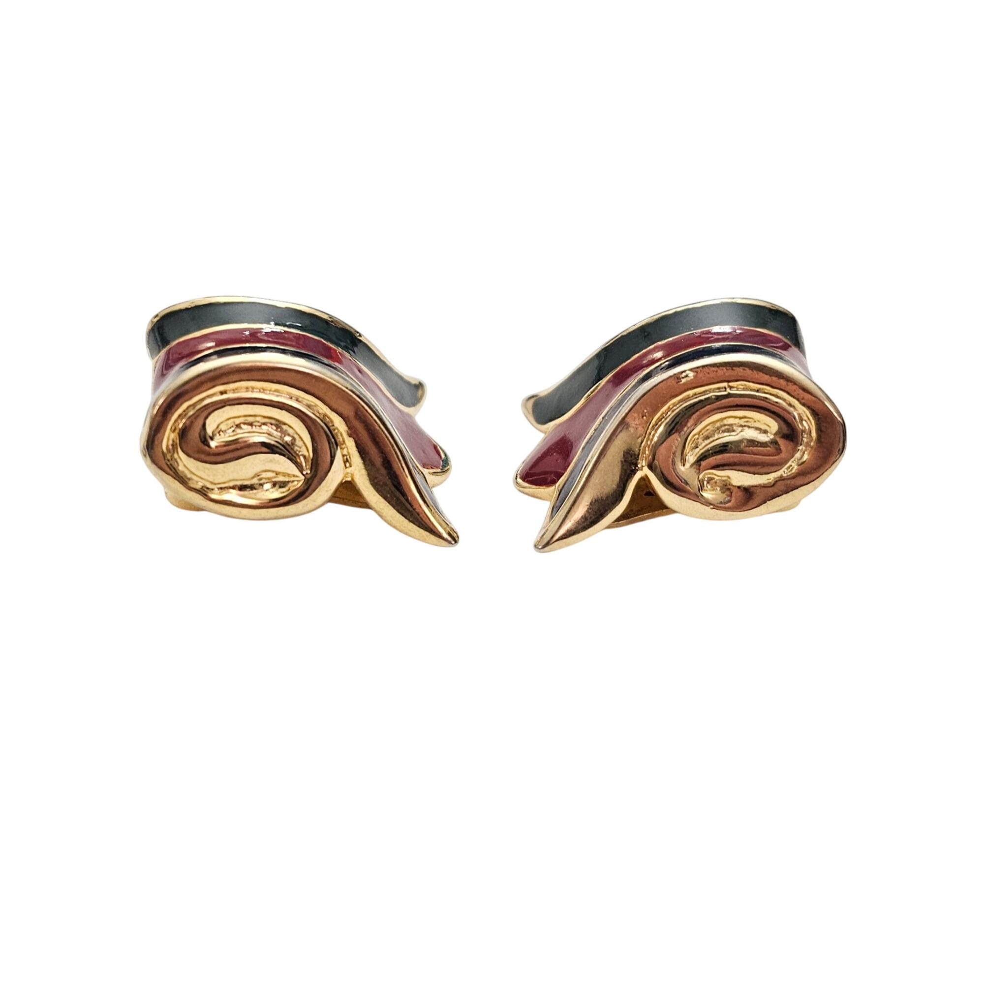 Wine Blue Green Fleur Scroll Clip On Designer Earrings J545