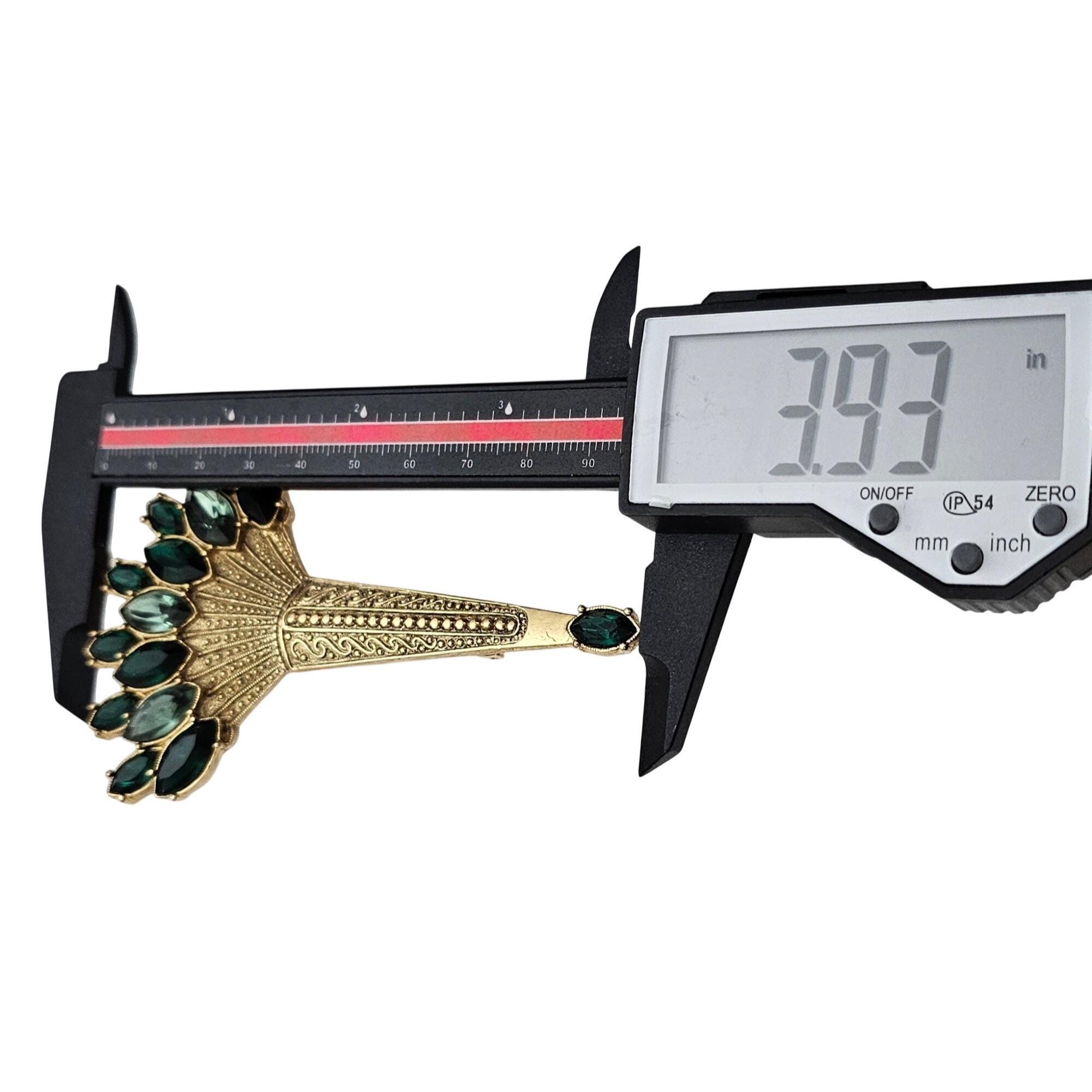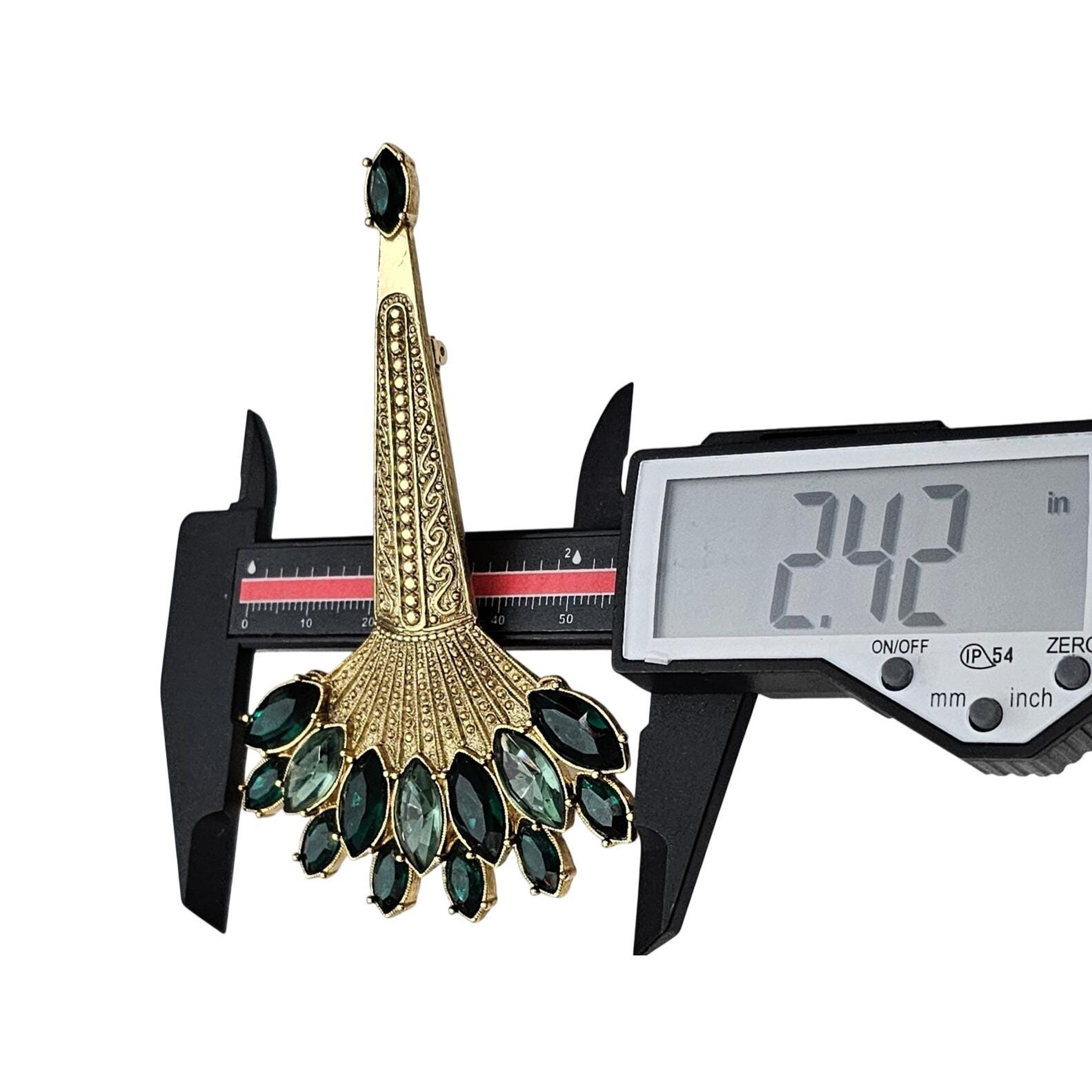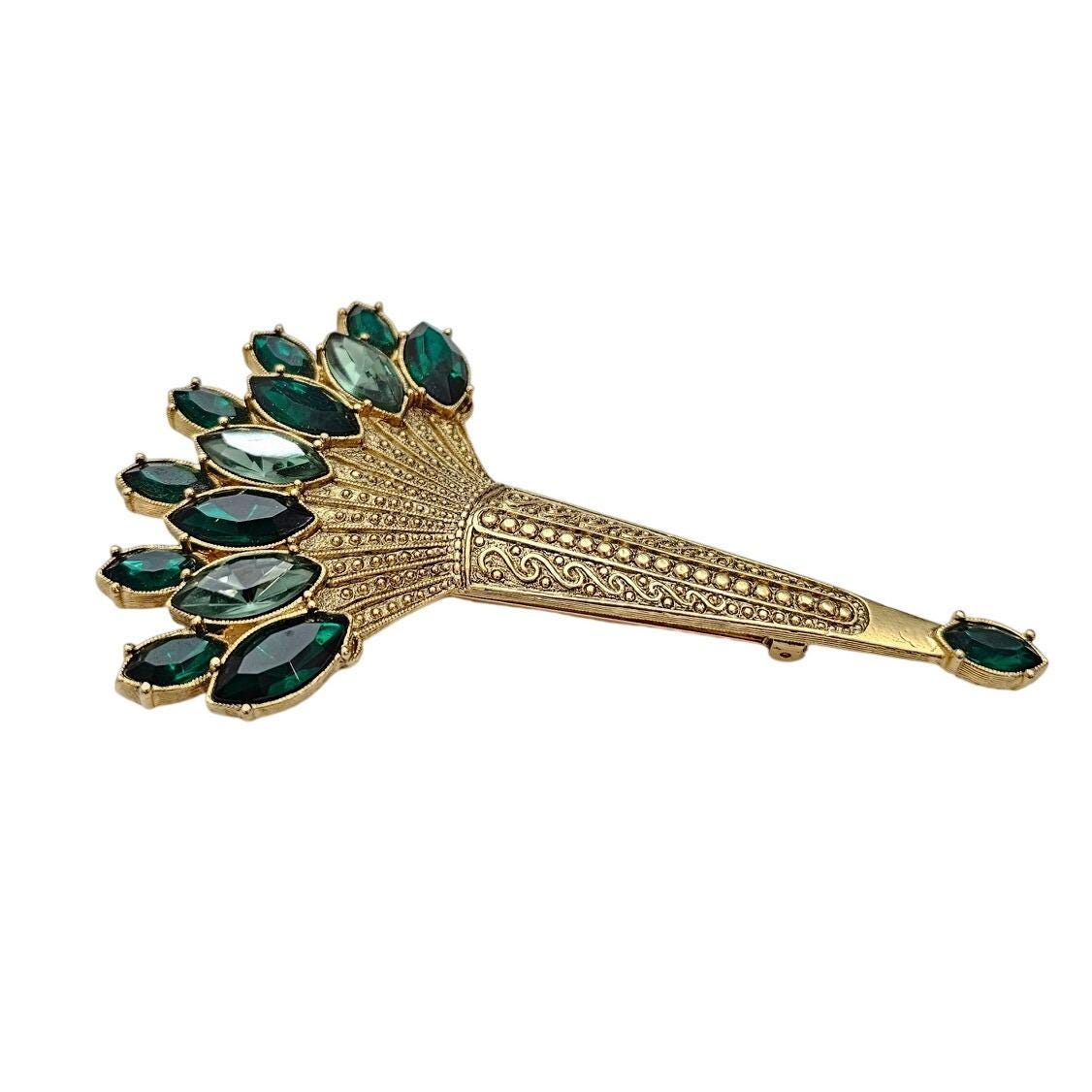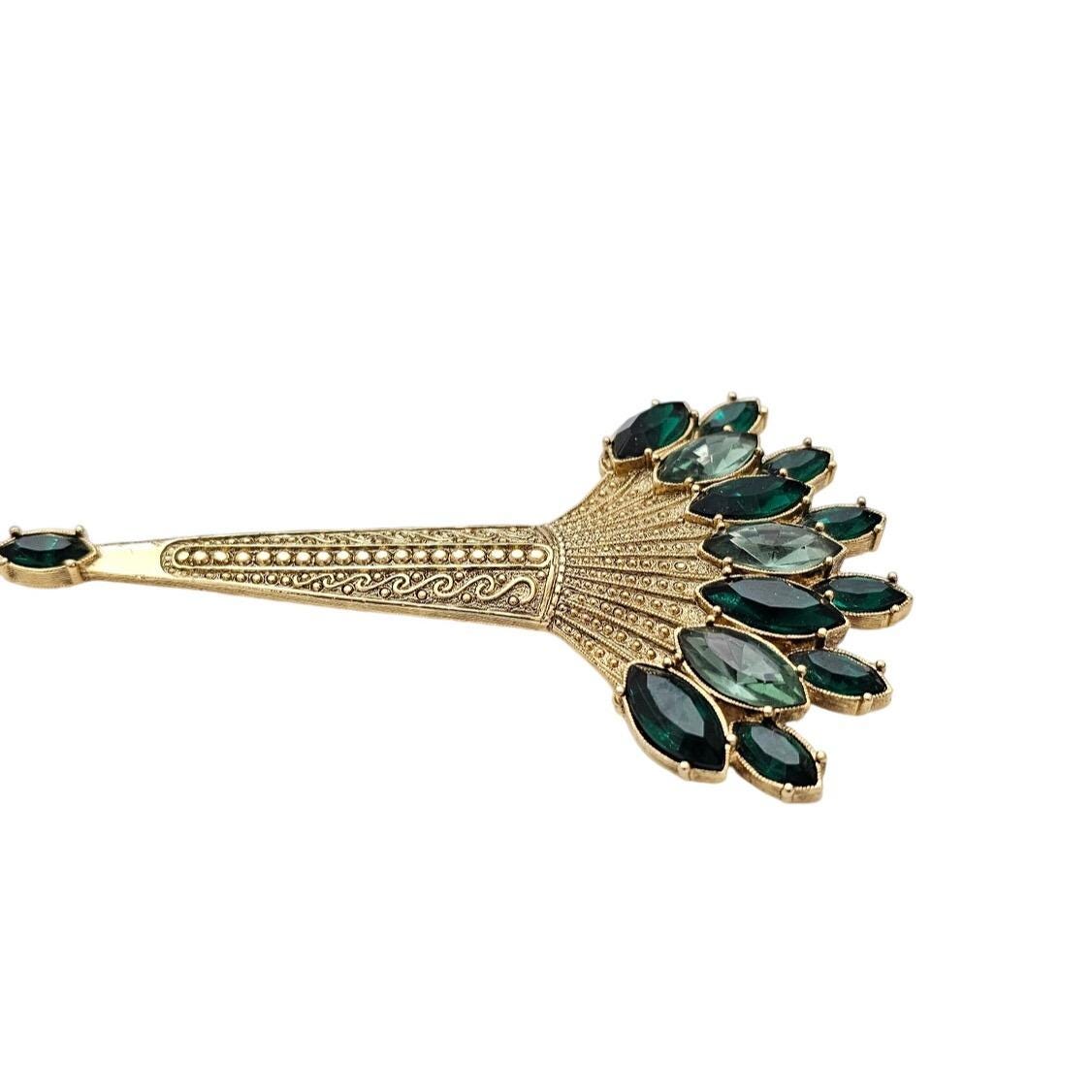 1928 Brand Art Deco Victorian Green Navette Rhinestone Torch Brooch J562