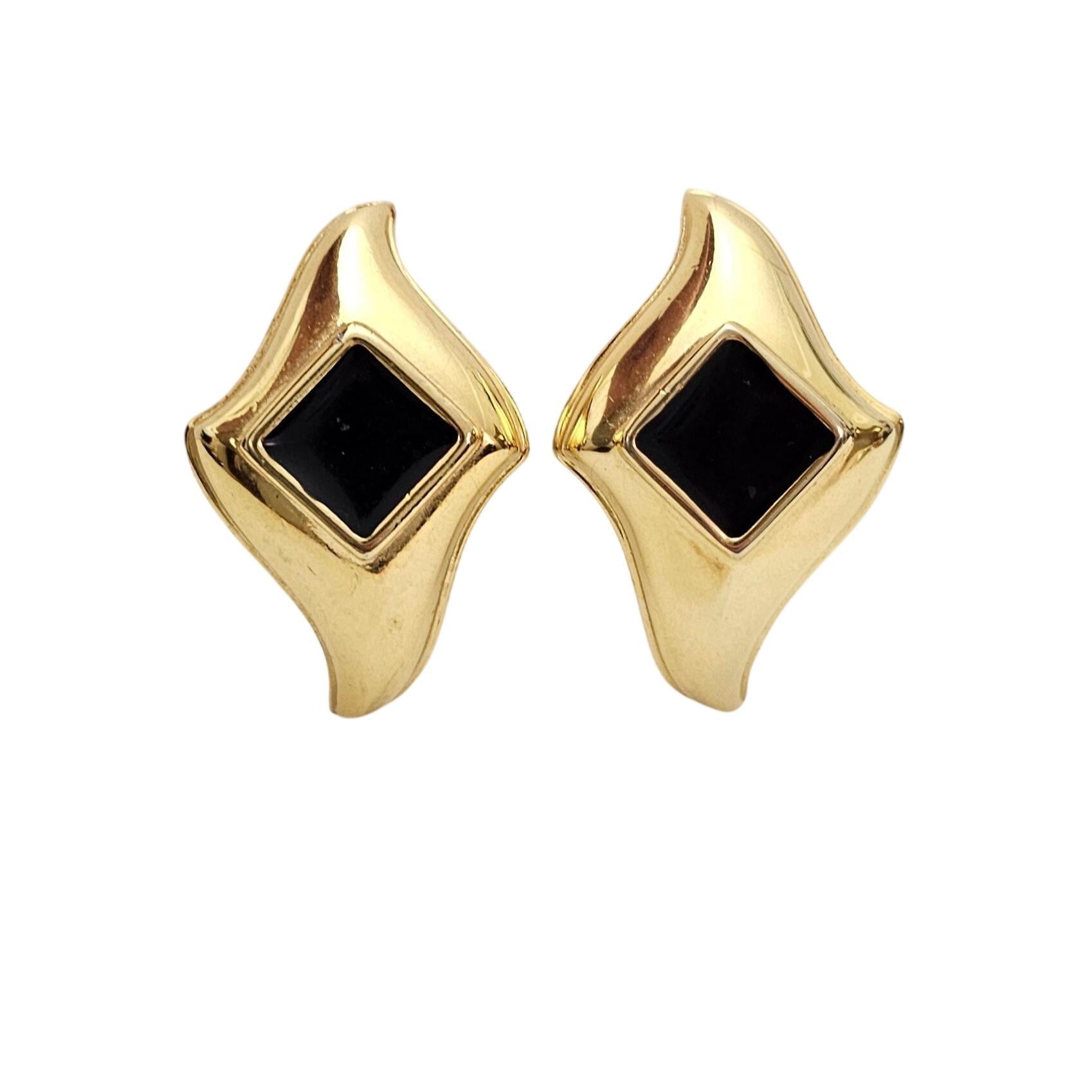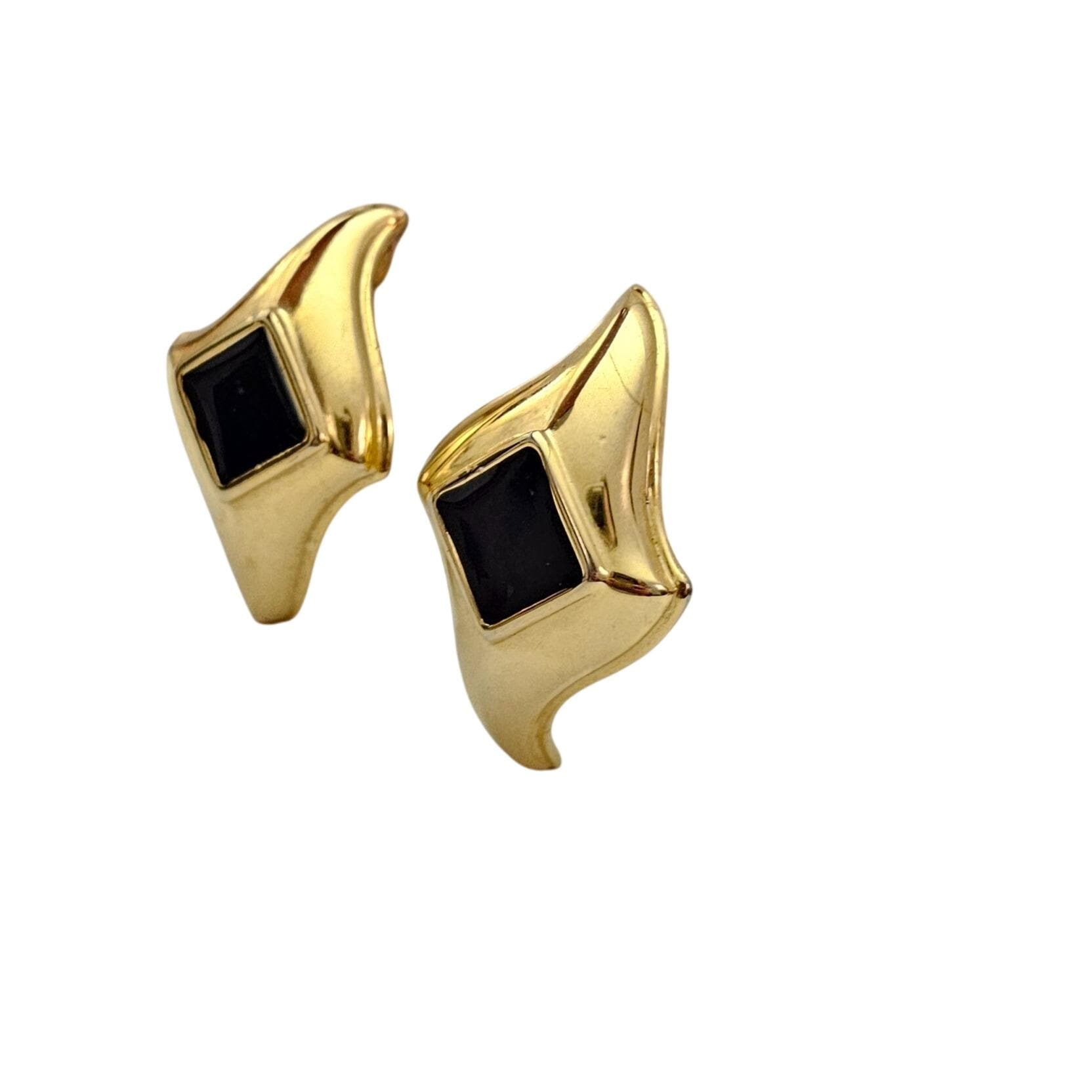 Gold Tone Modernist Black Enamel Clip On Gold Tone Diamond Shape Earrings J579