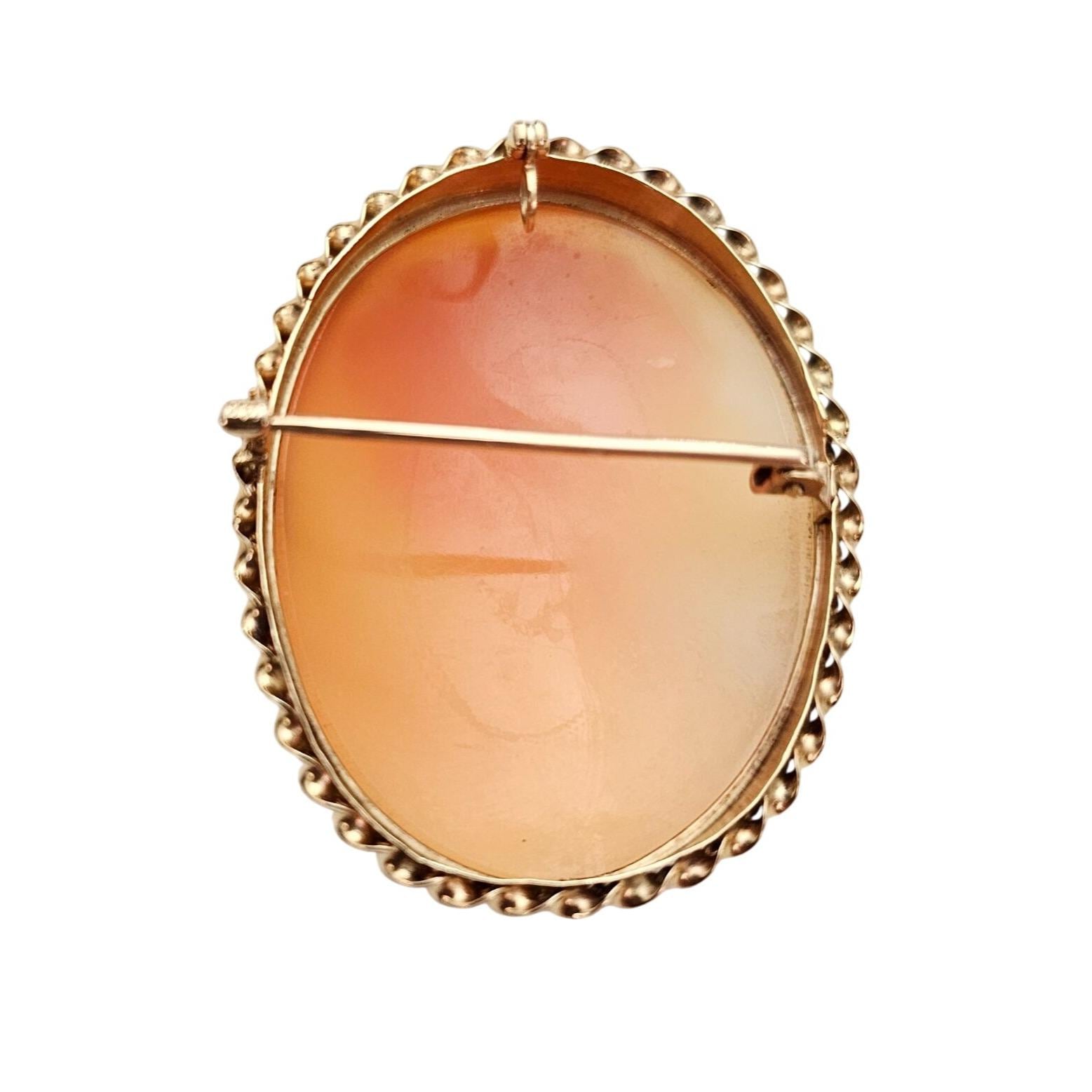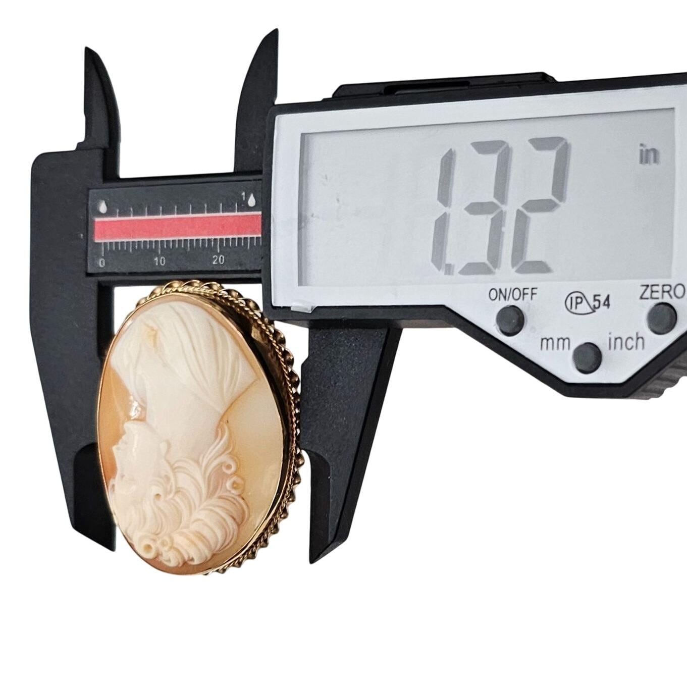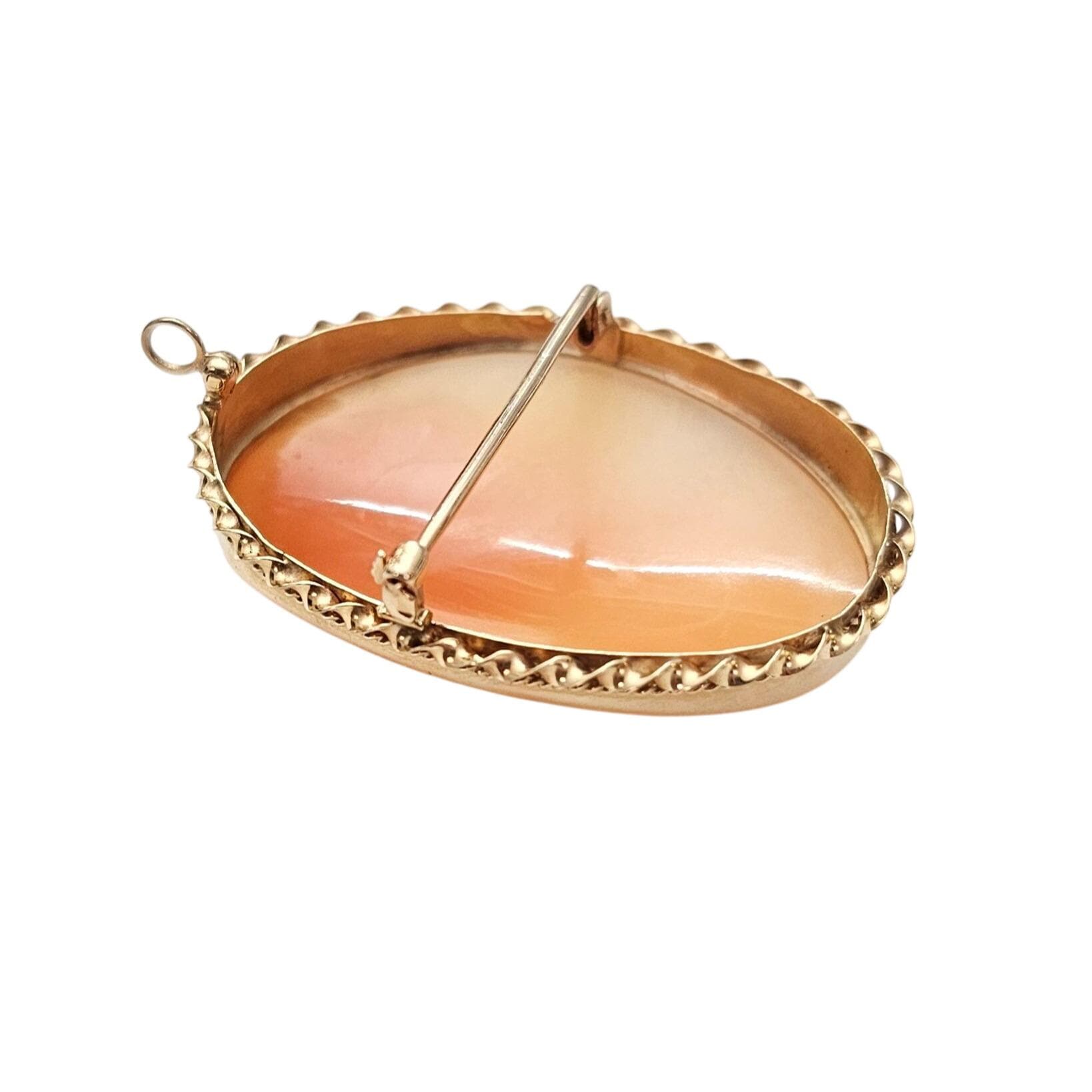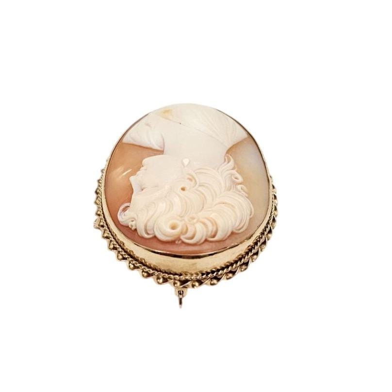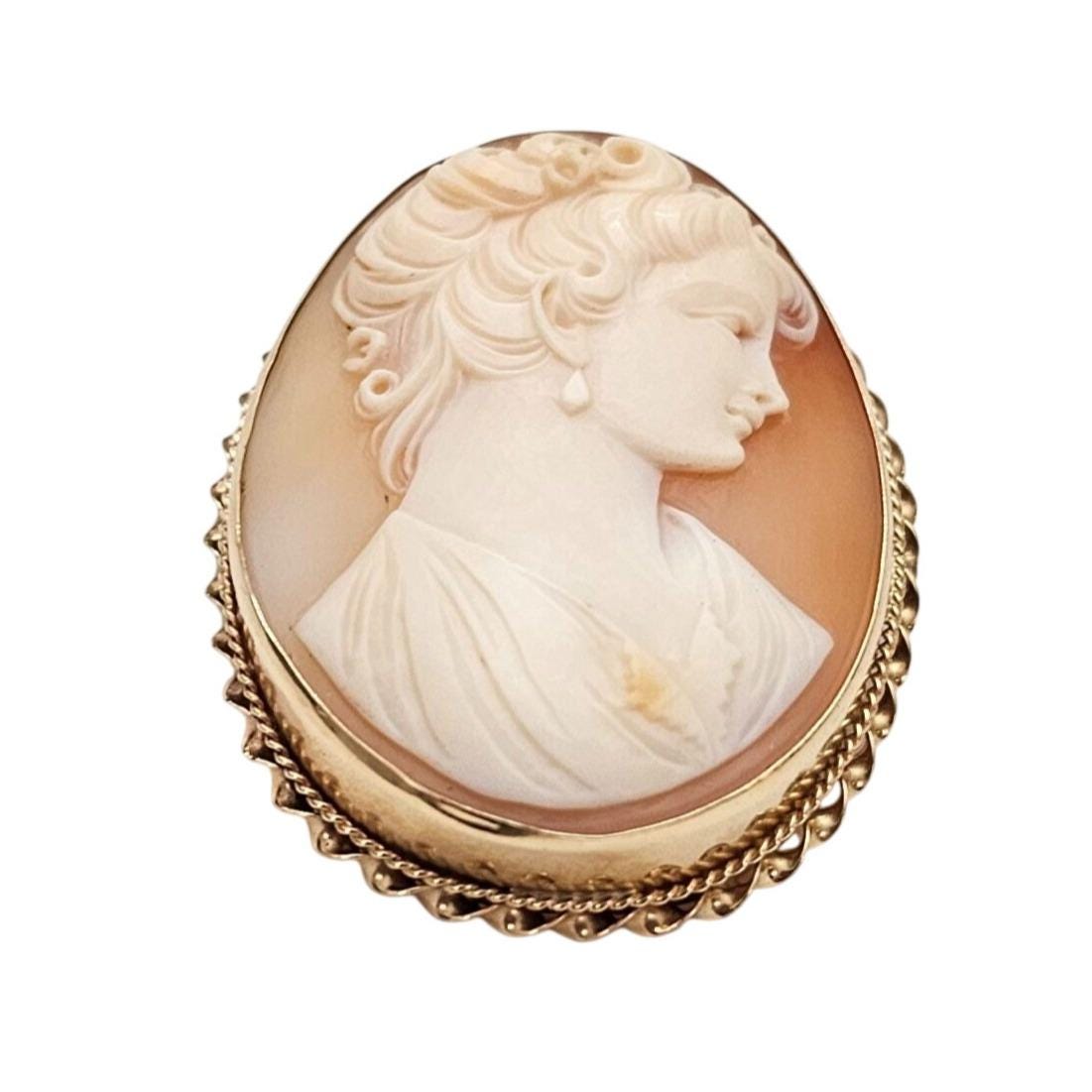 •14K Yellow Gold Shell Carved Cameo Brooch Pendant