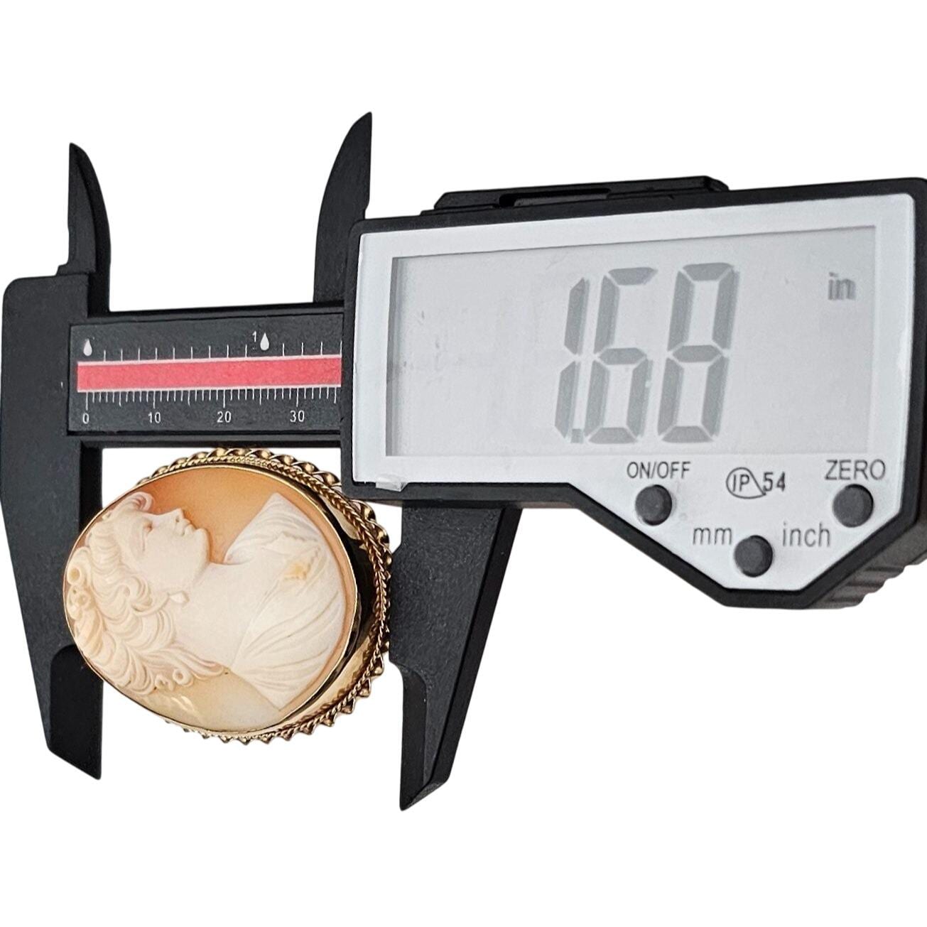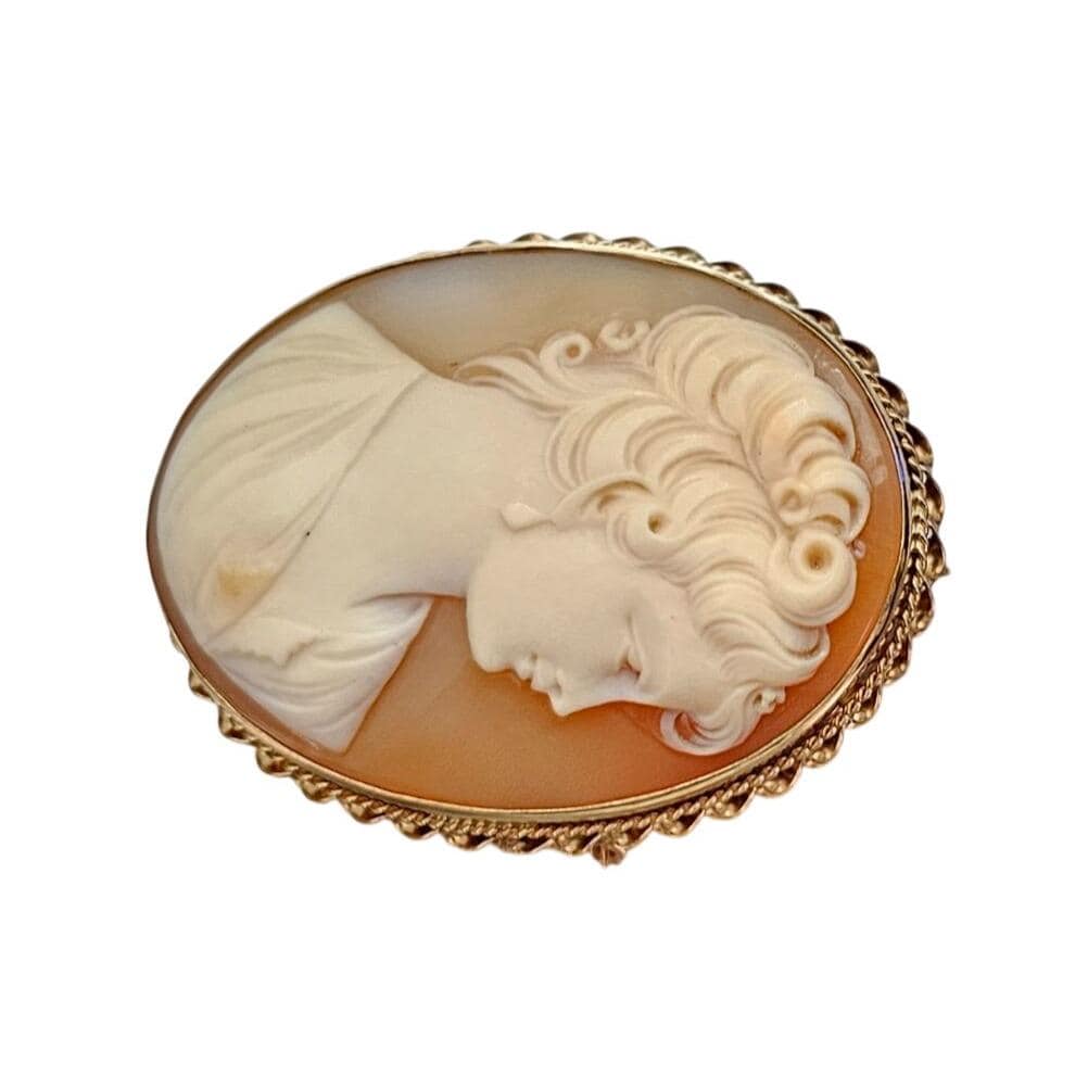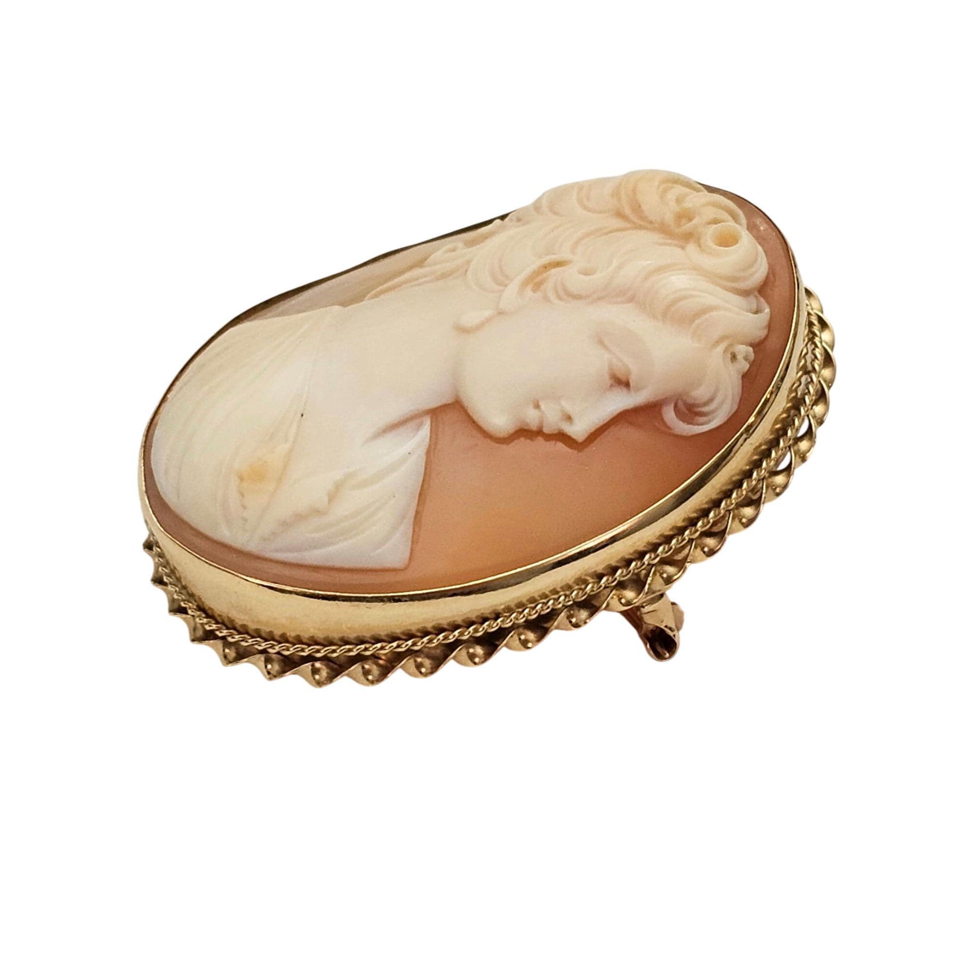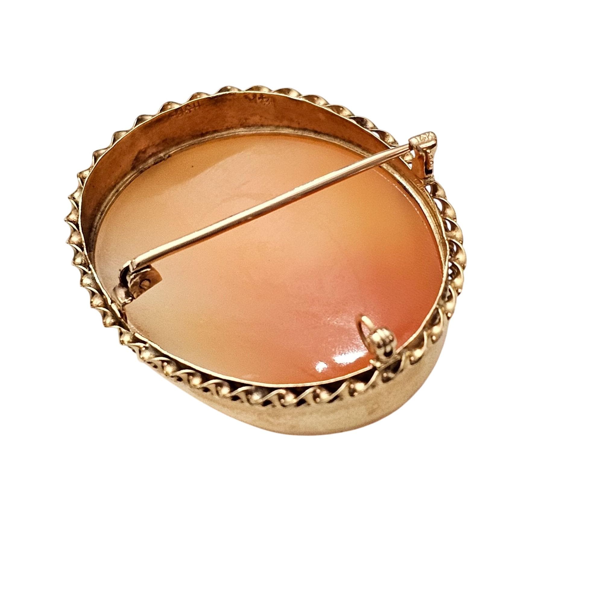 •14K Yellow Gold Shell Carved Cameo Brooch Pendant