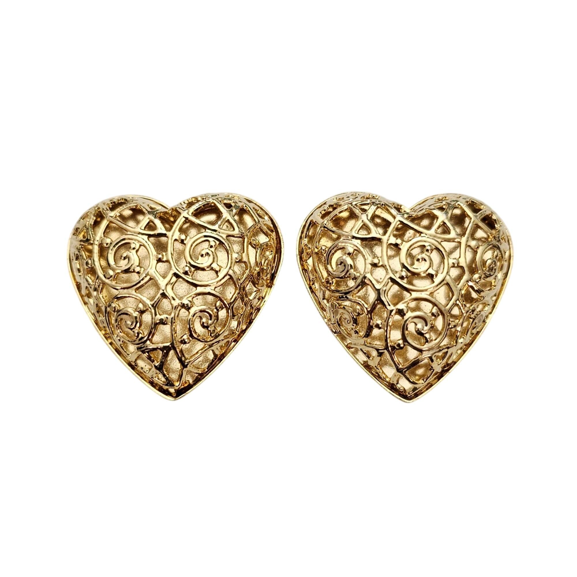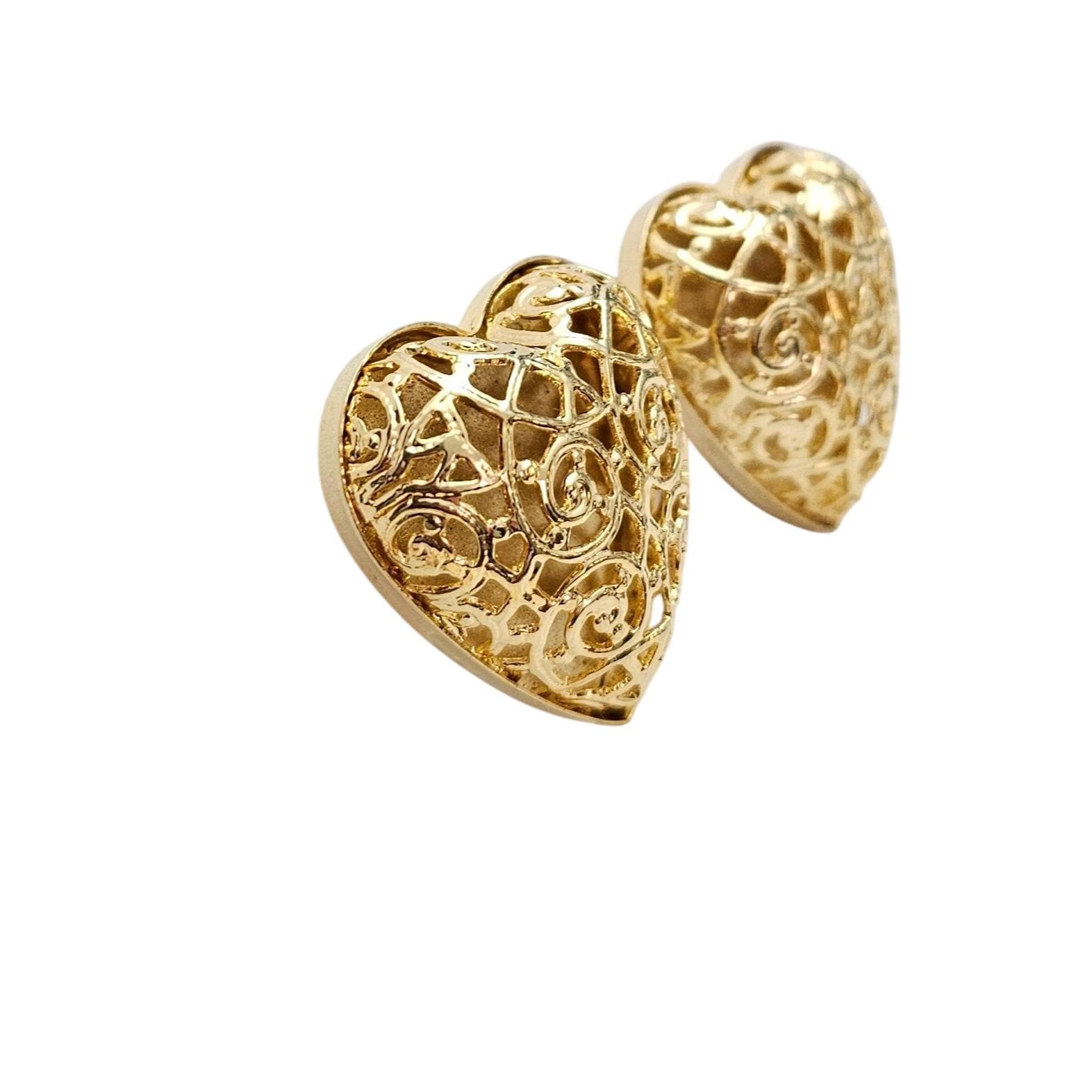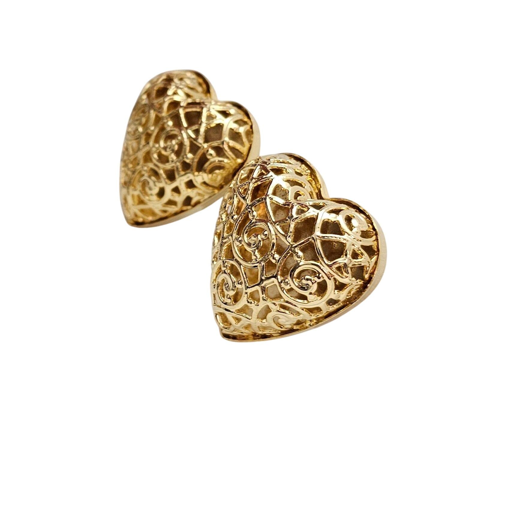 Puffy Heart Cut Out Clip On Gold Tone Earrings J575