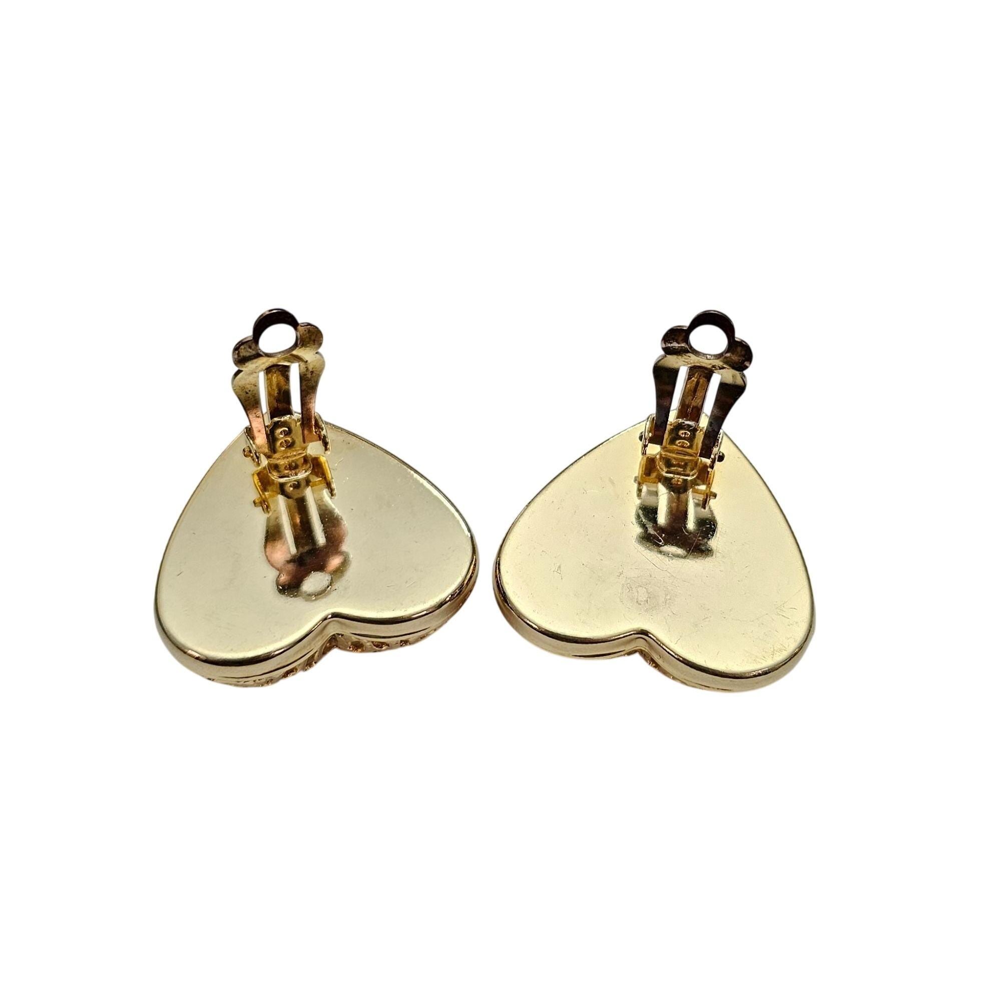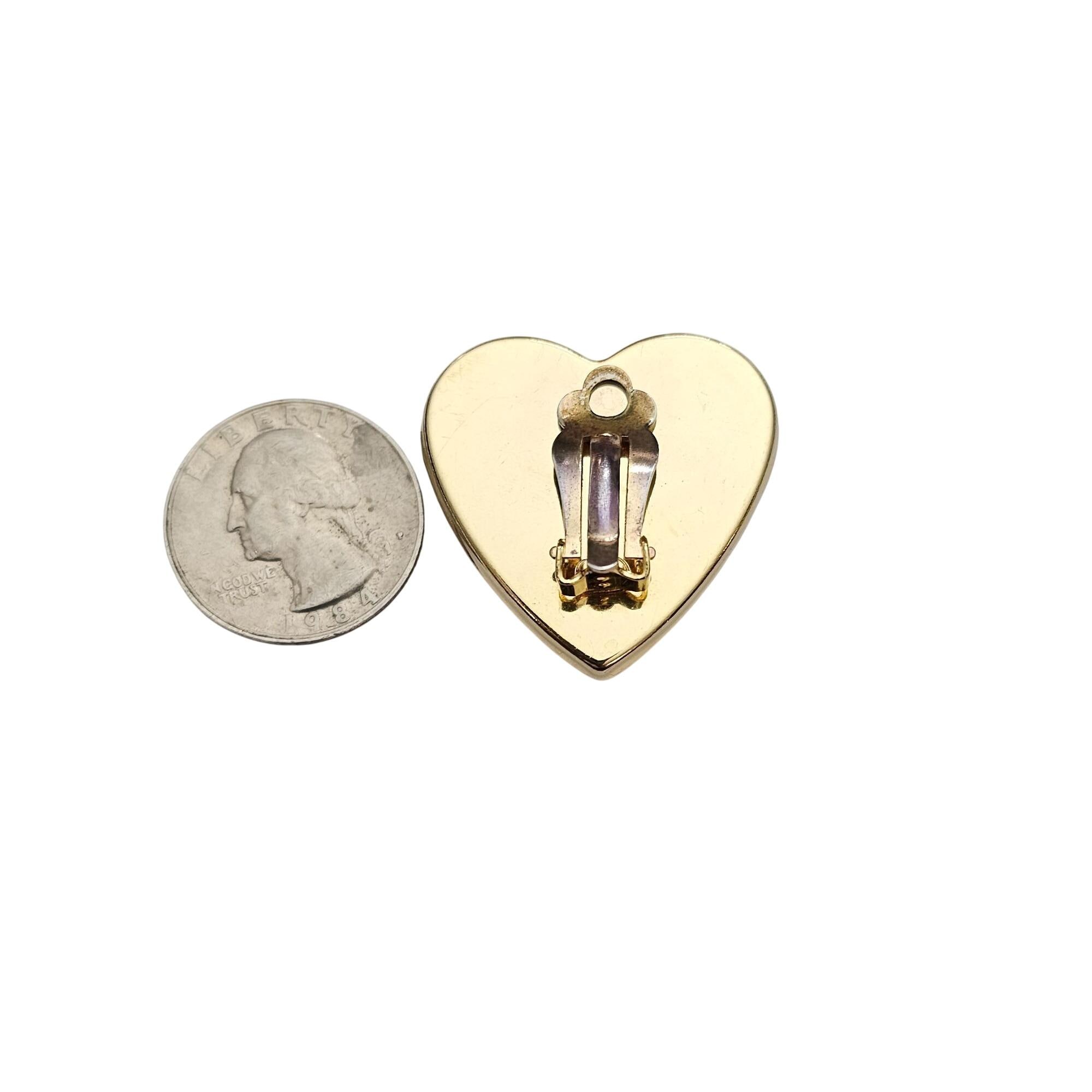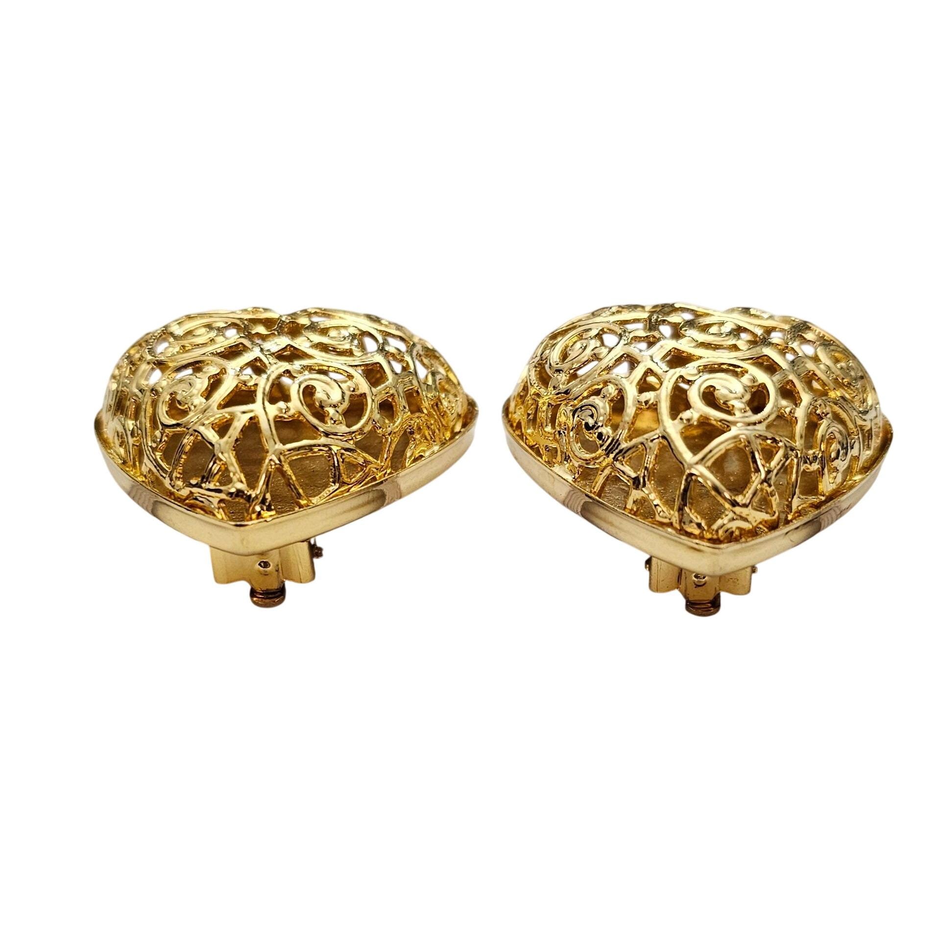 Puffy Heart Cut Out Clip On Gold Tone Earrings J575