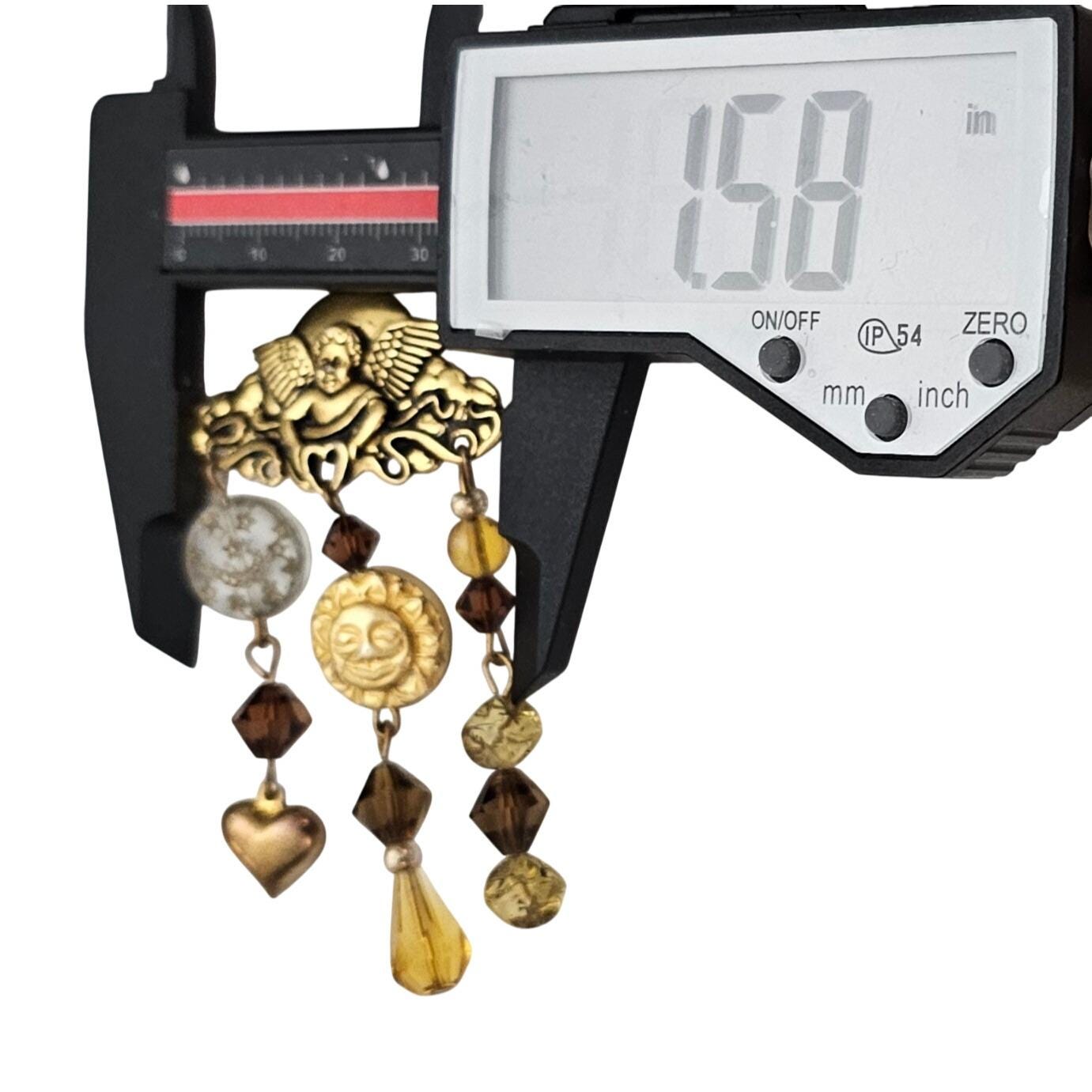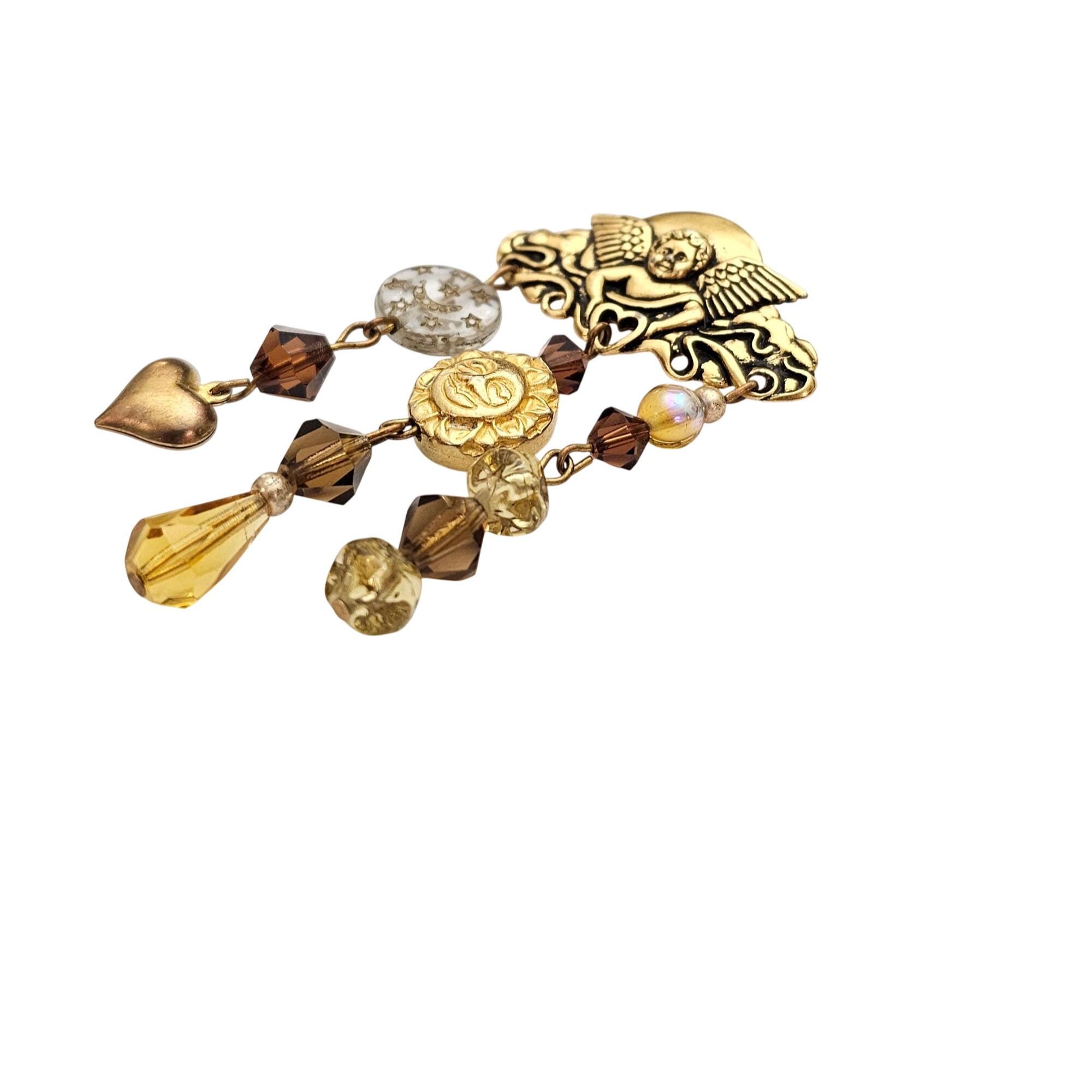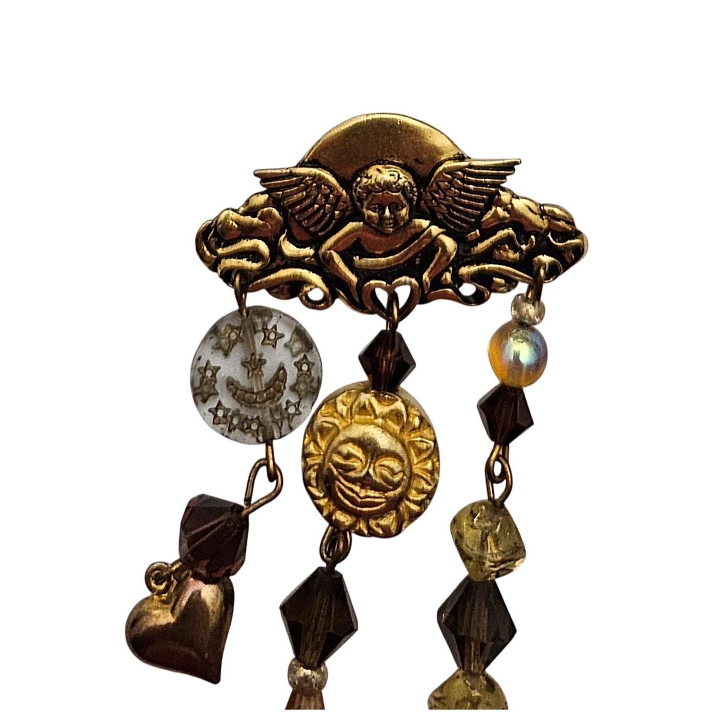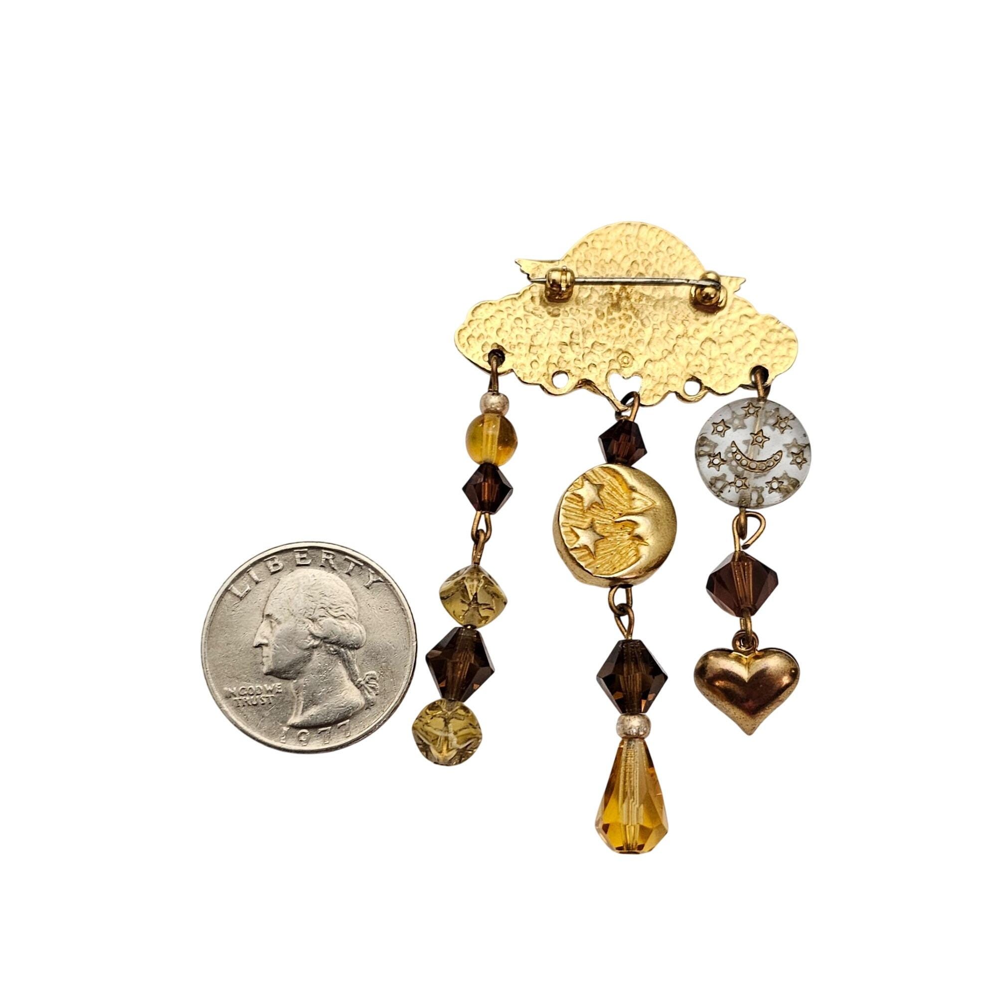 Cupid Bar Brooch Sun Moon Puffy Heart Glass Bead Charm Dangle Pin J593