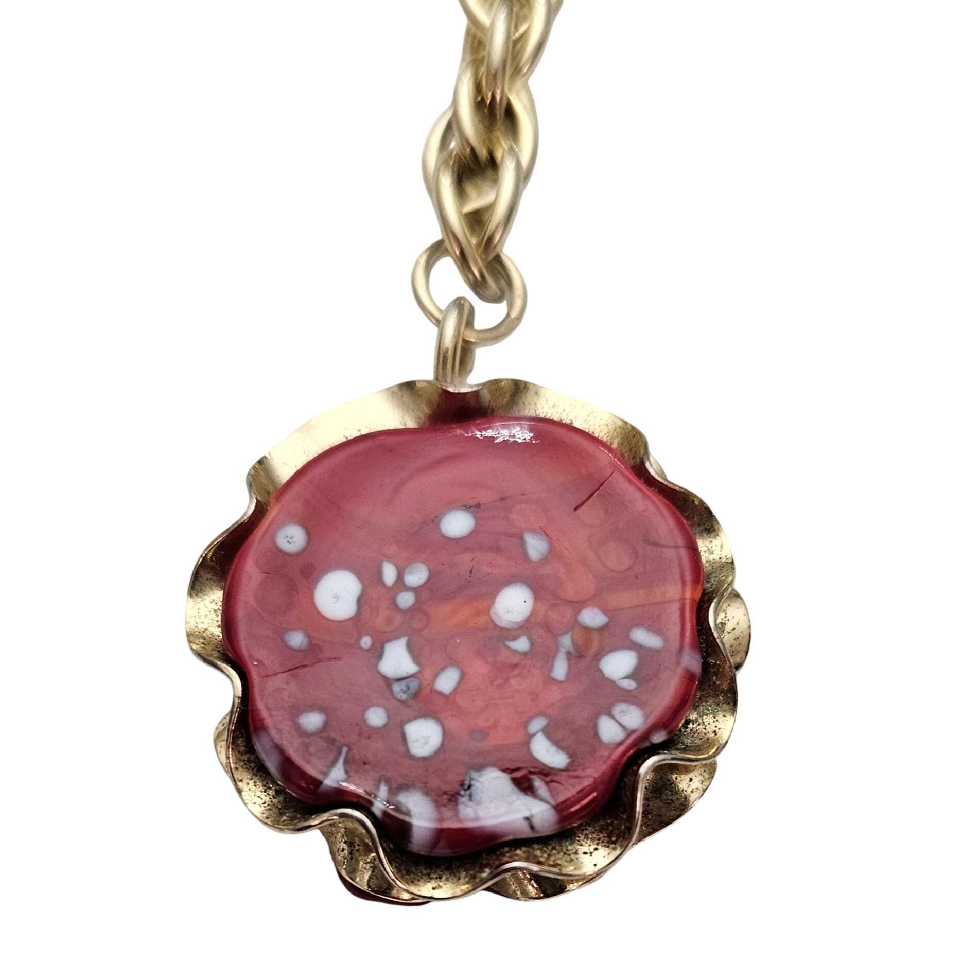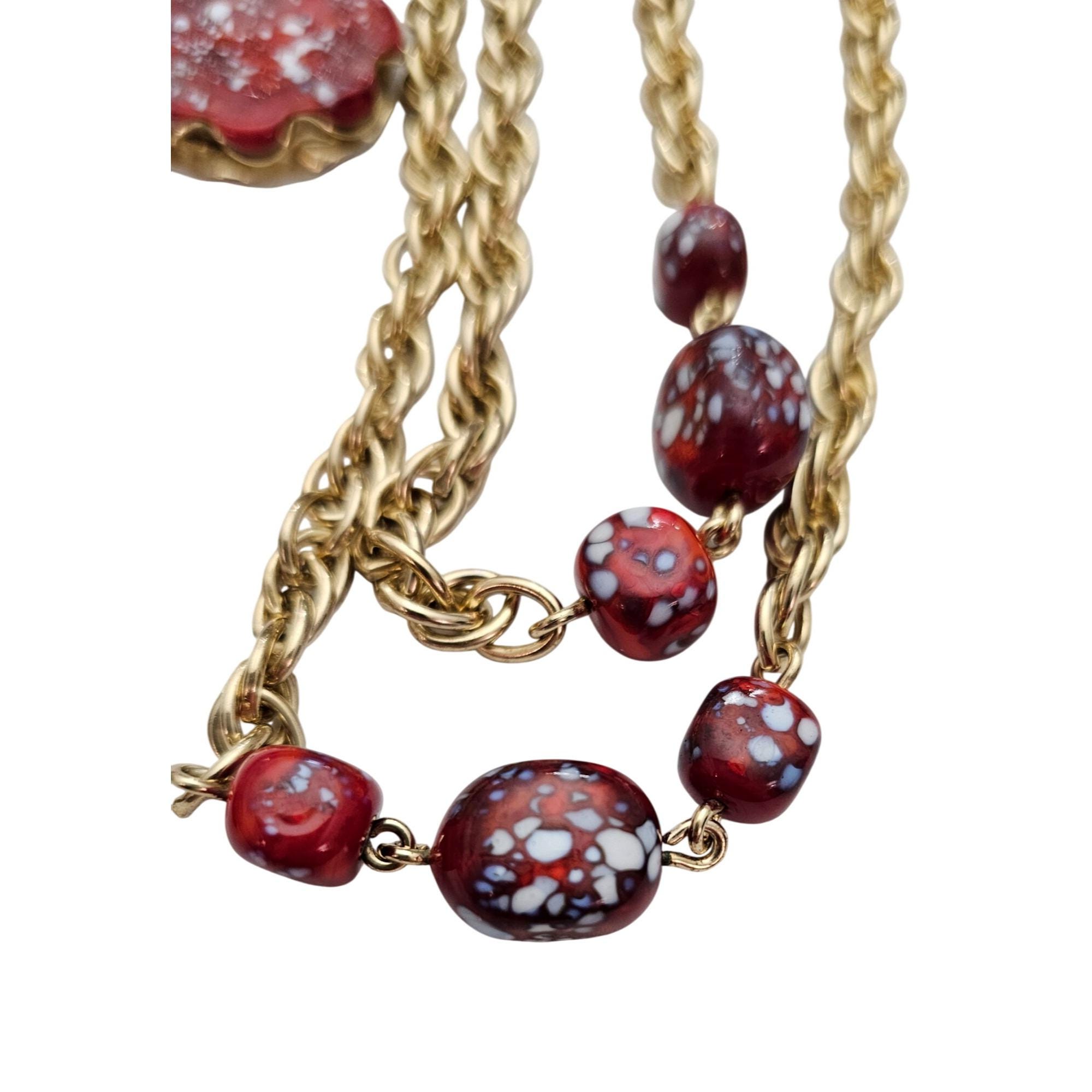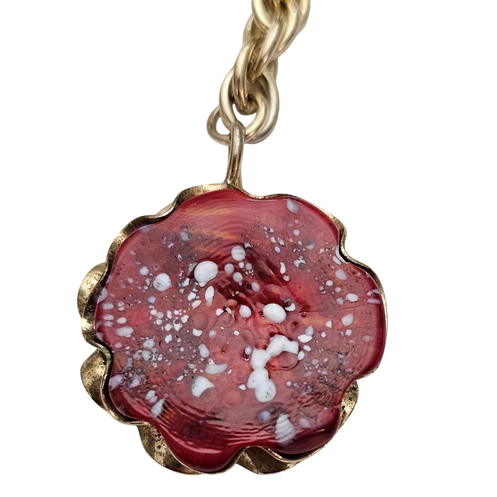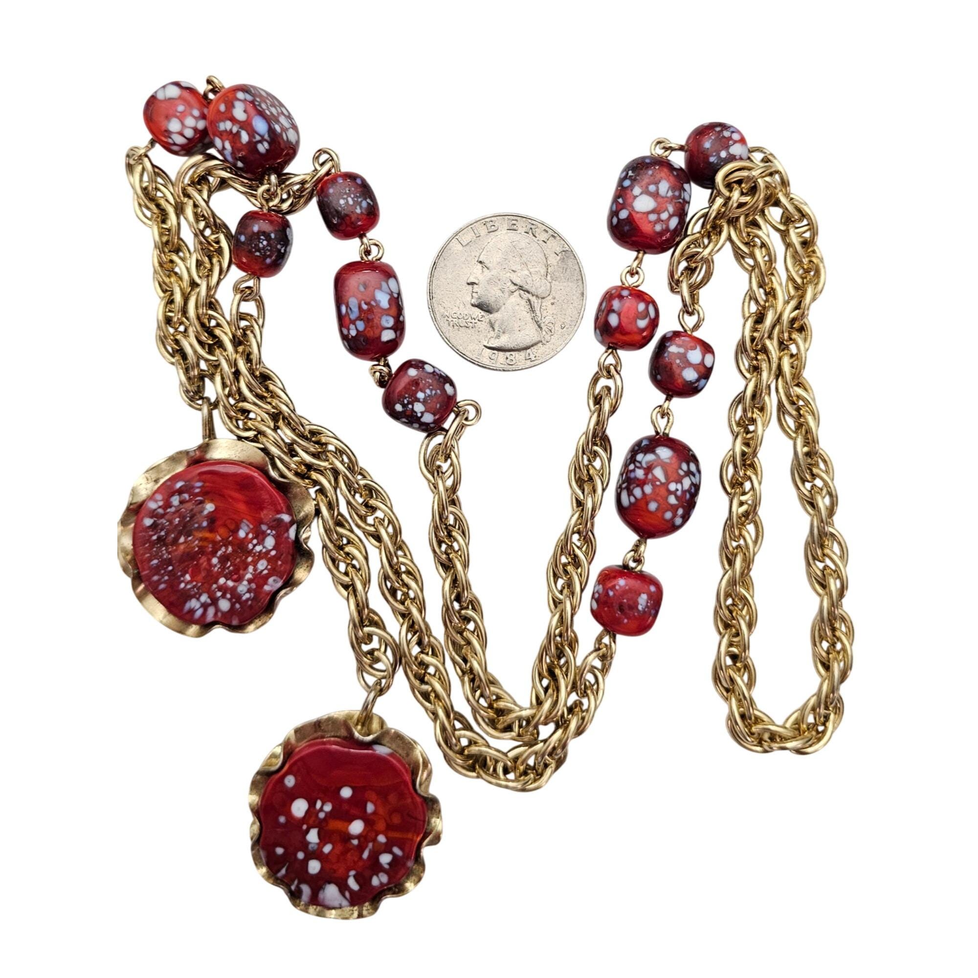 Julio Marcella Marner Art Glass Lariat Necklace Rare Red White Sparkles J583