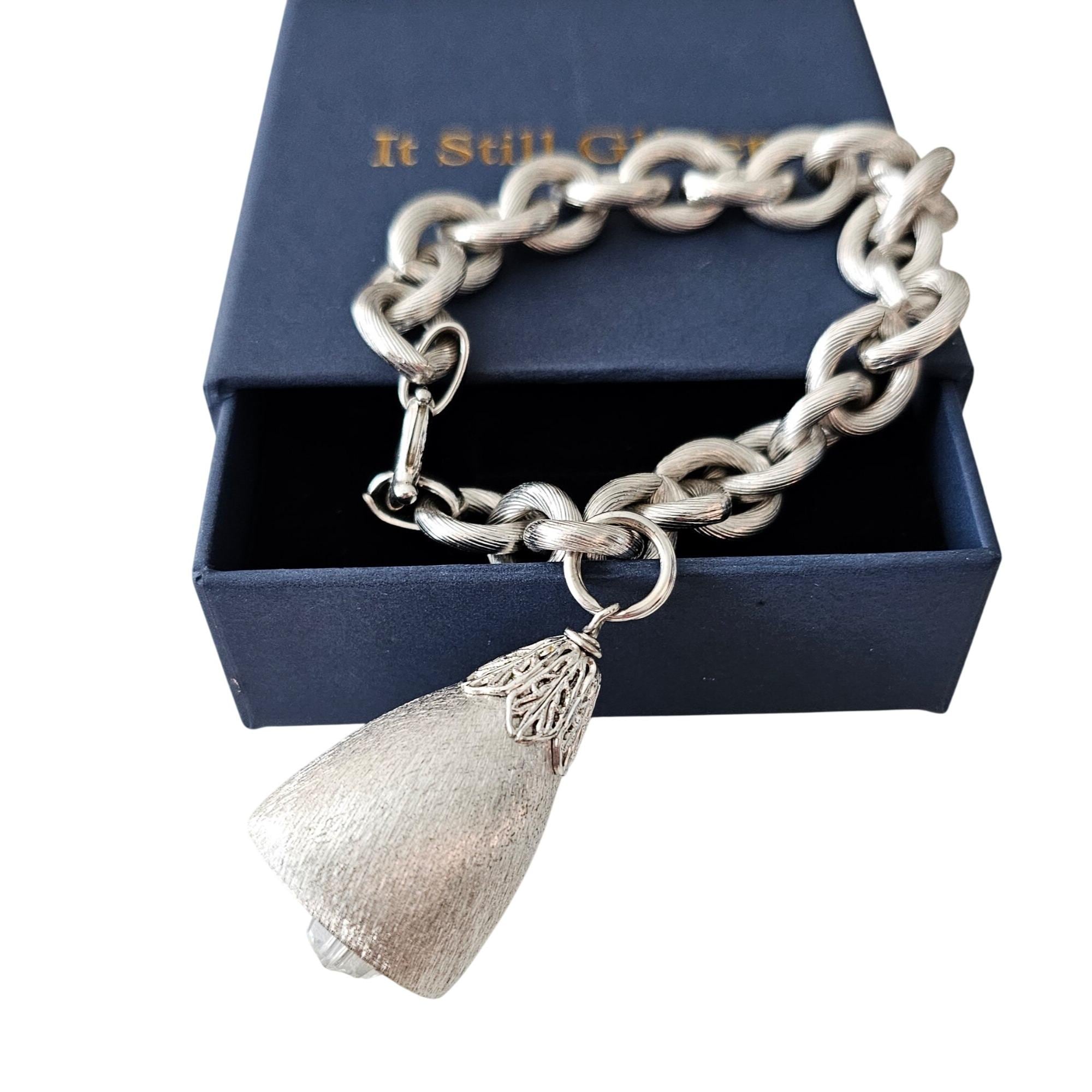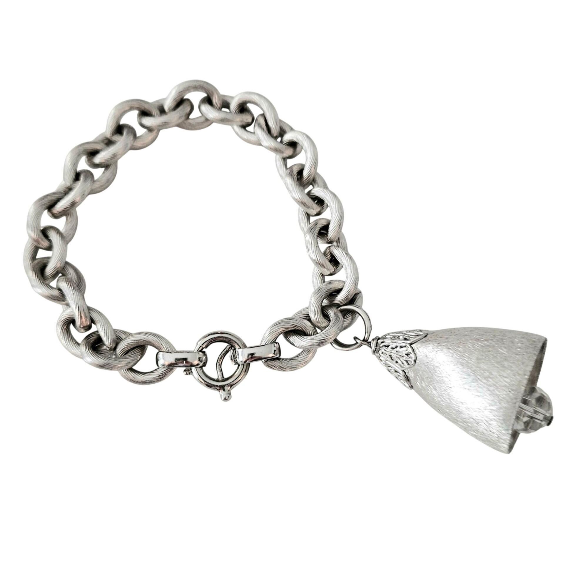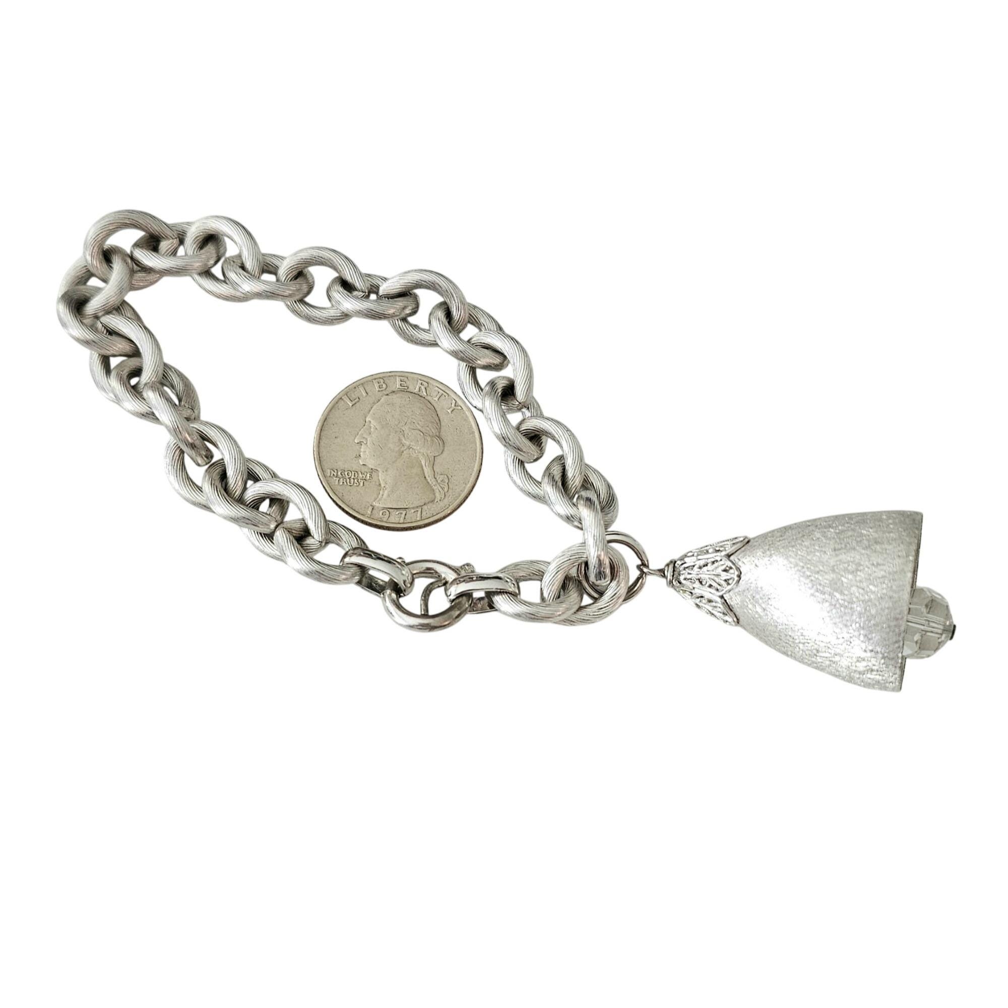 Napier Vintage Silver Tone Bell Crystal Dangle Bracelet Signed, J599