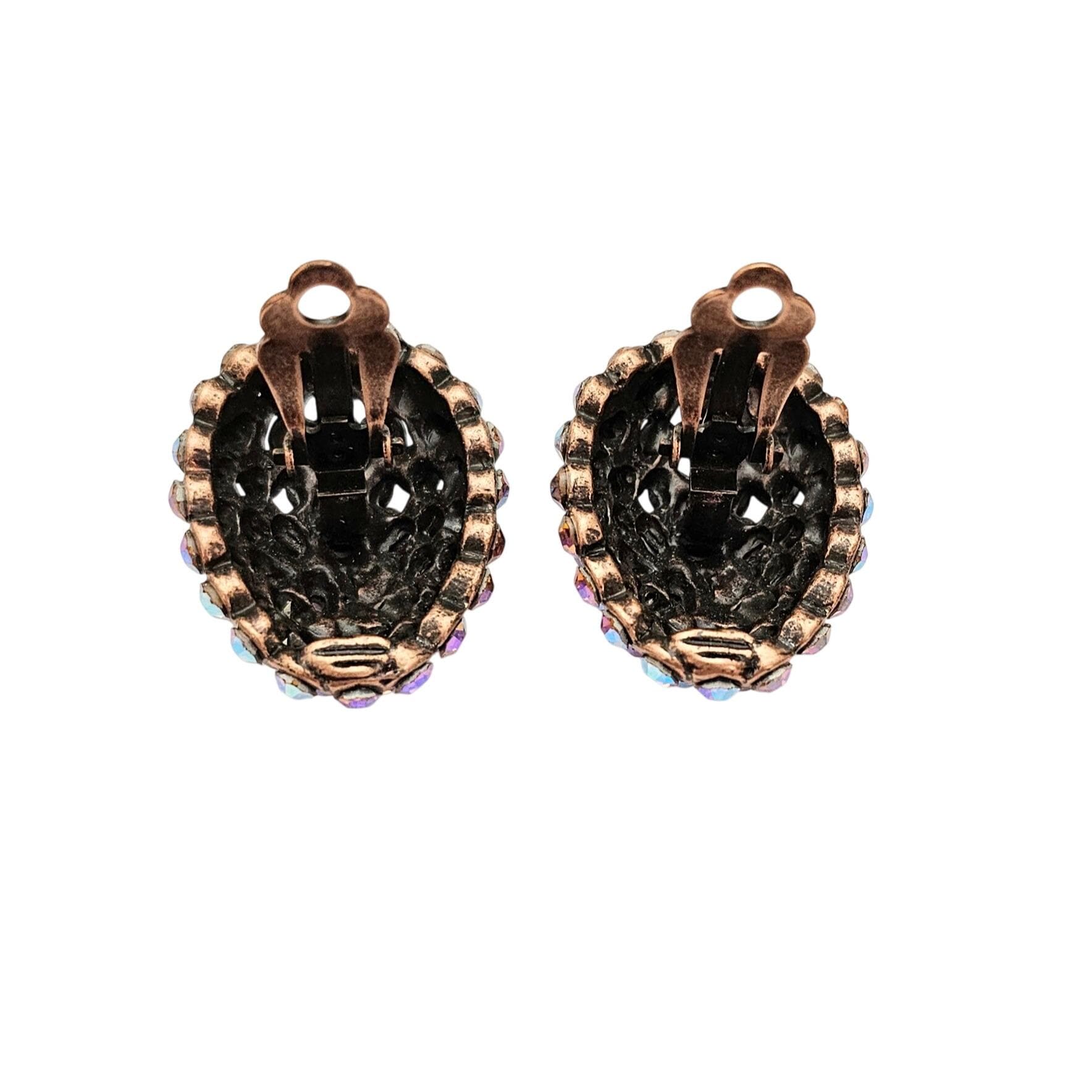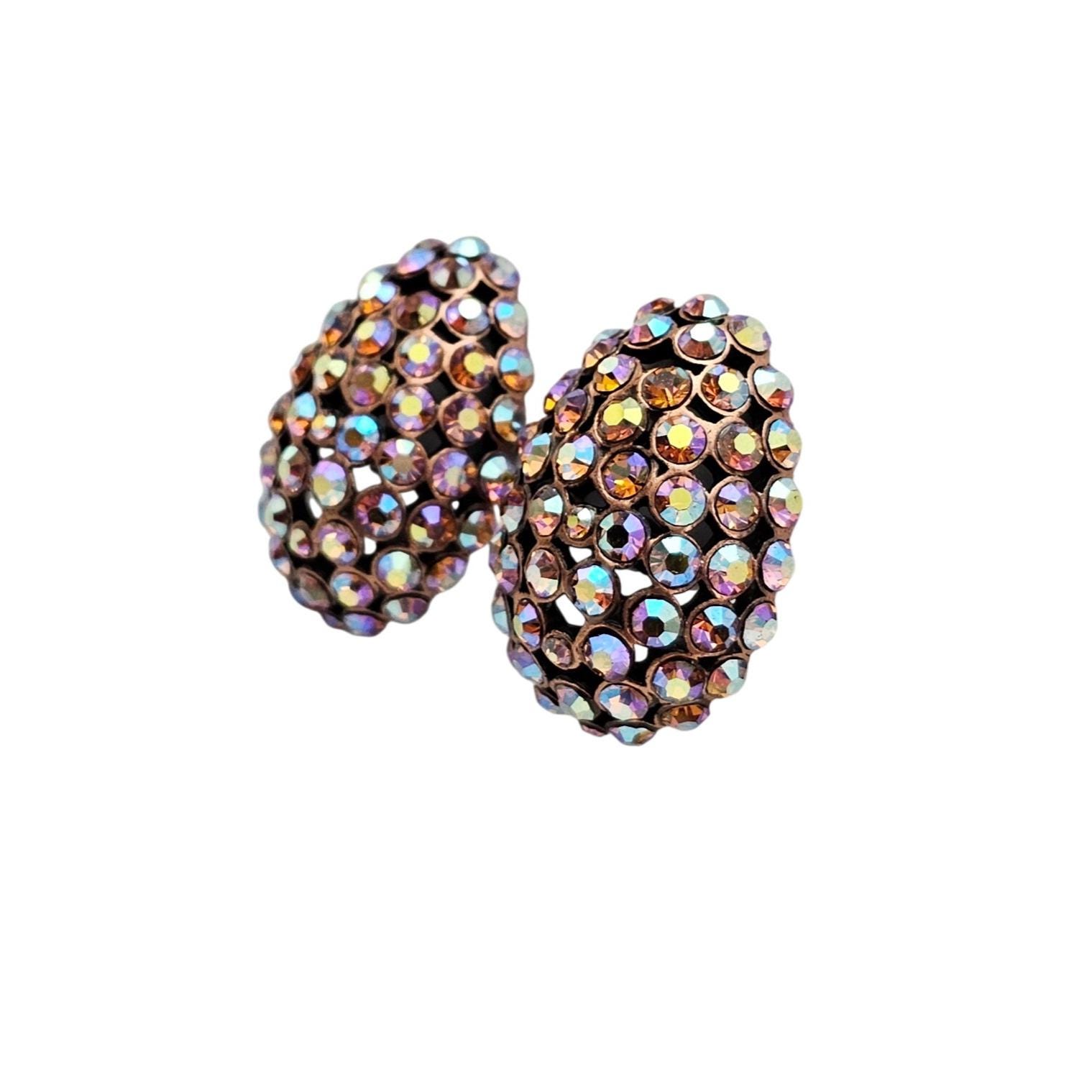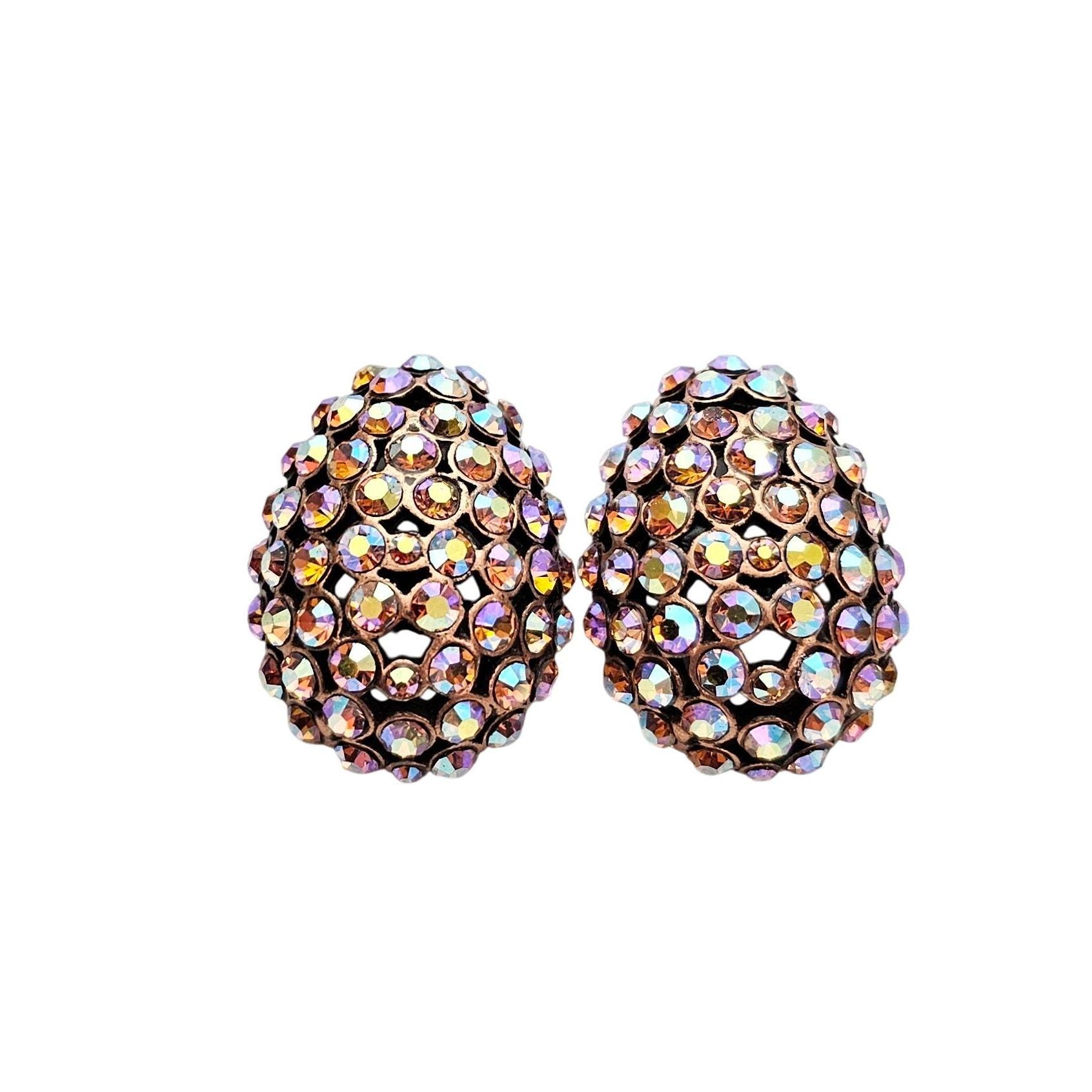 Purple Pink Yellow AB Rhinestone Egg Clip On Oval Earrings J596