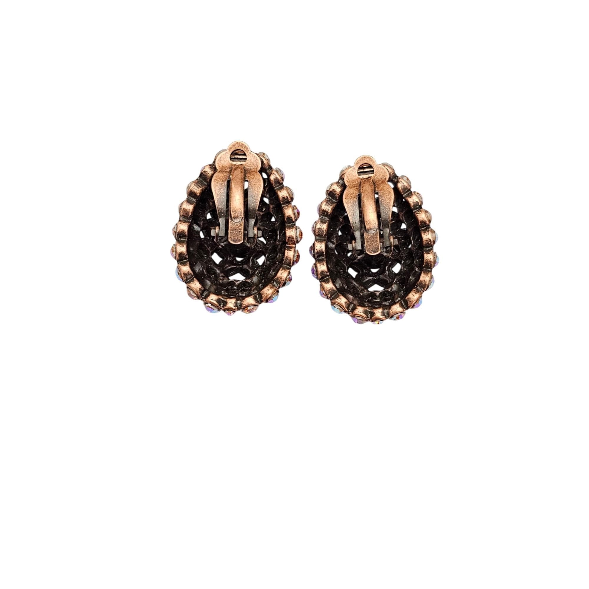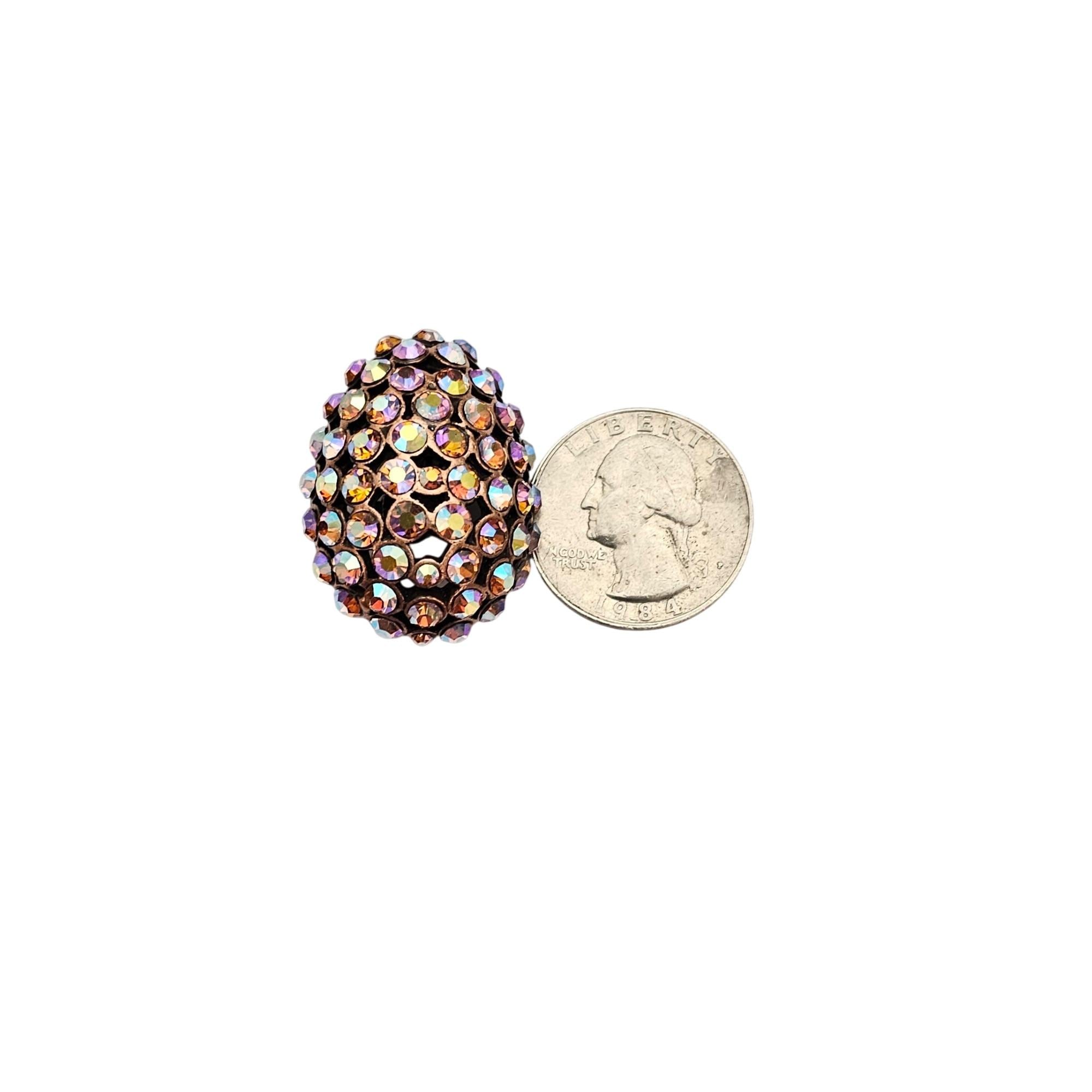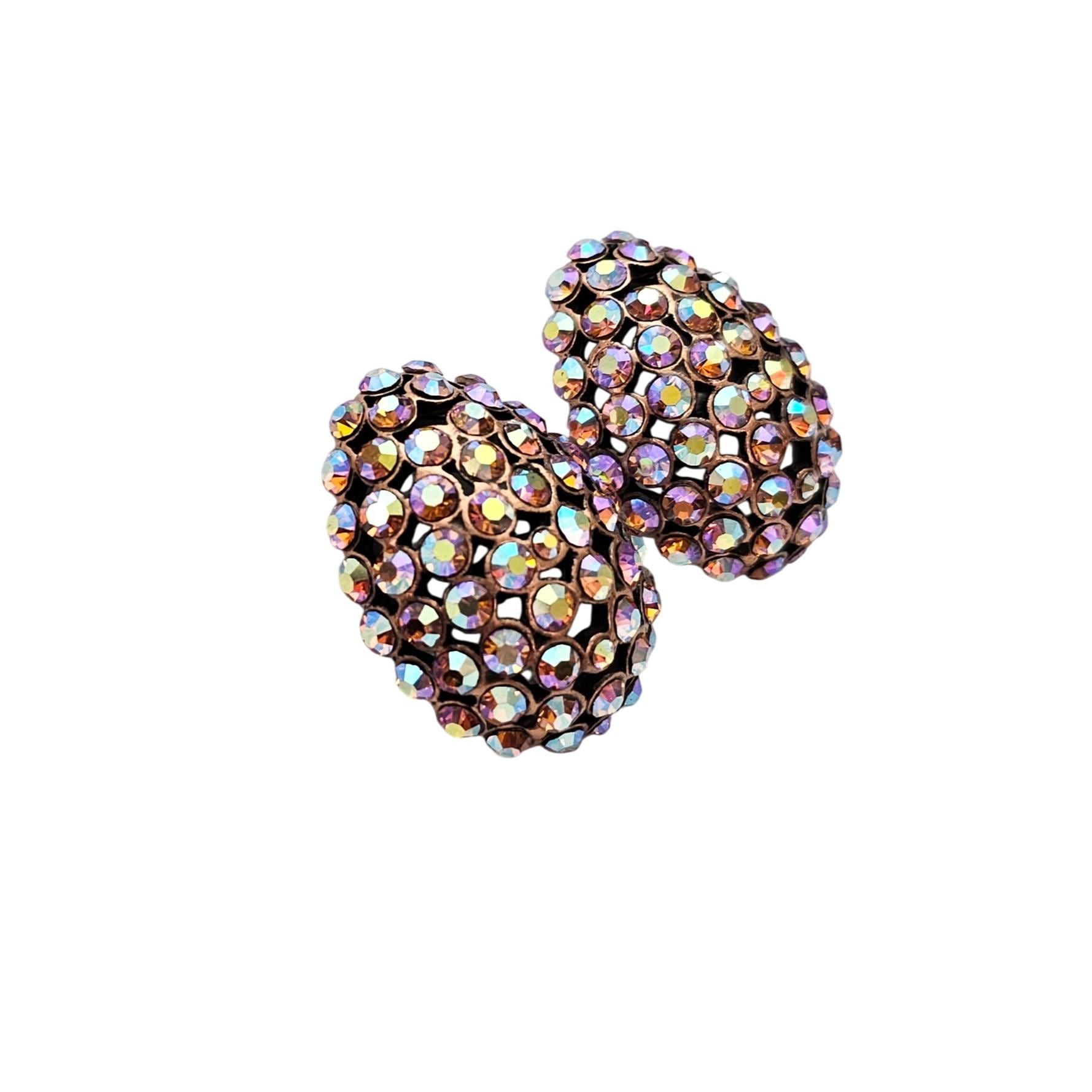 Purple Pink Yellow AB Rhinestone Egg Clip On Oval Earrings J596