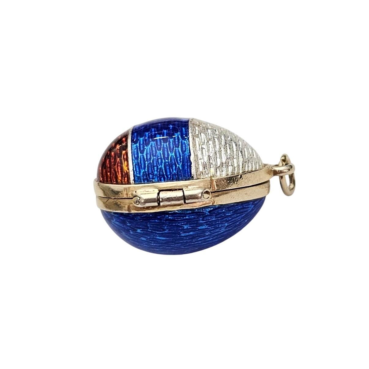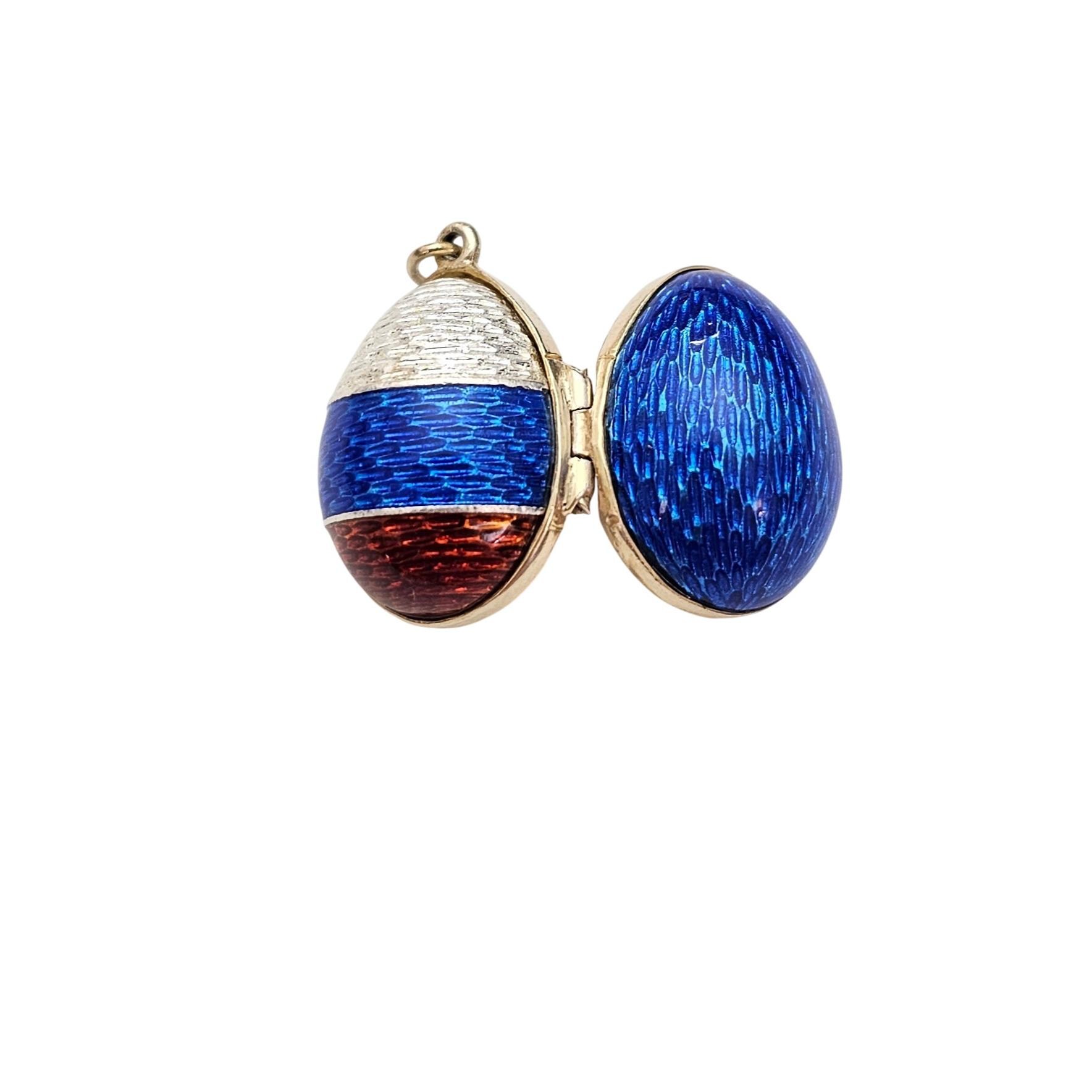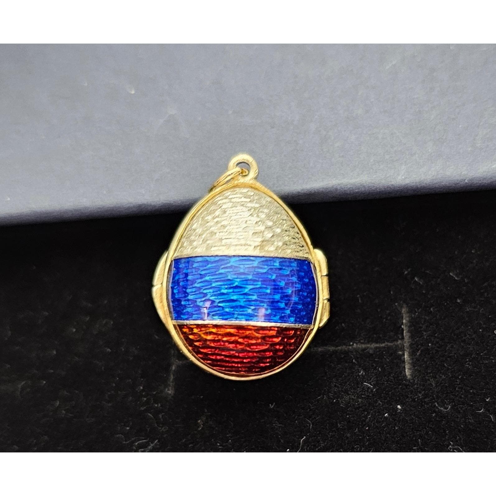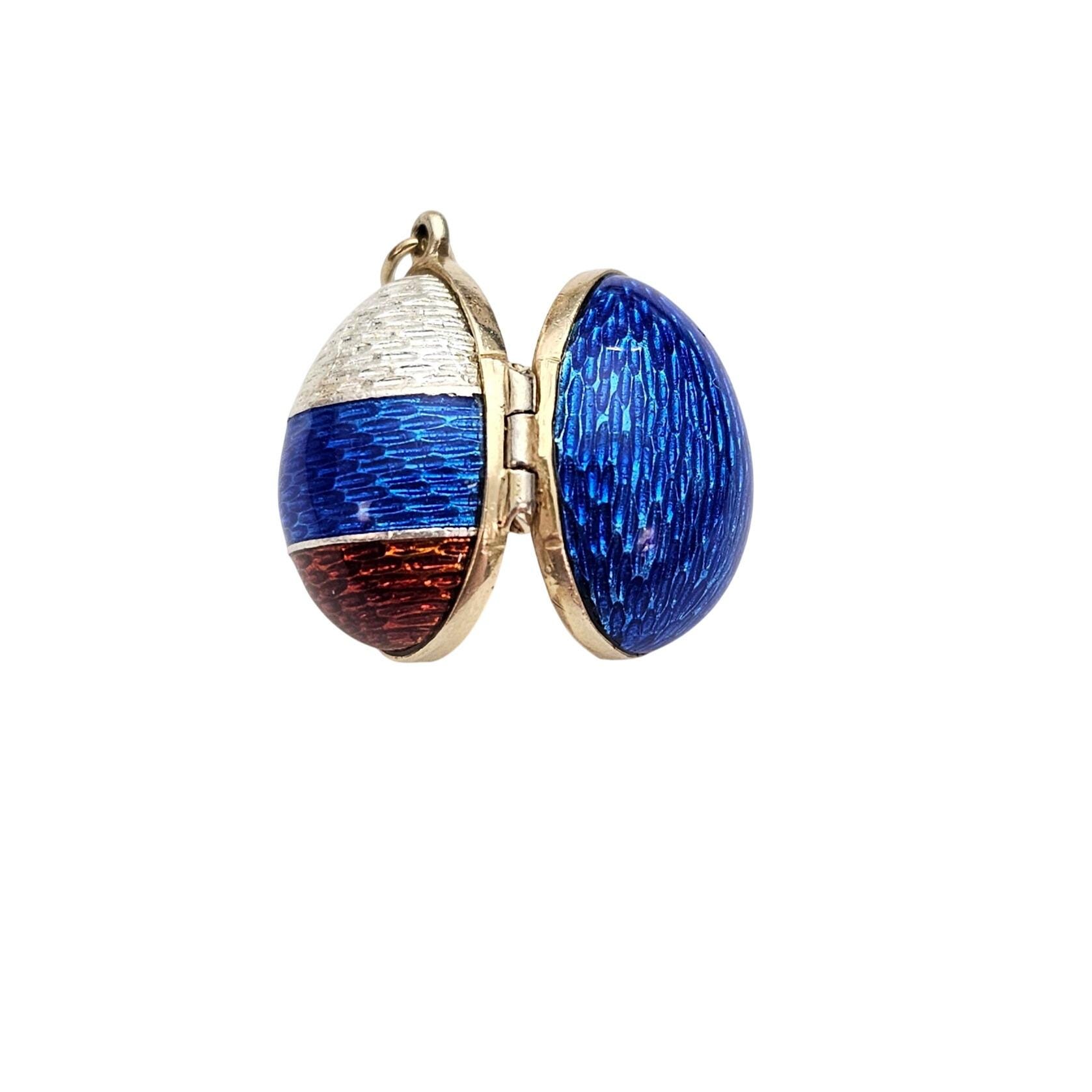 Sterling Gold Vermeil White Blue Red Guilloche Egg Locket Pendant J584