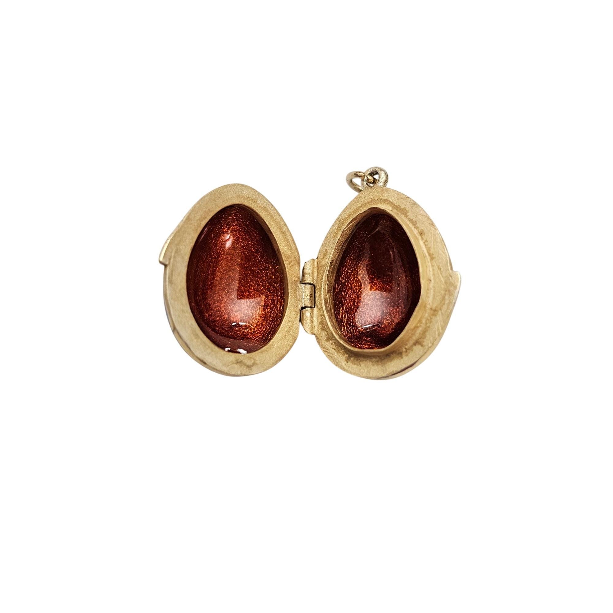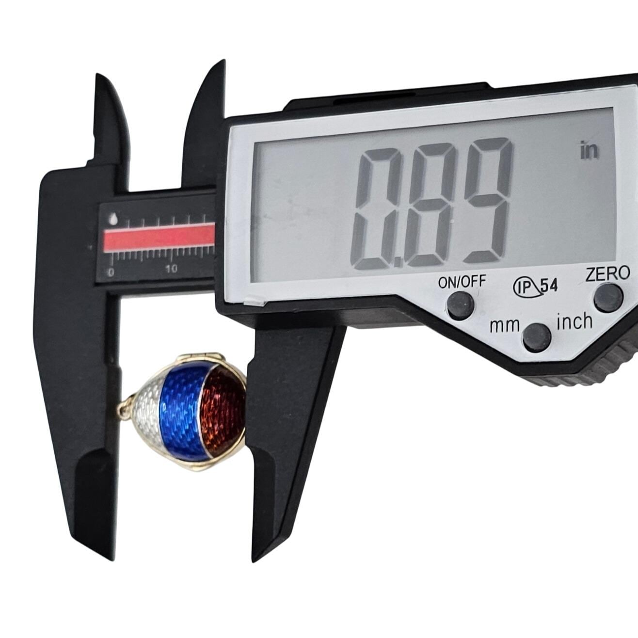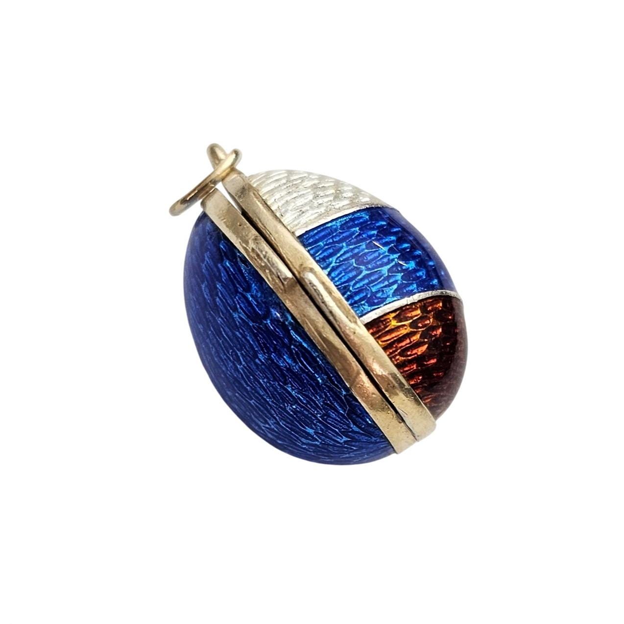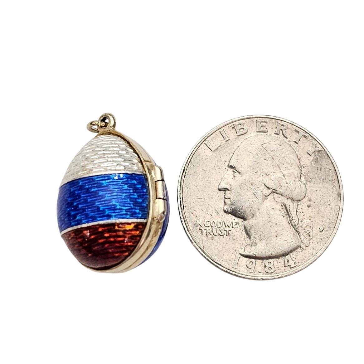 Sterling Gold Vermeil White Blue Red Guilloche Egg Locket Pendant J584