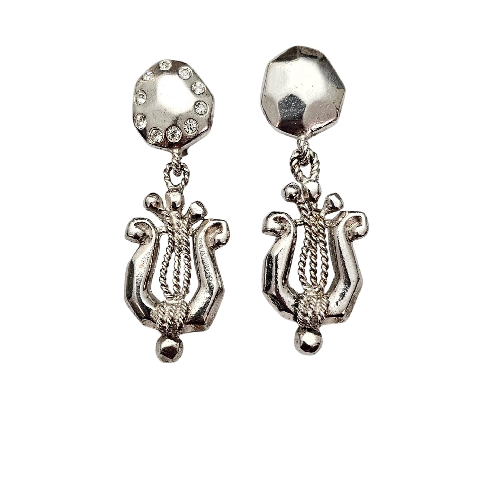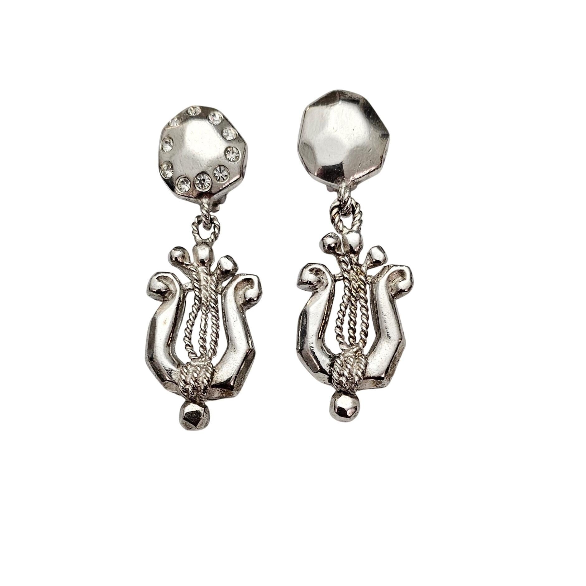 • Ungaro Lyre Harp Dangle Clip On Earrings