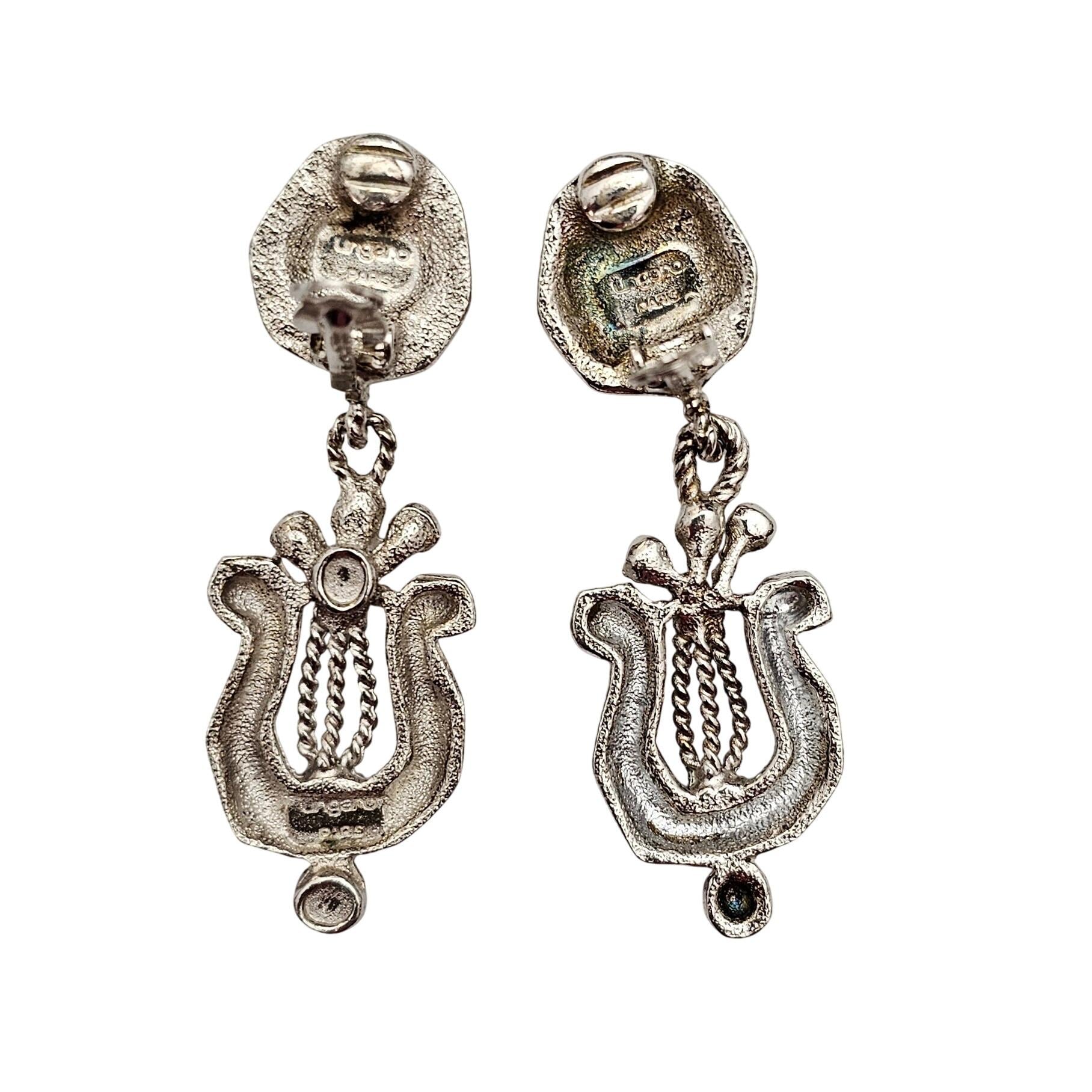 Ungaro Paris Lyre Harp Dangle Mismatches Clip On Earrings Signed, J605