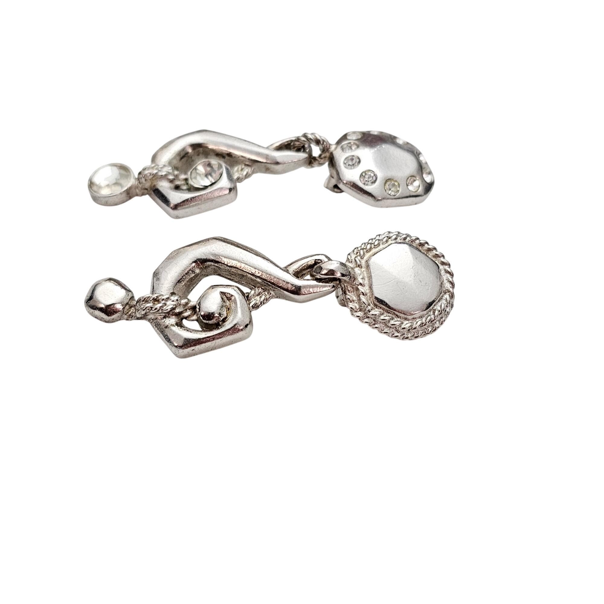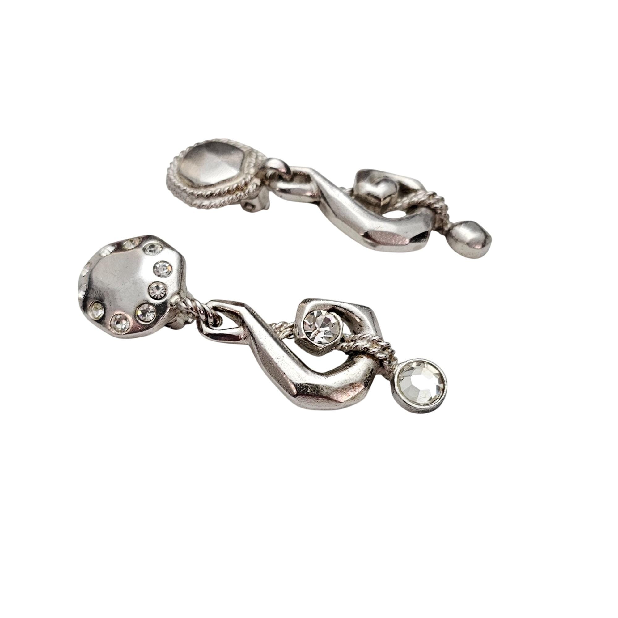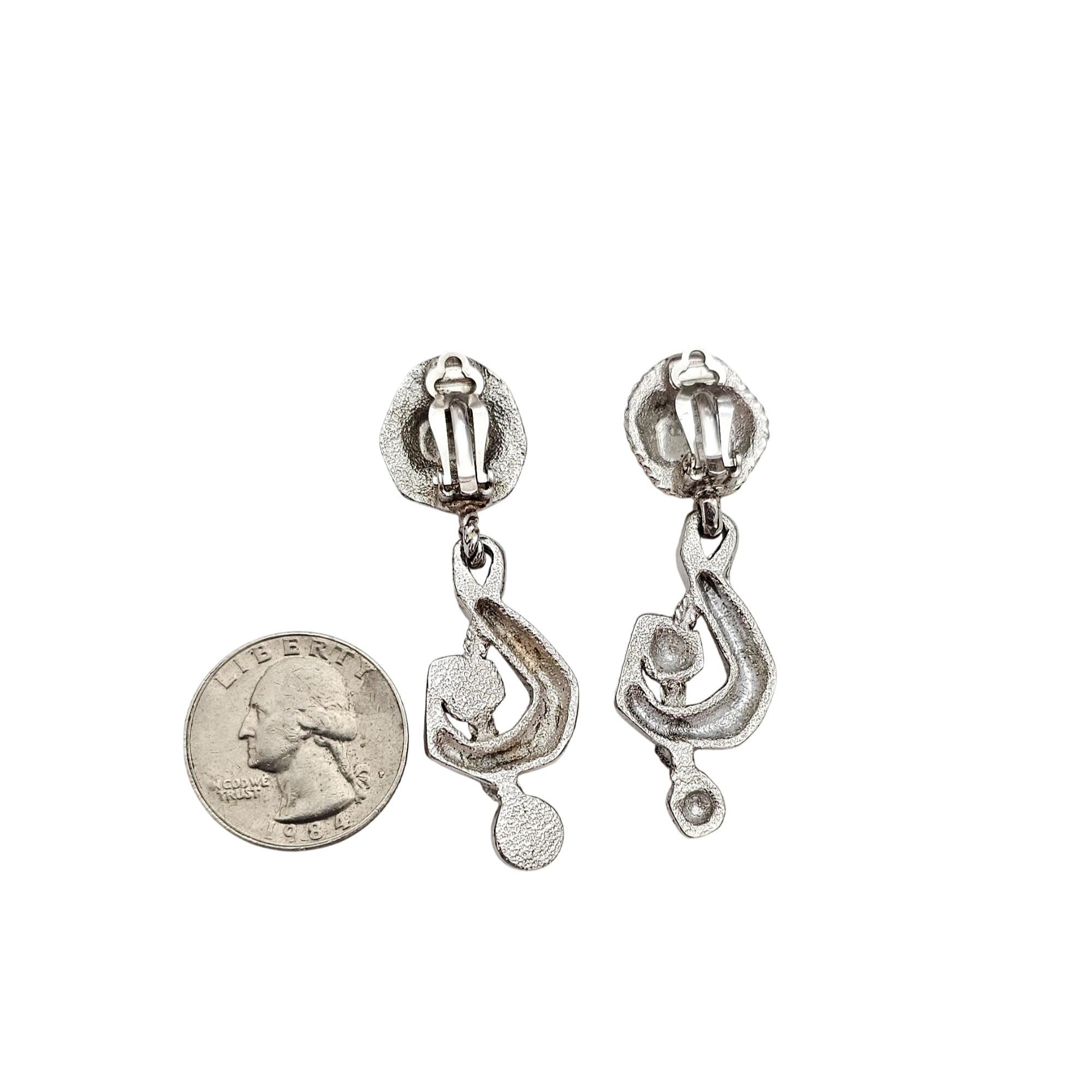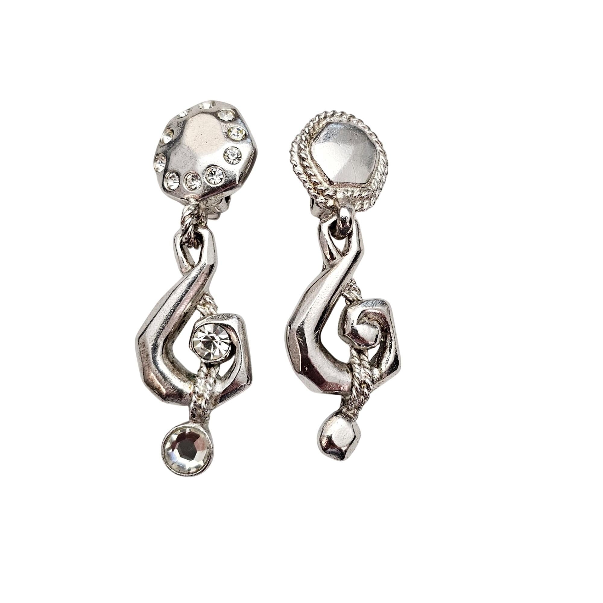 Ungaro Silver Tone Treble Clef Mismatched Clip On Rhinestone Earrings Signed, J589