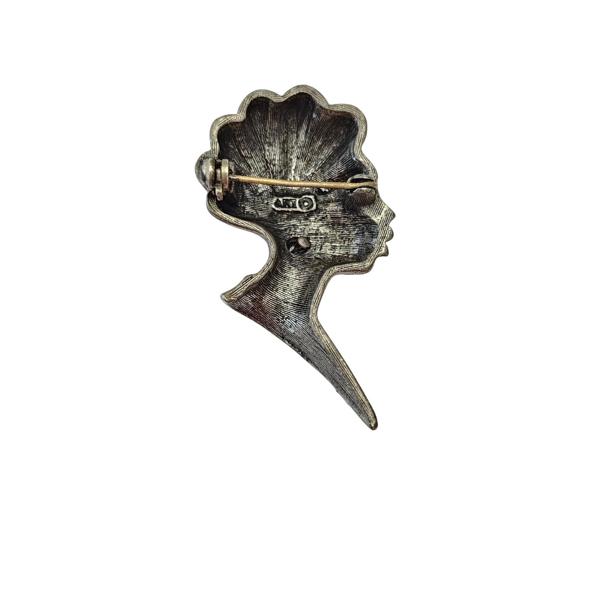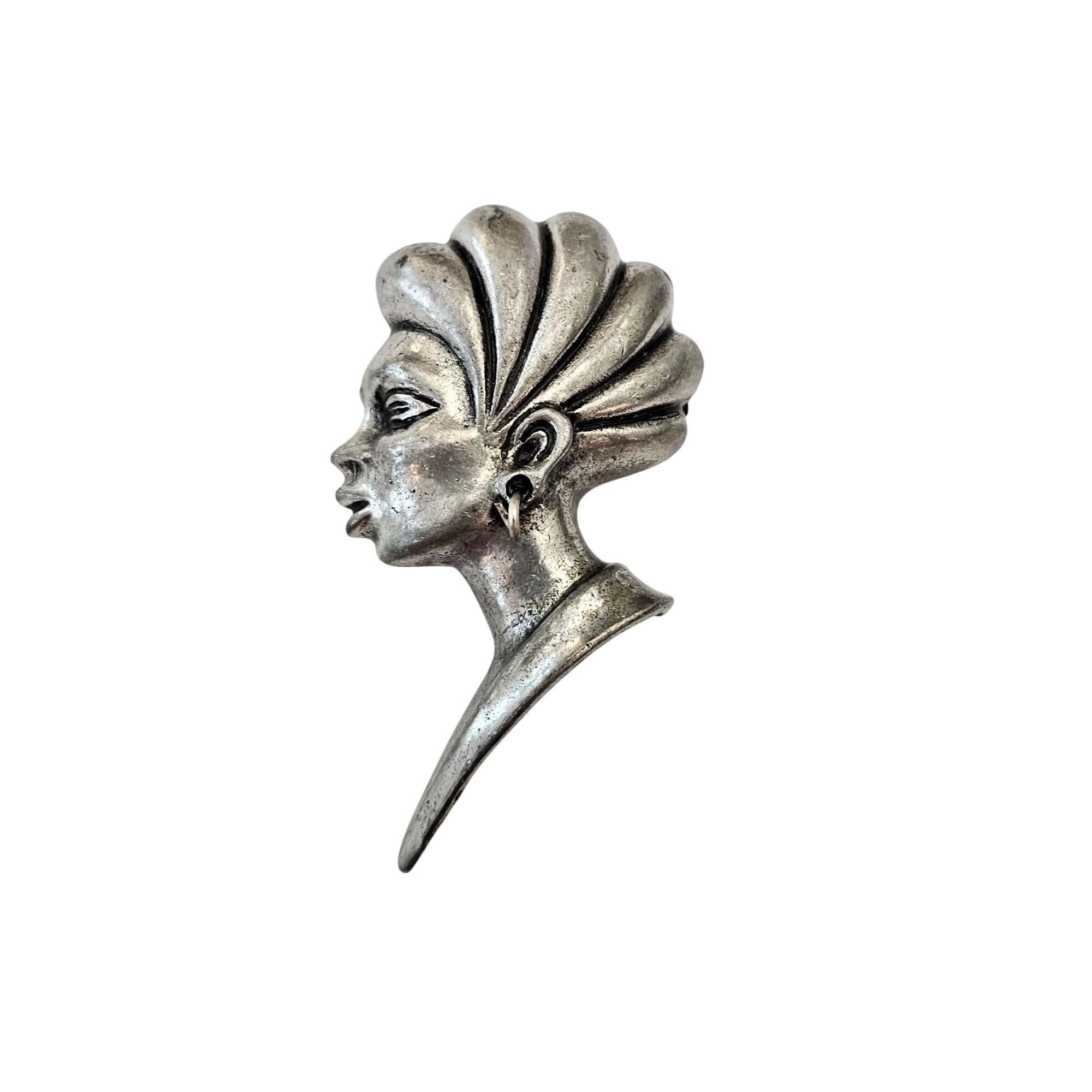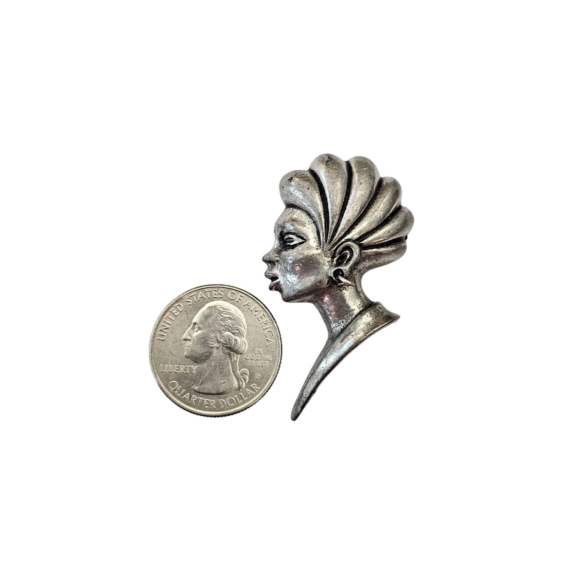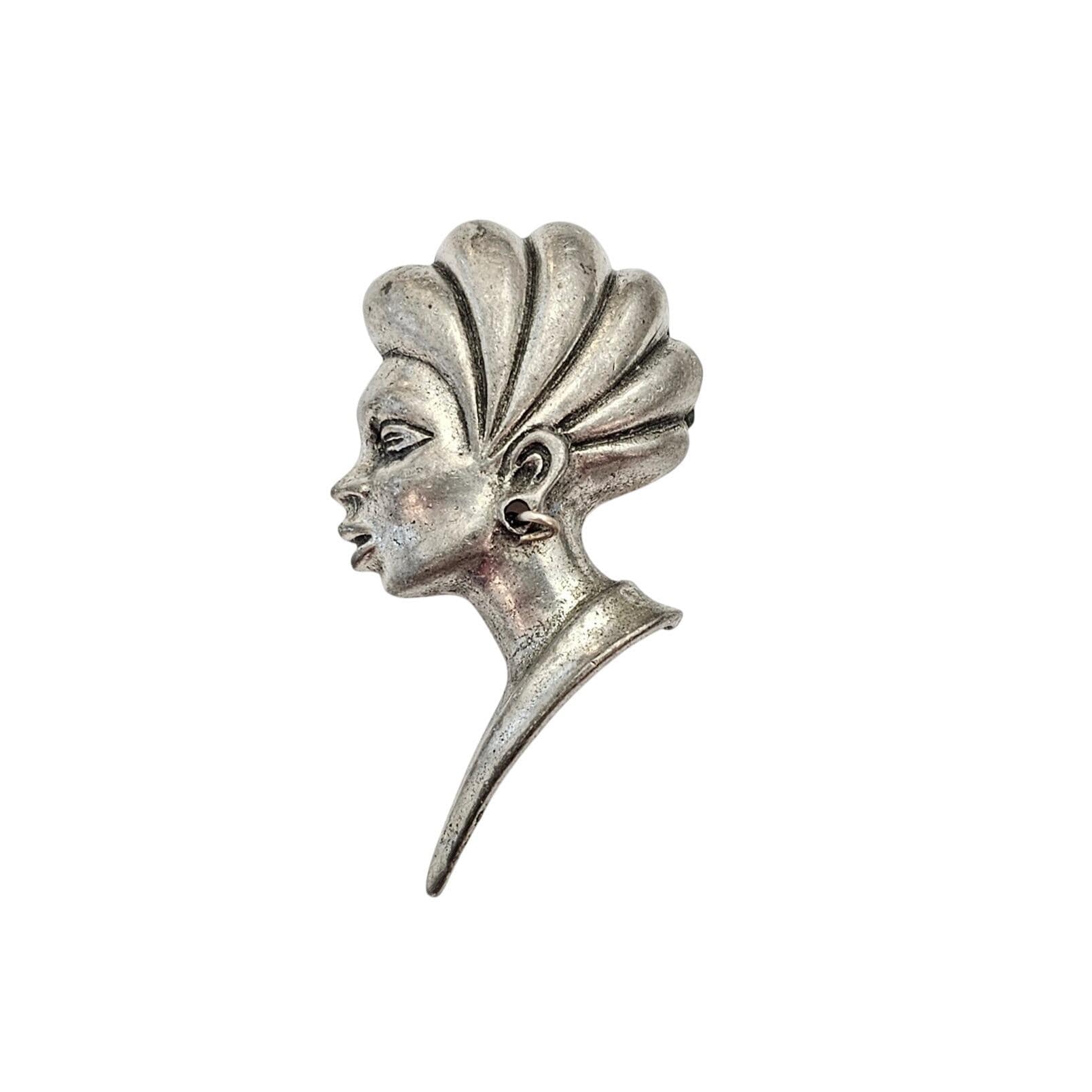 ART Arthur Pepper Silver Tone African Princess, Lady Dimensional Brooch Pin Signed, J636