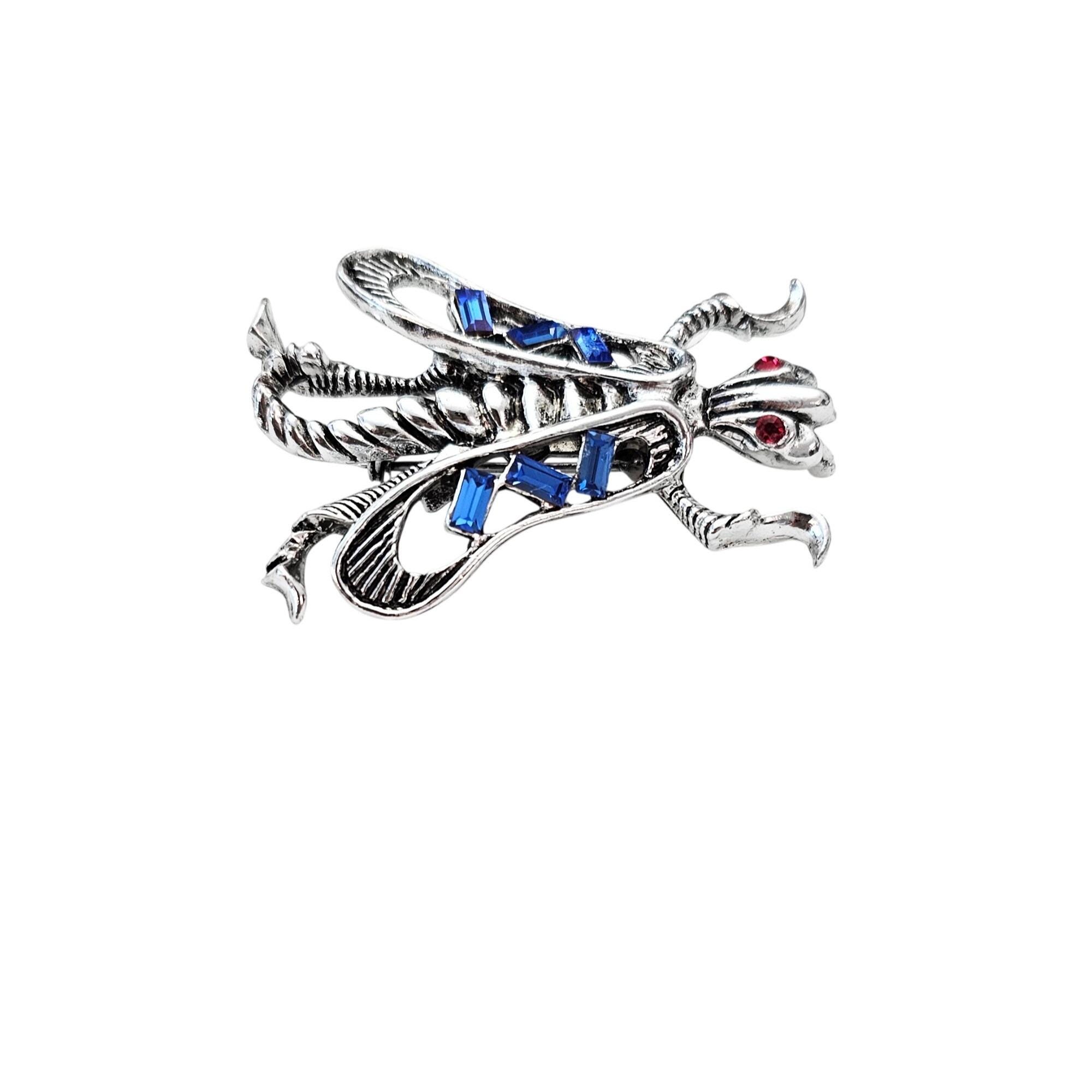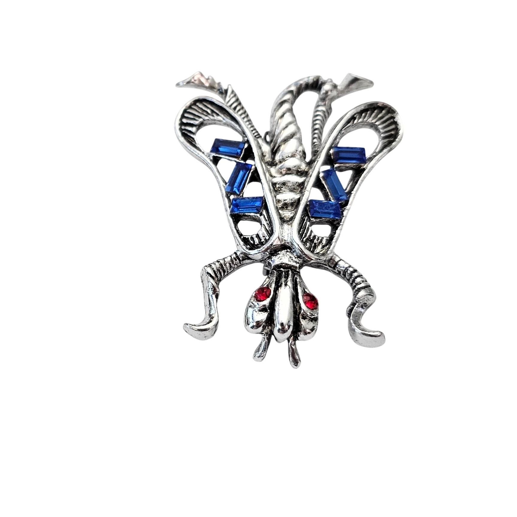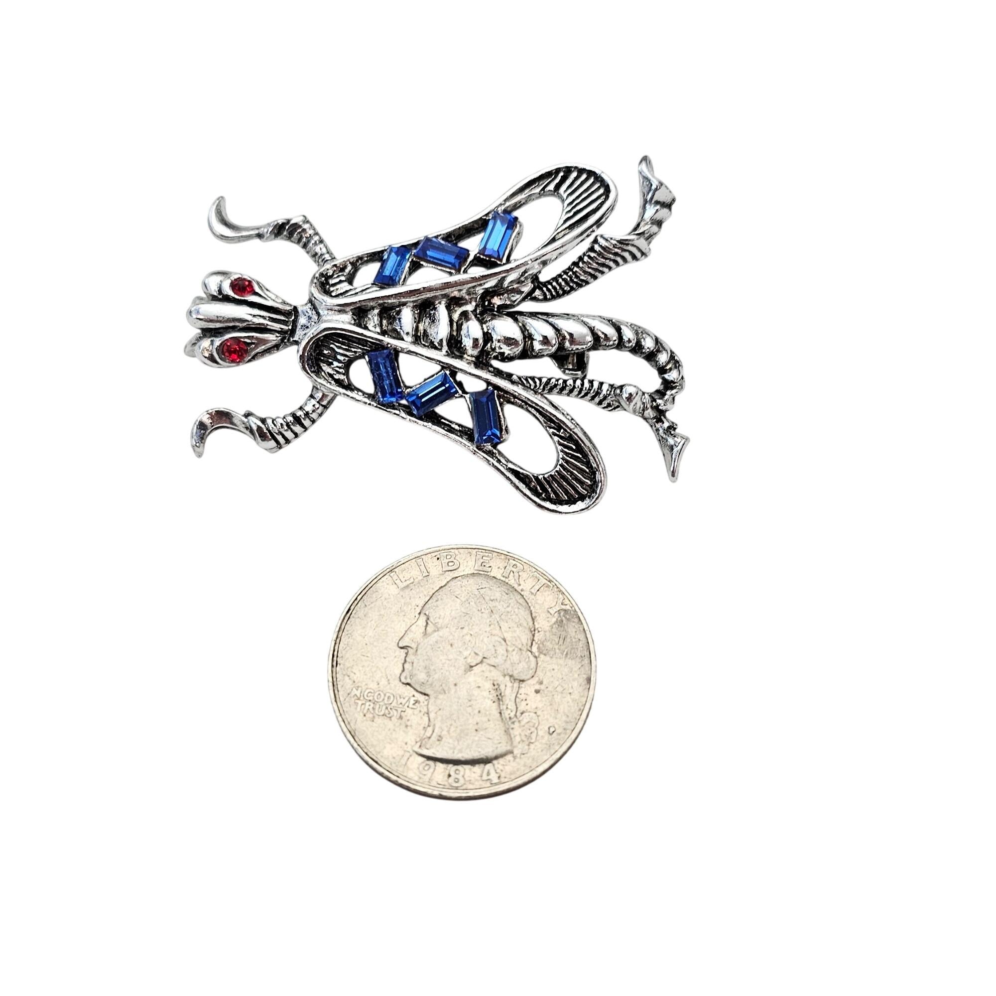 Bug Brooch Vintage Blue Baguette Rhinestone Fly Wasp Pin 608
