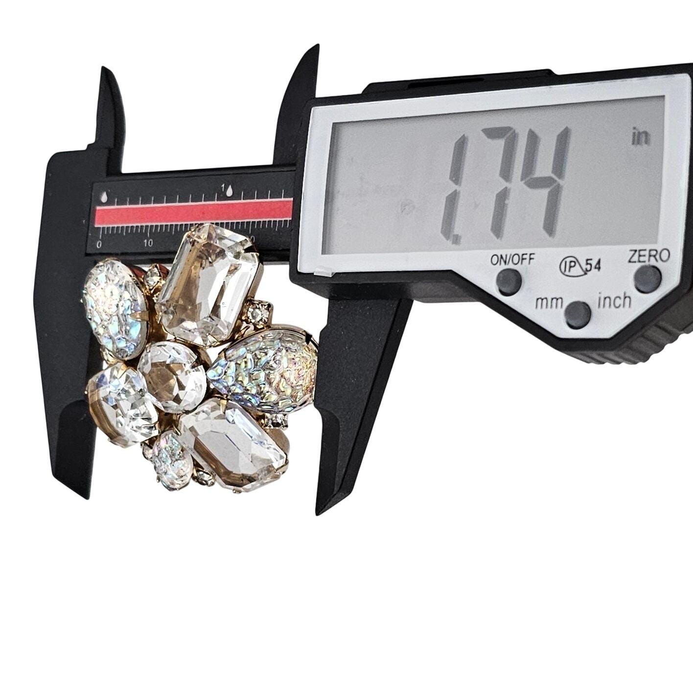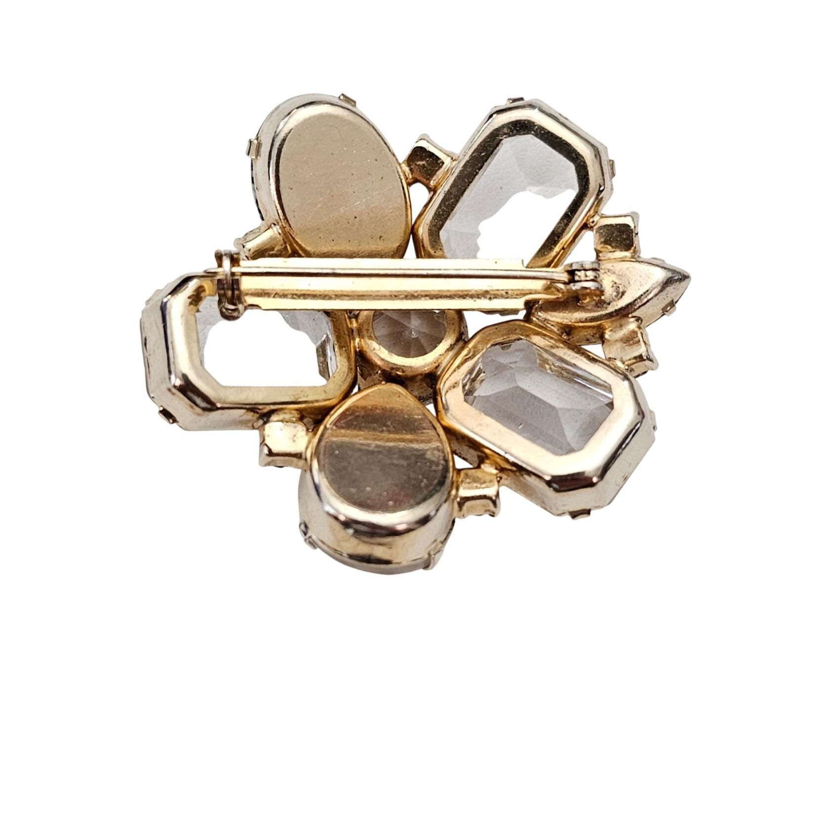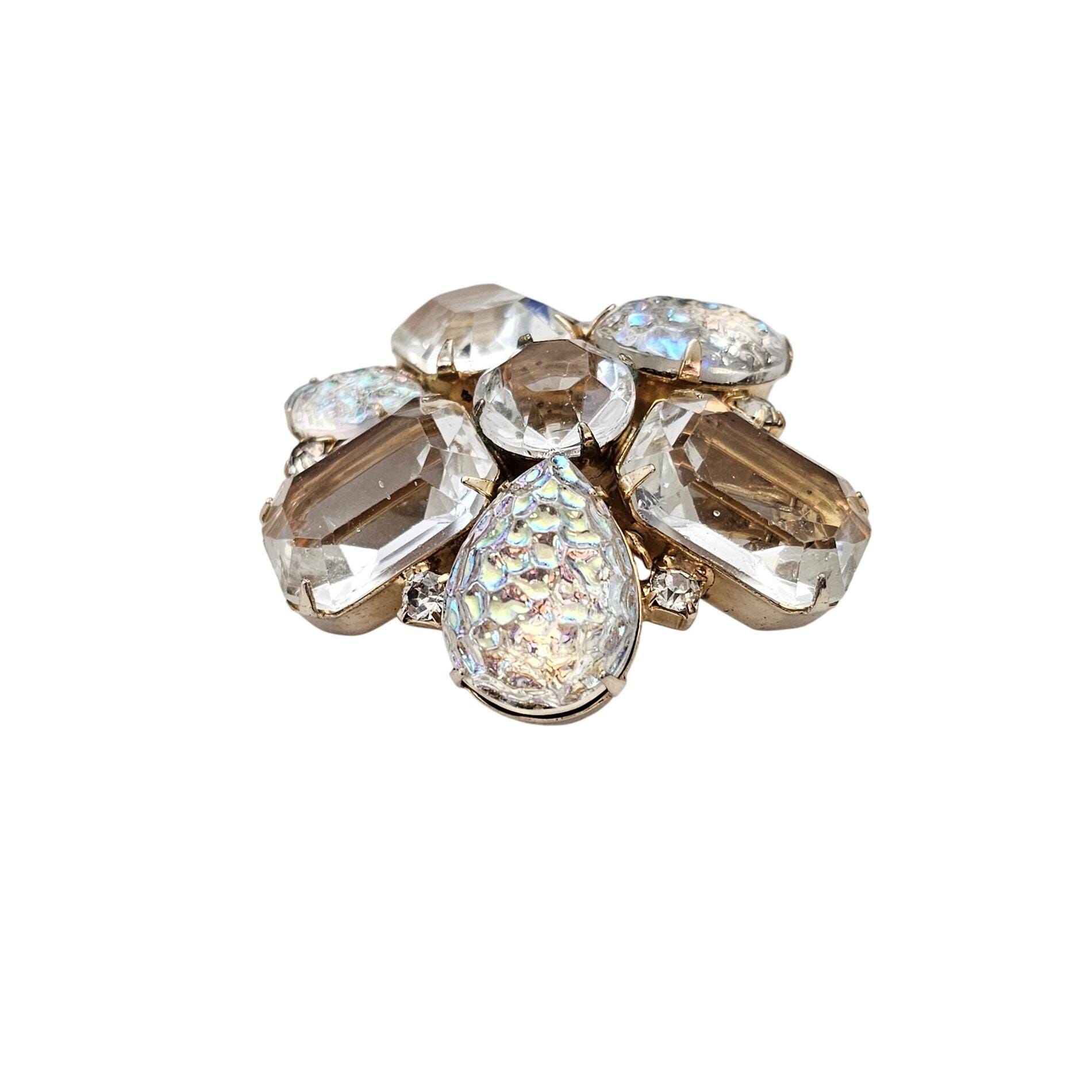Clear Open Back Emerald Cut Rhinestone Cluster Brooch Lava AB Pin J610