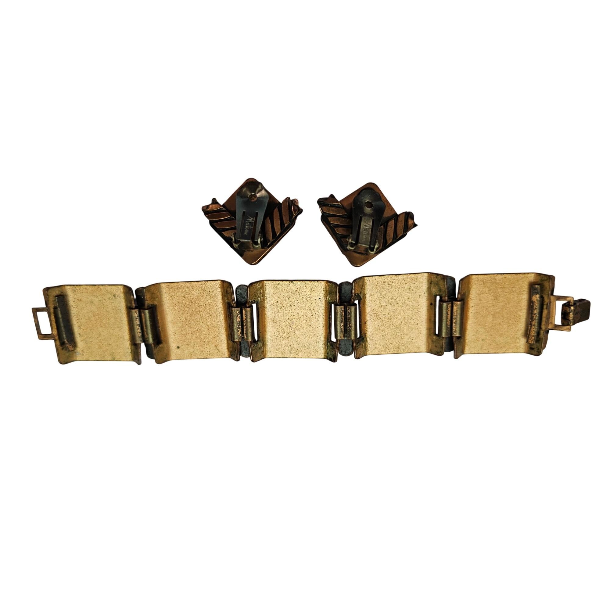• This set includes a panel link bracelet and clip-on earrings