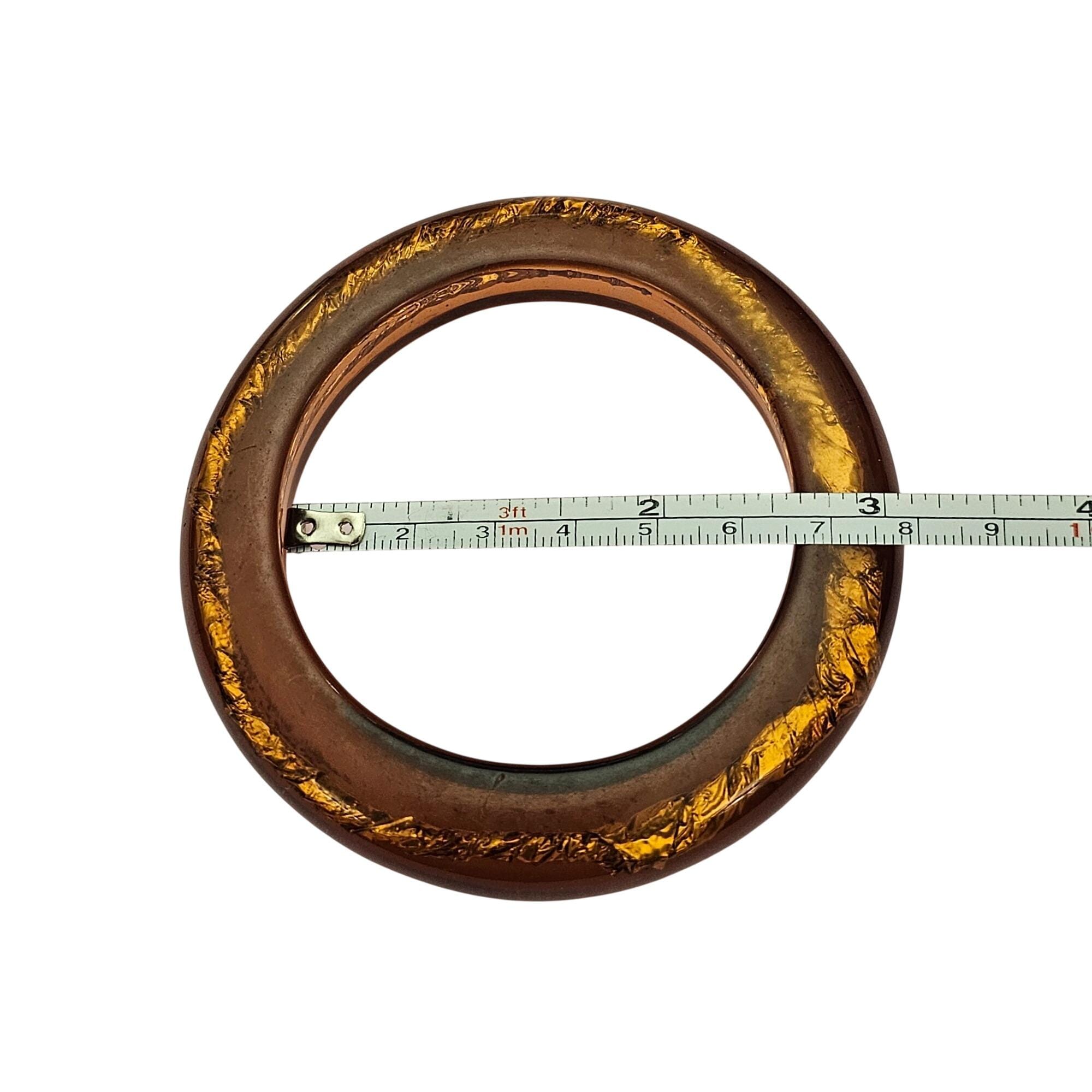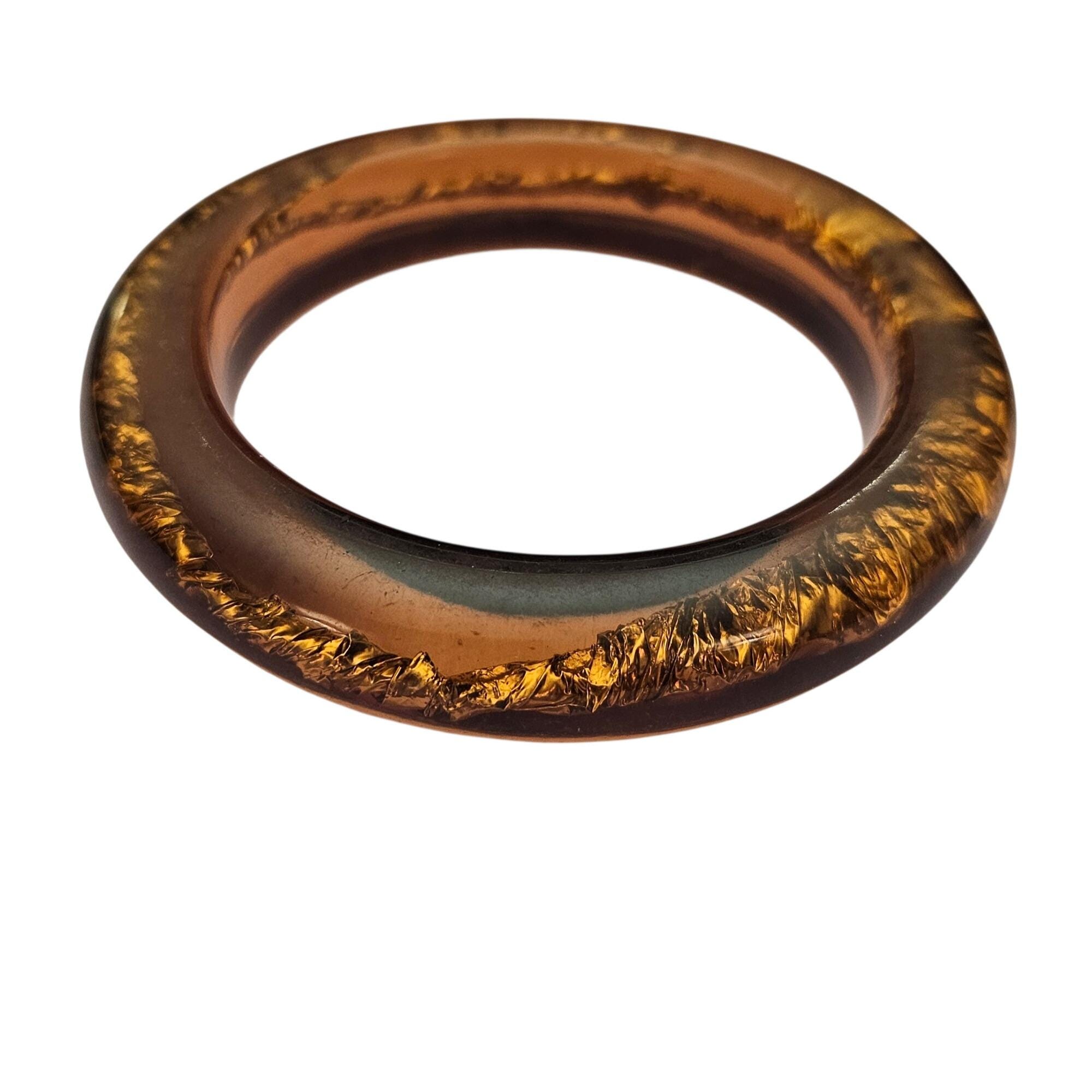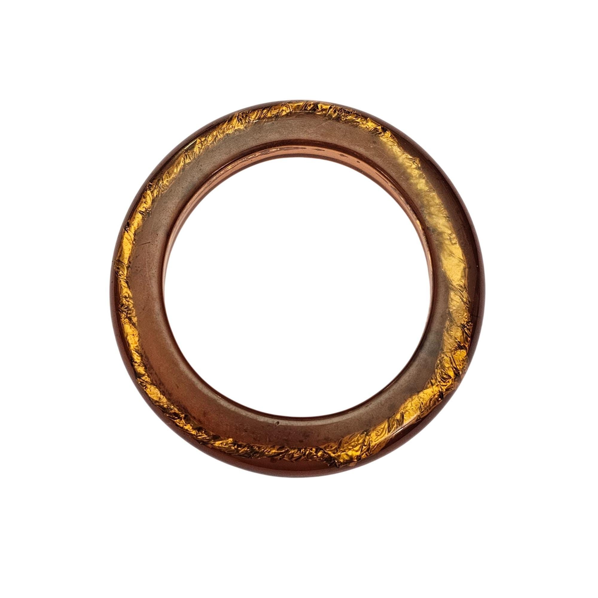 Topaz Lucite Bracelet Semi-Translucent Gold Foil Center Bangle J619