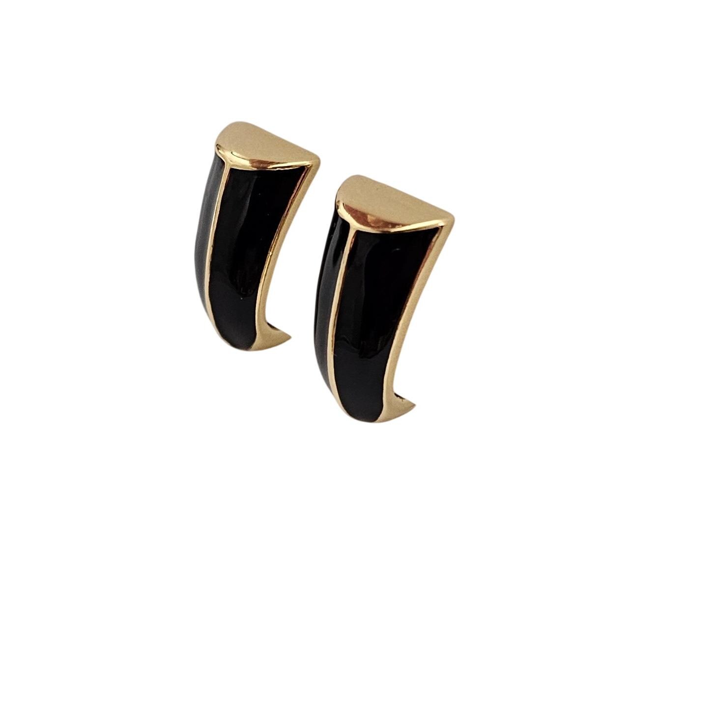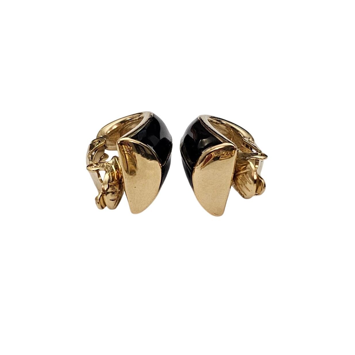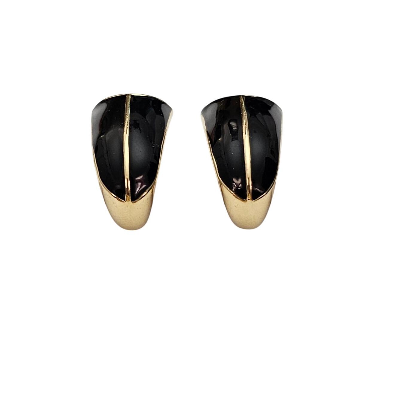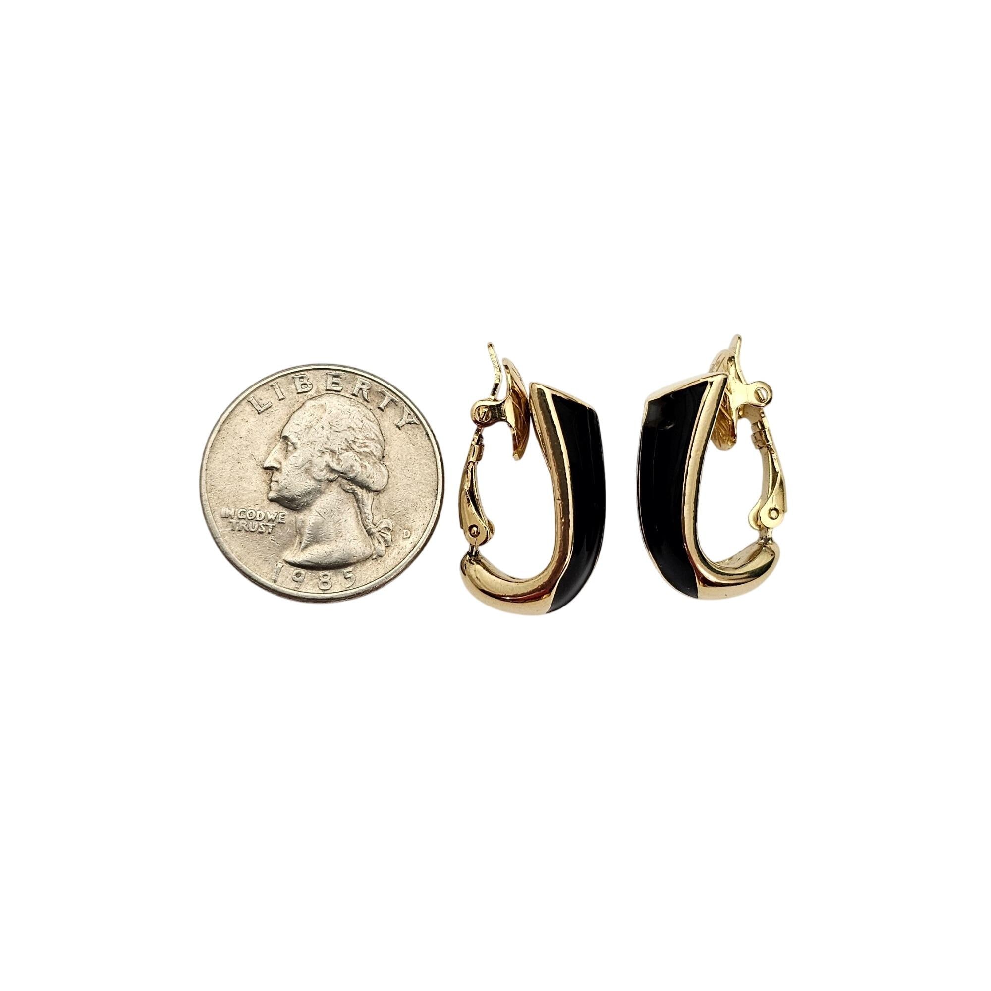 Trifari Black Enamel Gold Tone Clip On Earrings Signed, J640