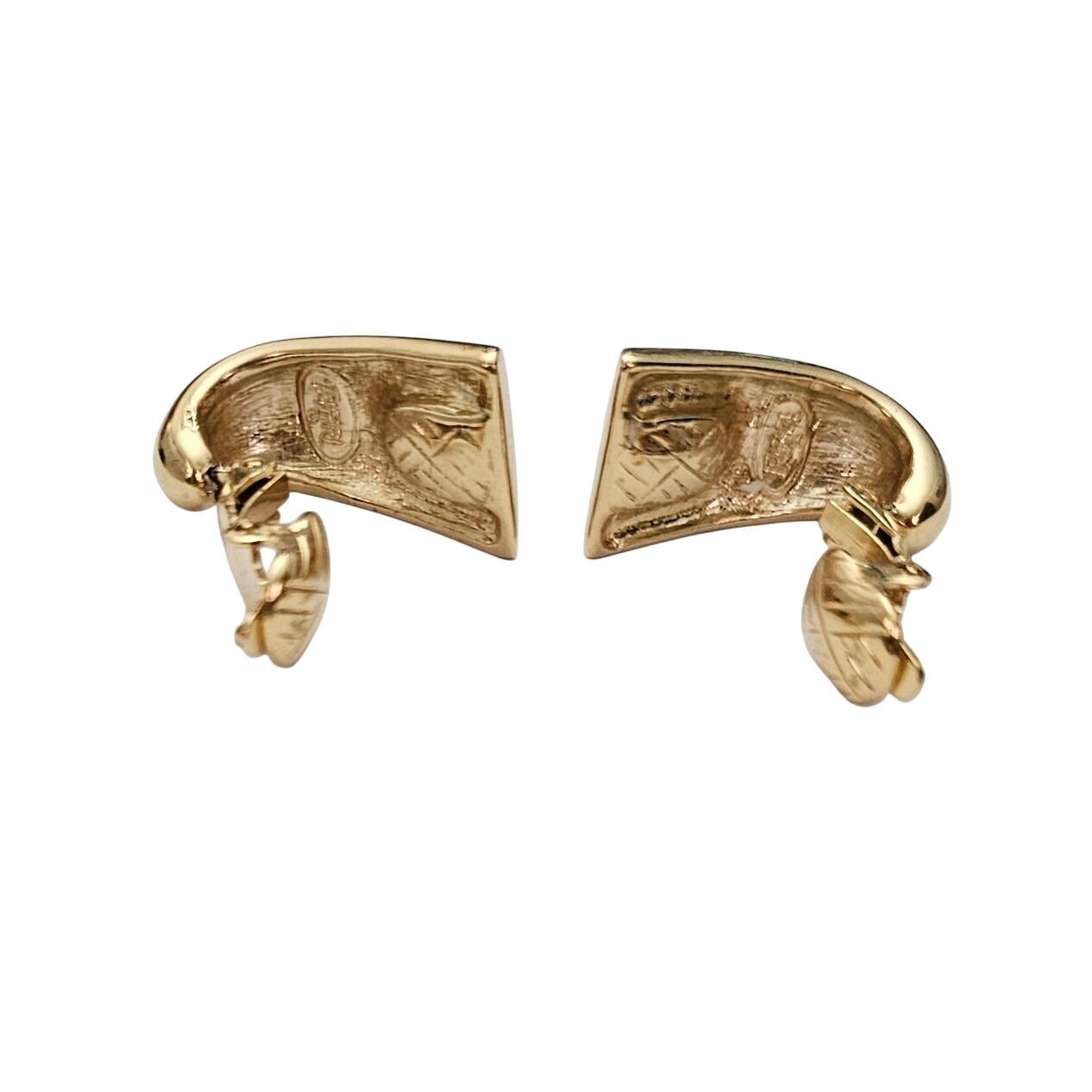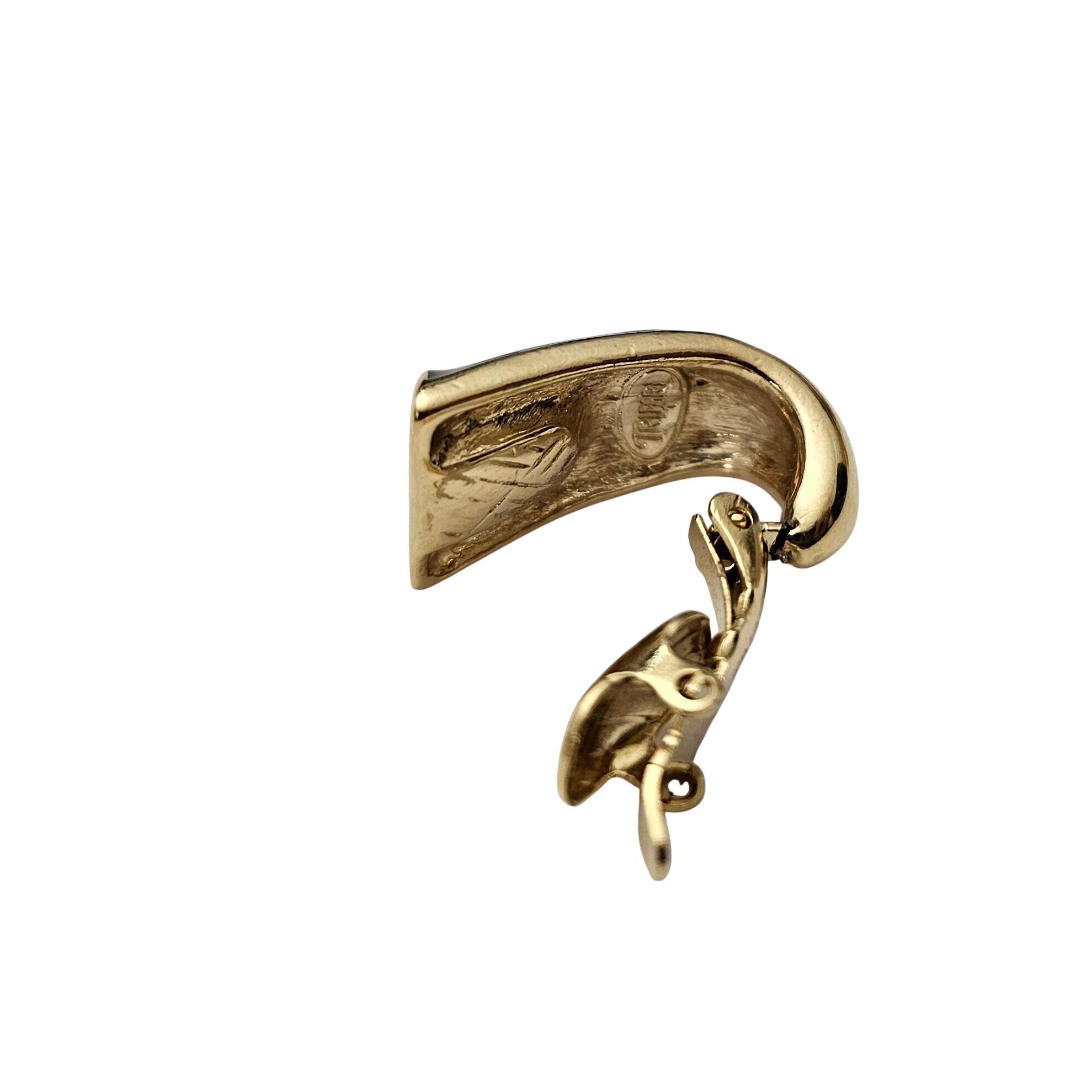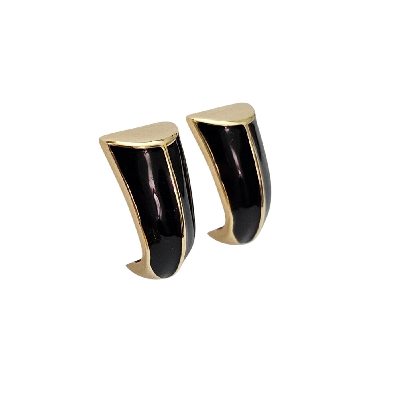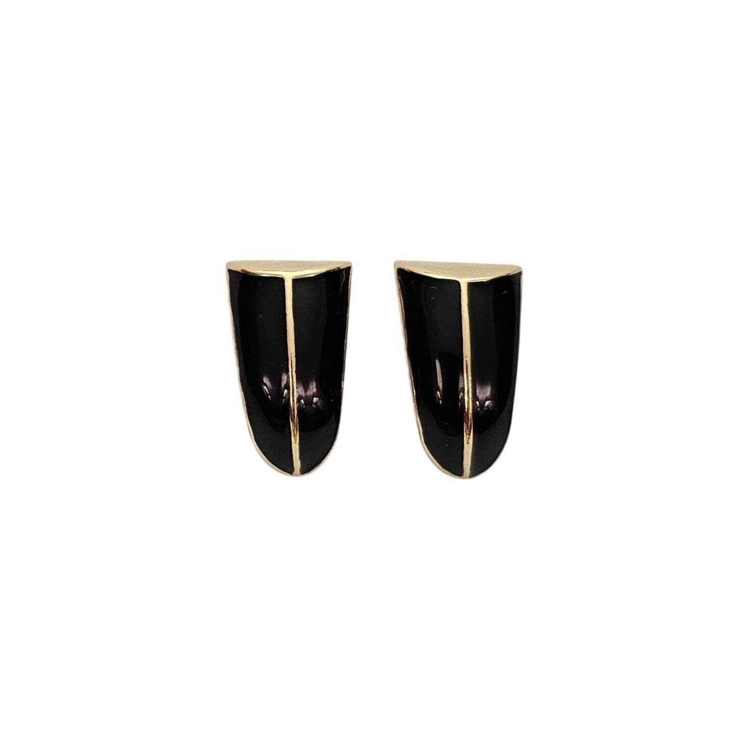 Trifari Black Enamel Gold Tone Clip On Earrings Signed, J640