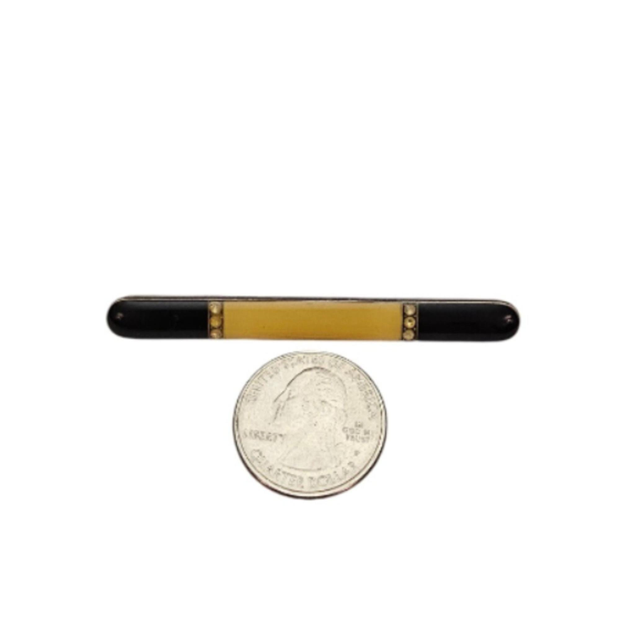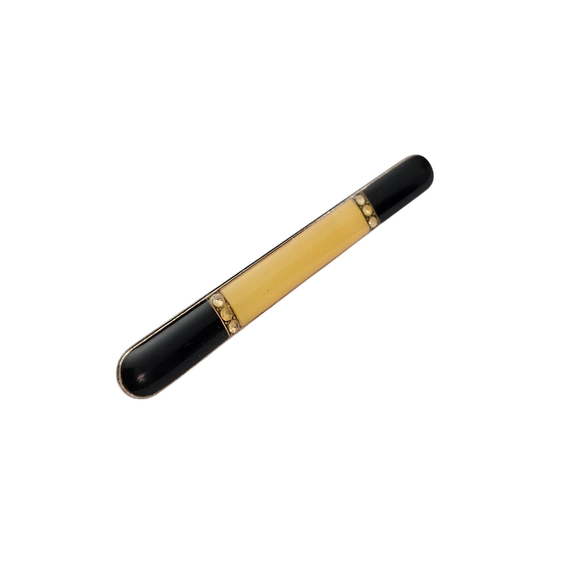 Catherine Popesco Black, Butter Yellow Enamel Bar Brooch Trombone Clasp Rhinestone Pin J664