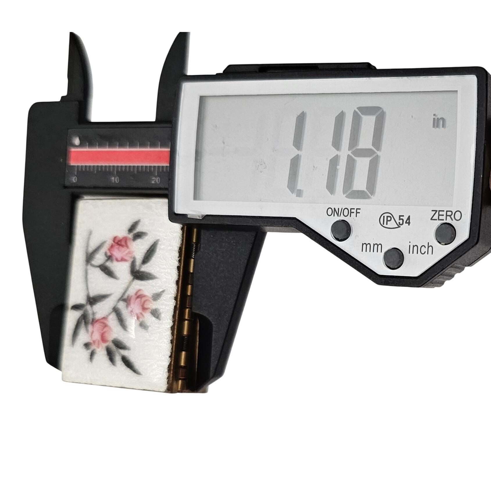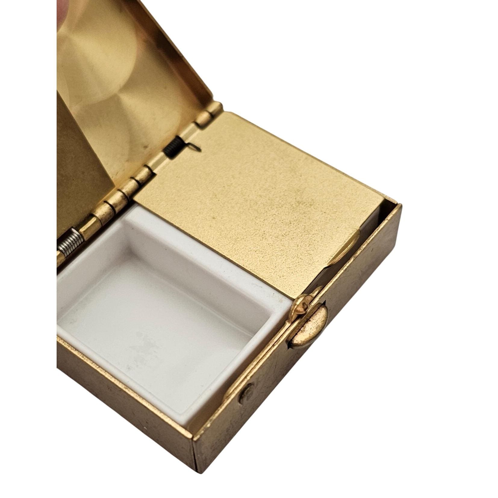 • This lovely pill box measures approximately 1.6 inches in length, 1.2 inches in width, and 0.6 inches in height