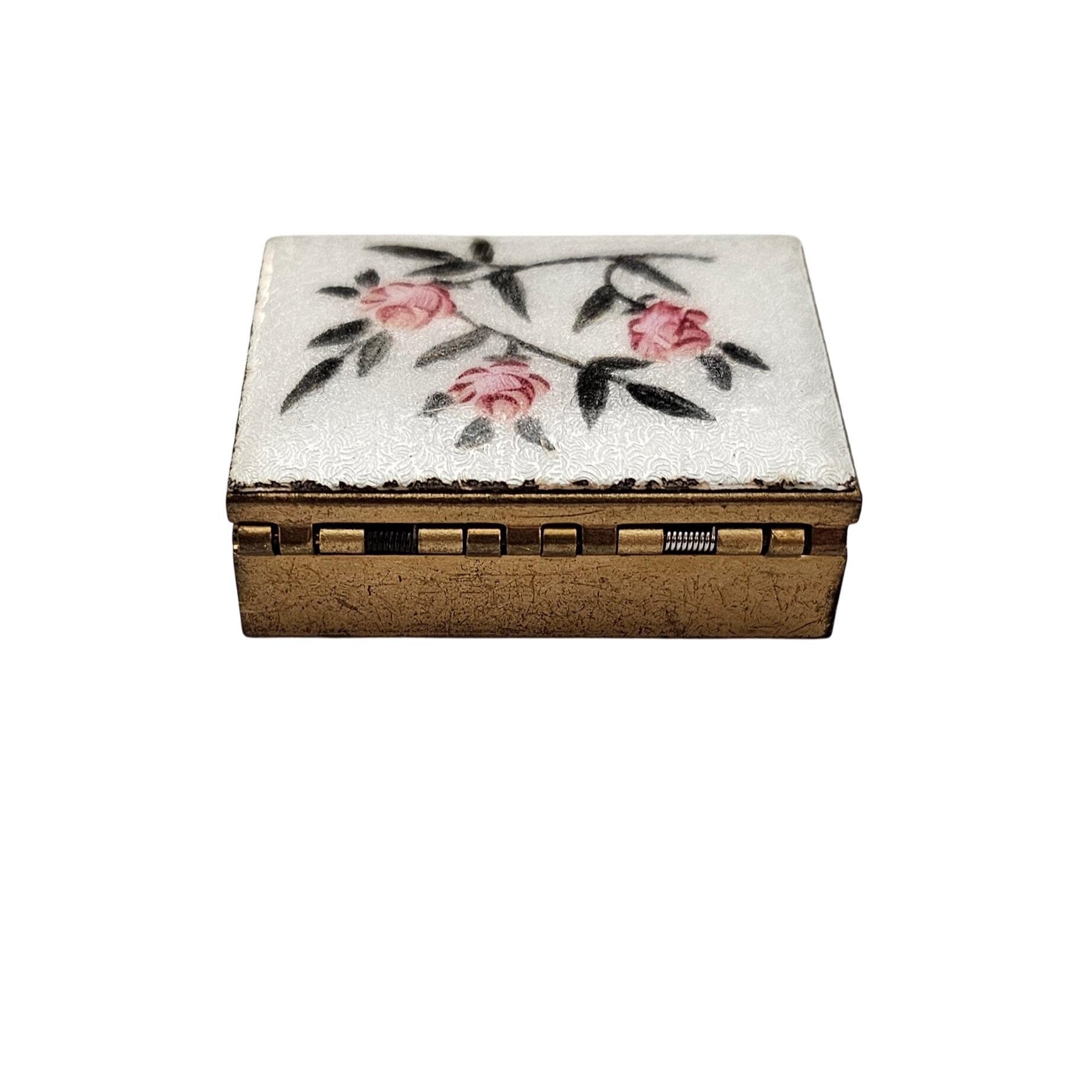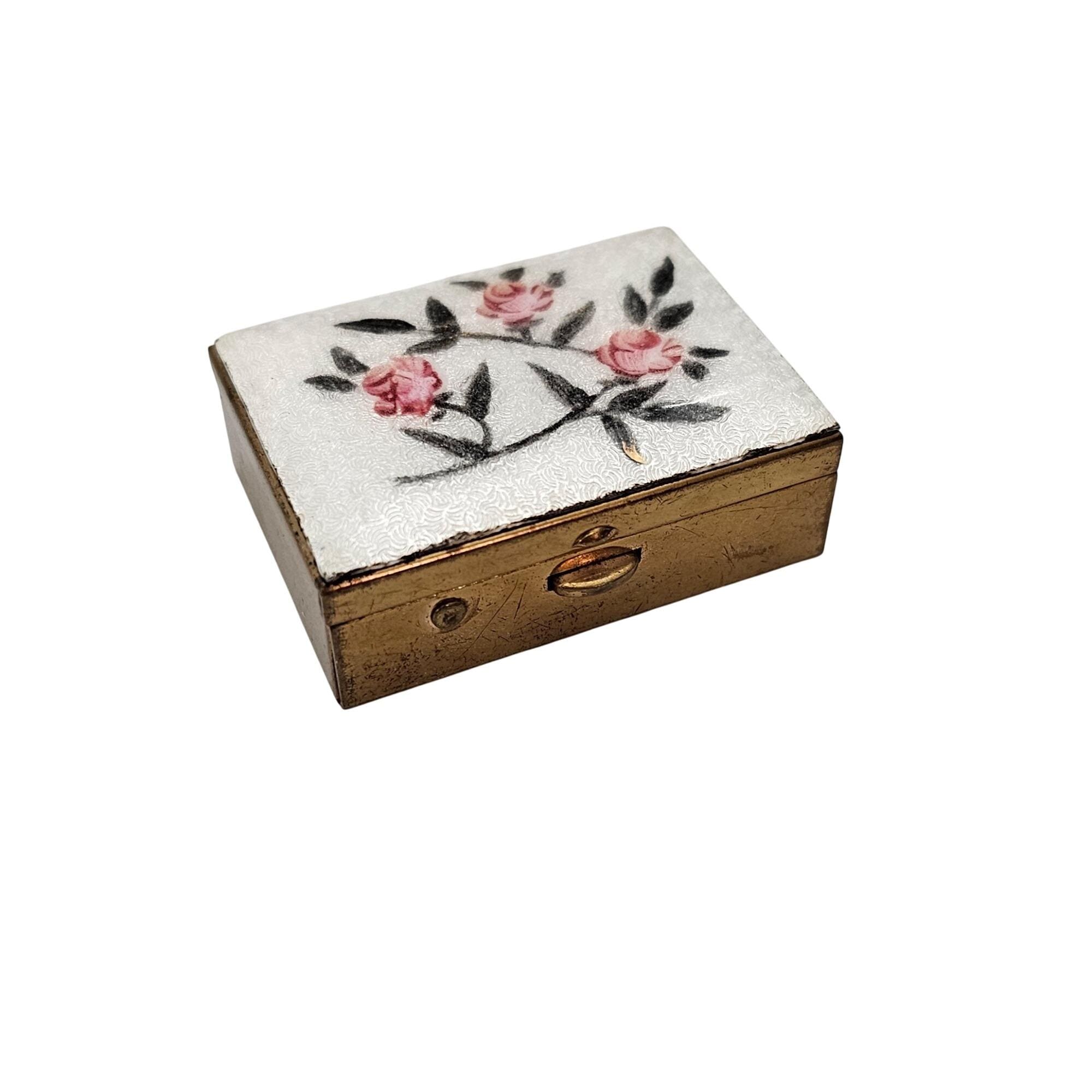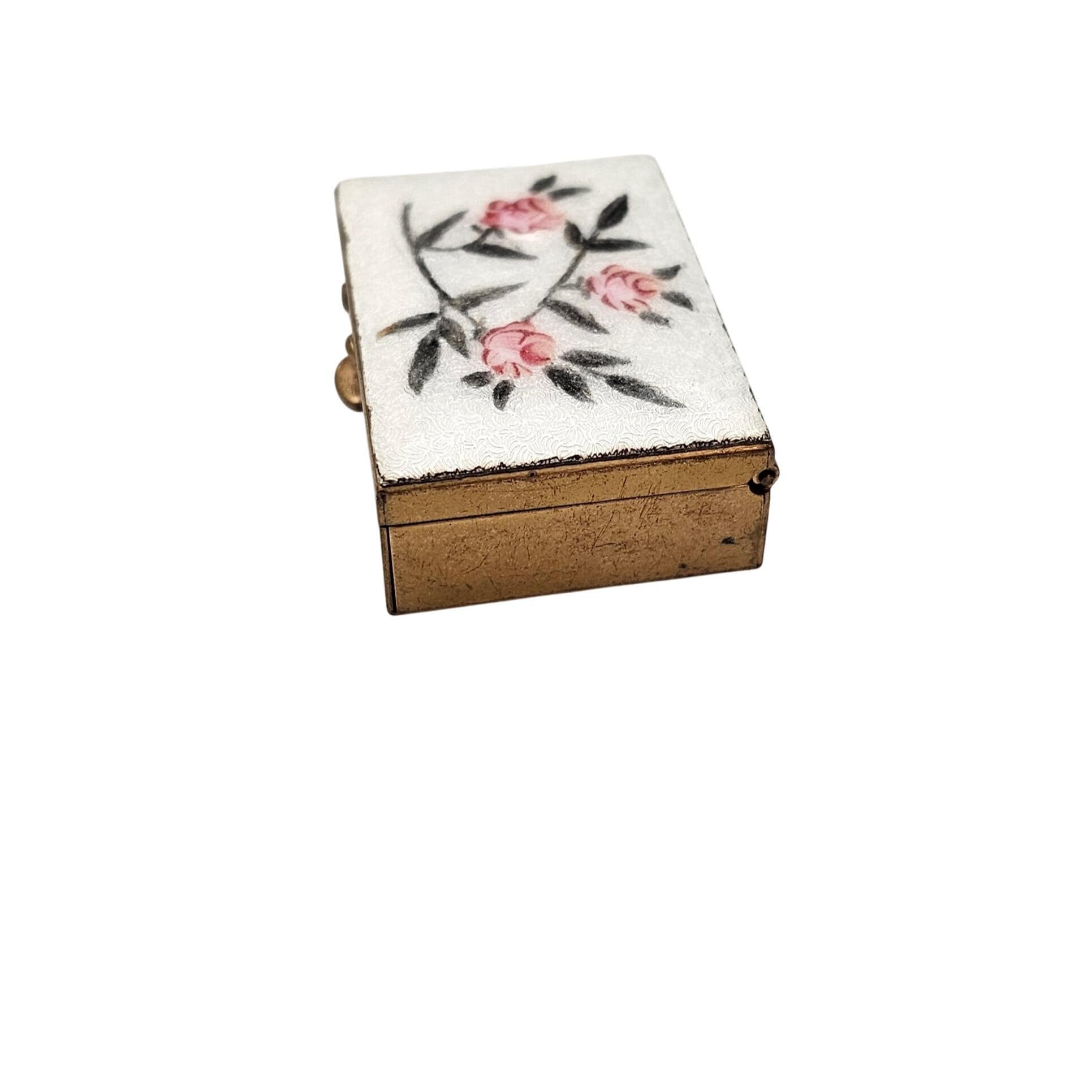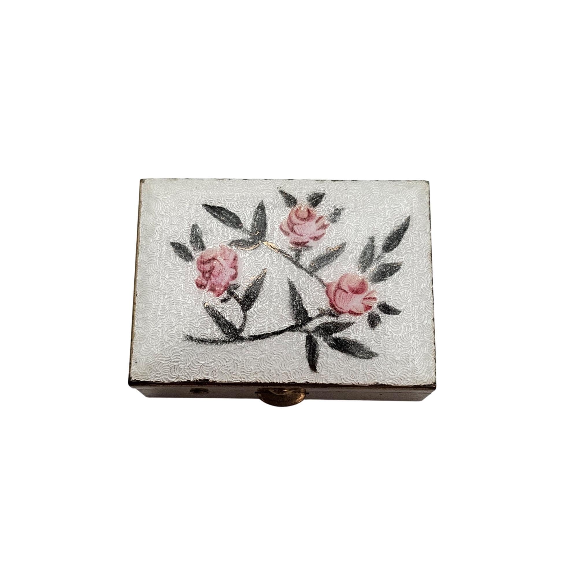 Guilloche Rose Enamel Pill Trinket Box Two Compartments J660