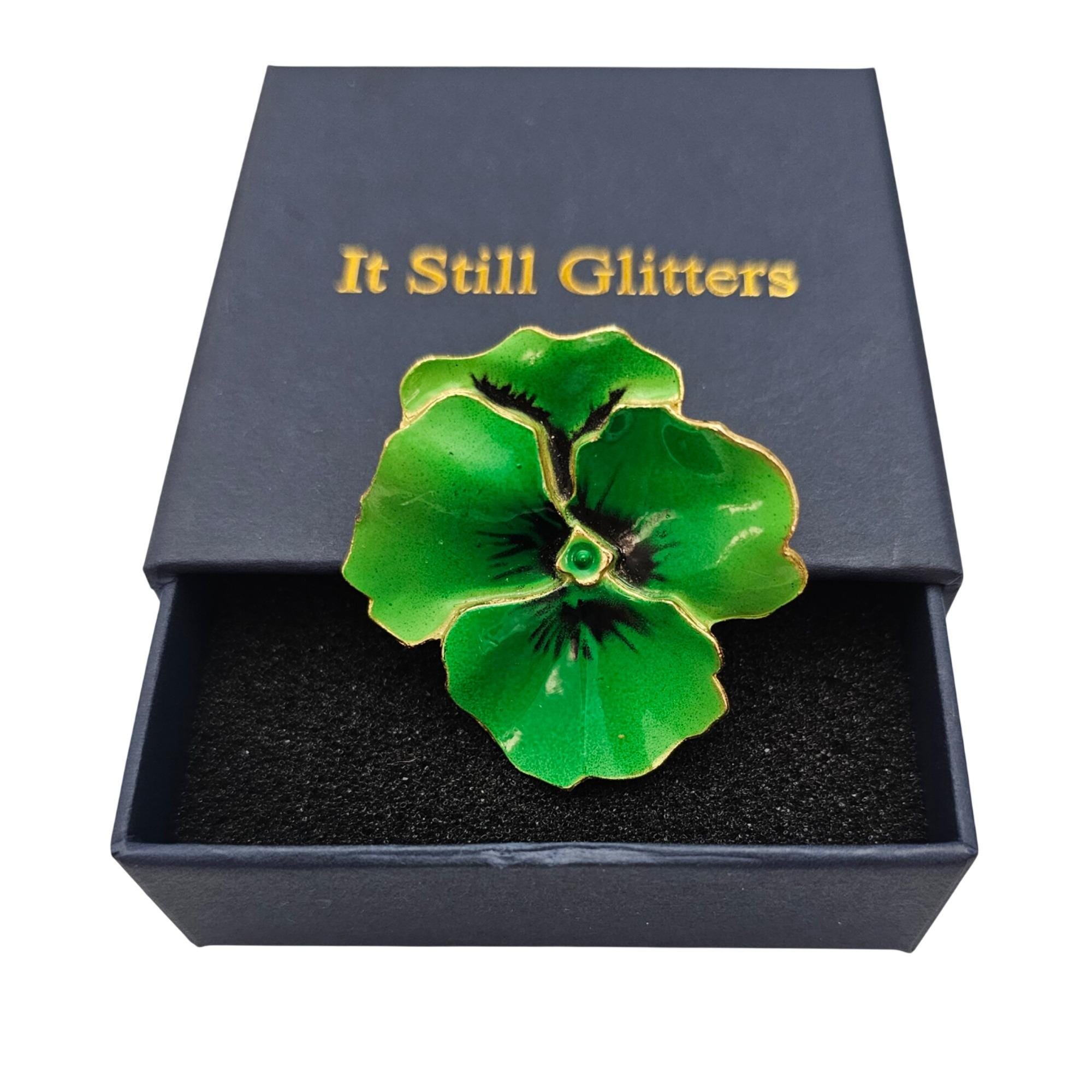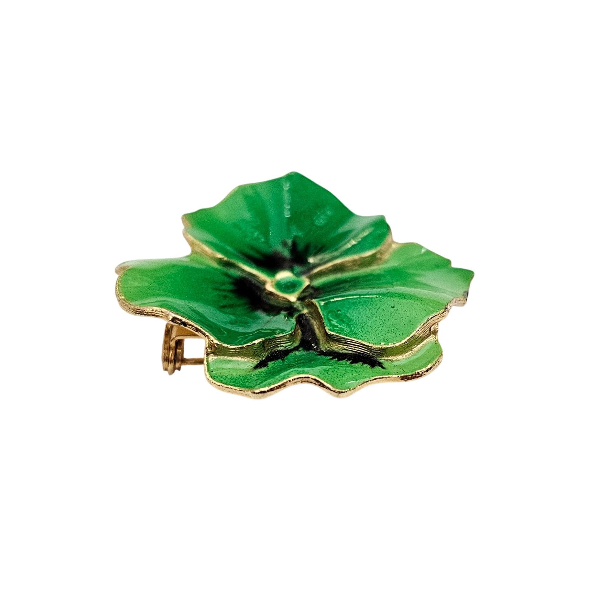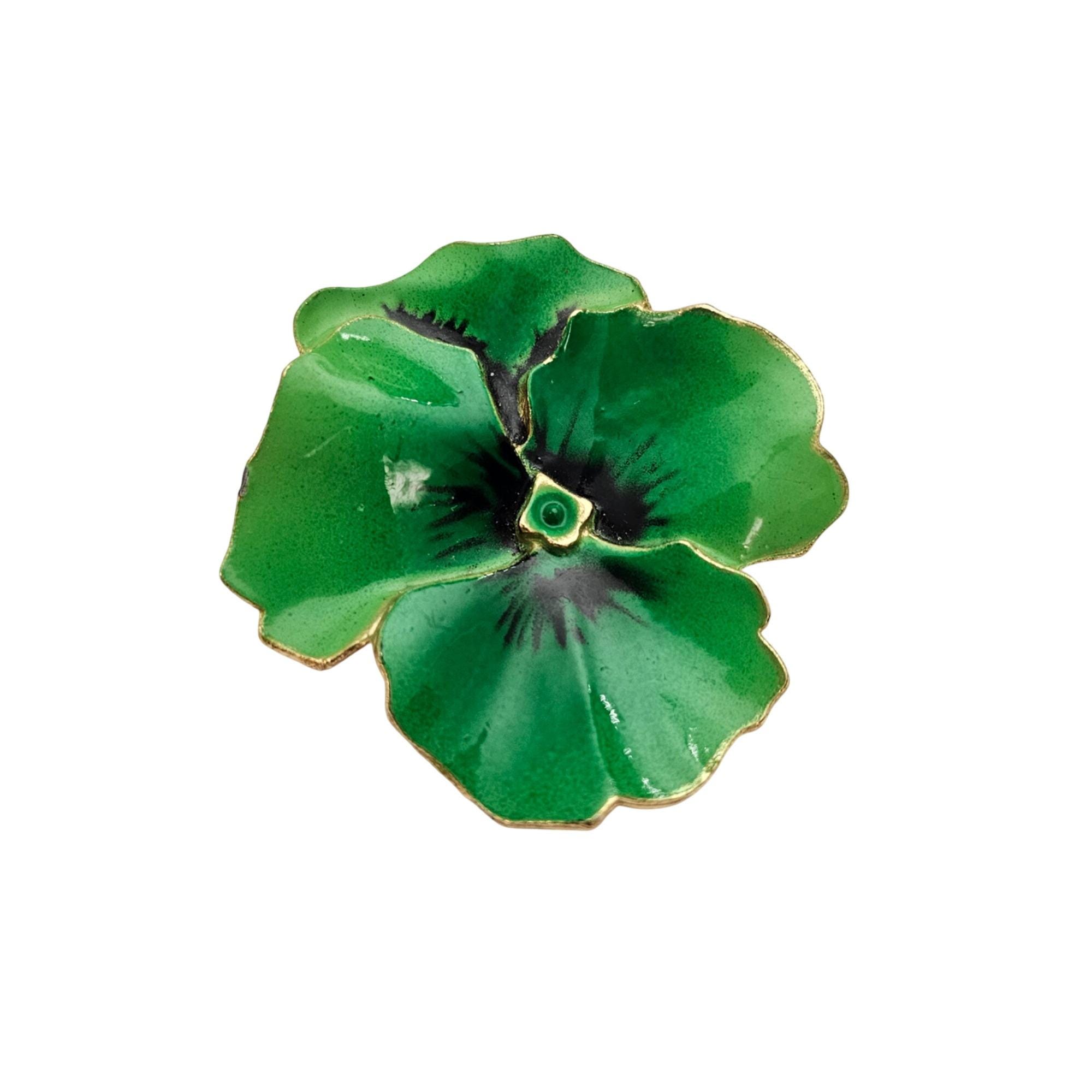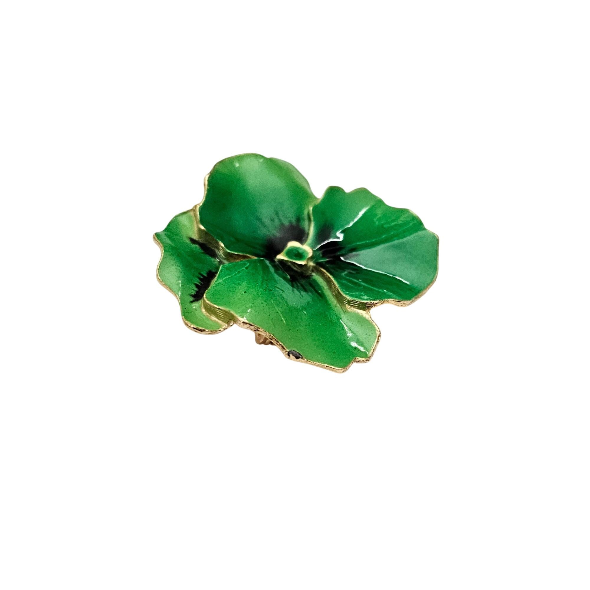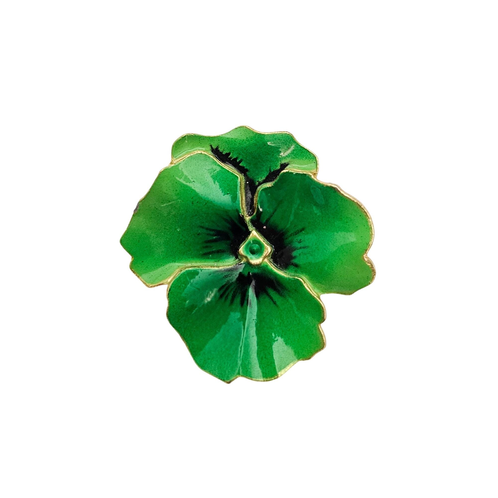 Kelly Green Pansy Brooch Enamel Flower Pin J661