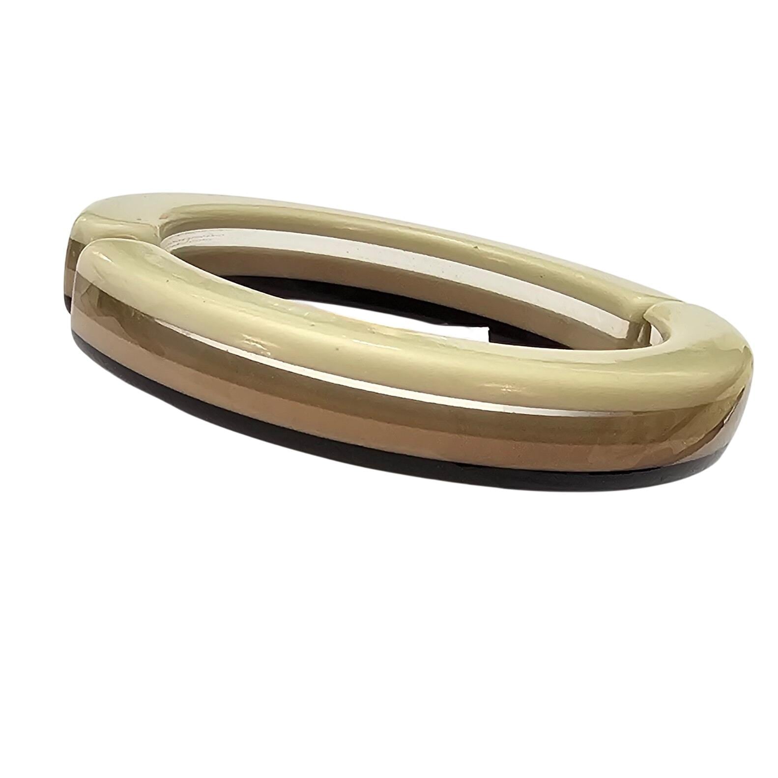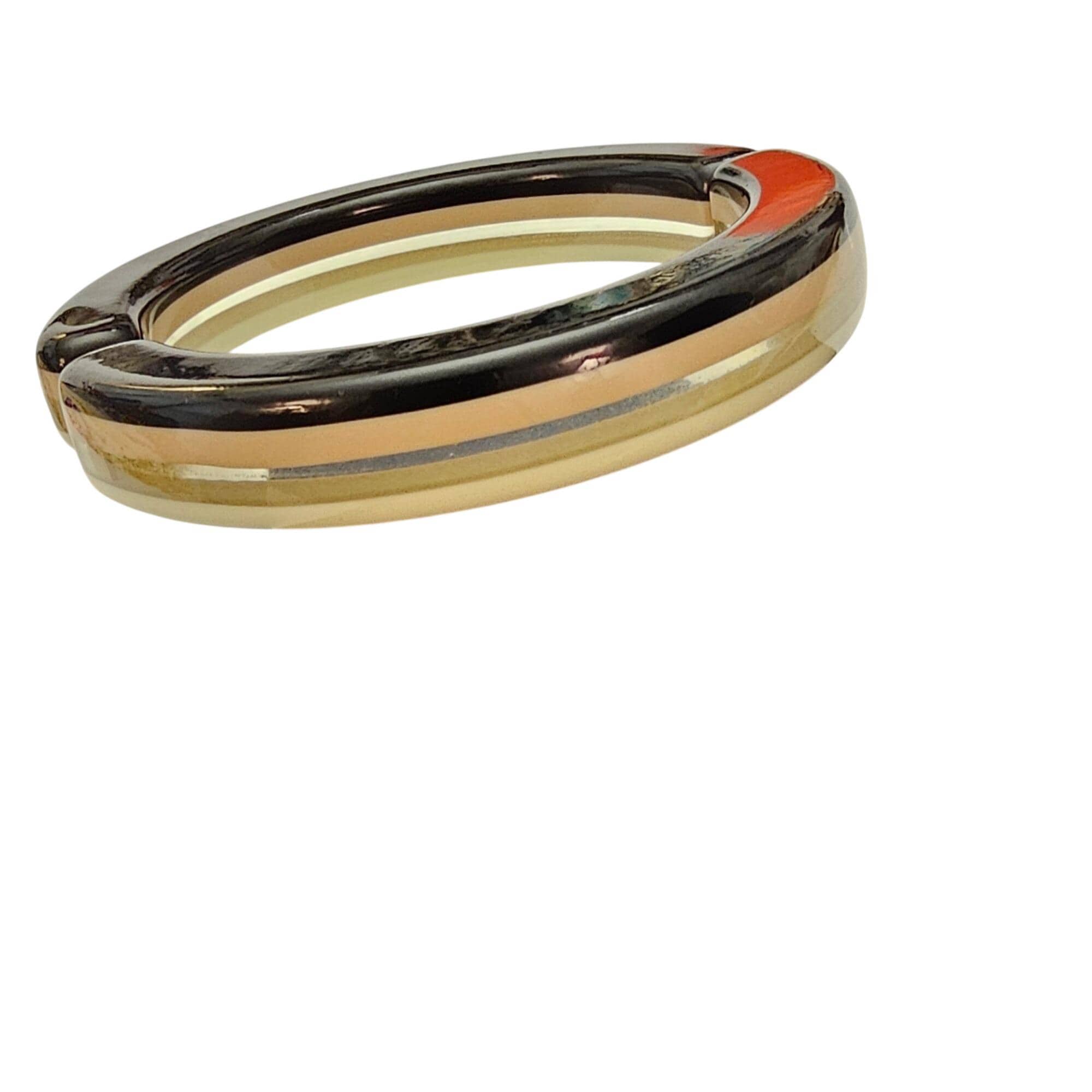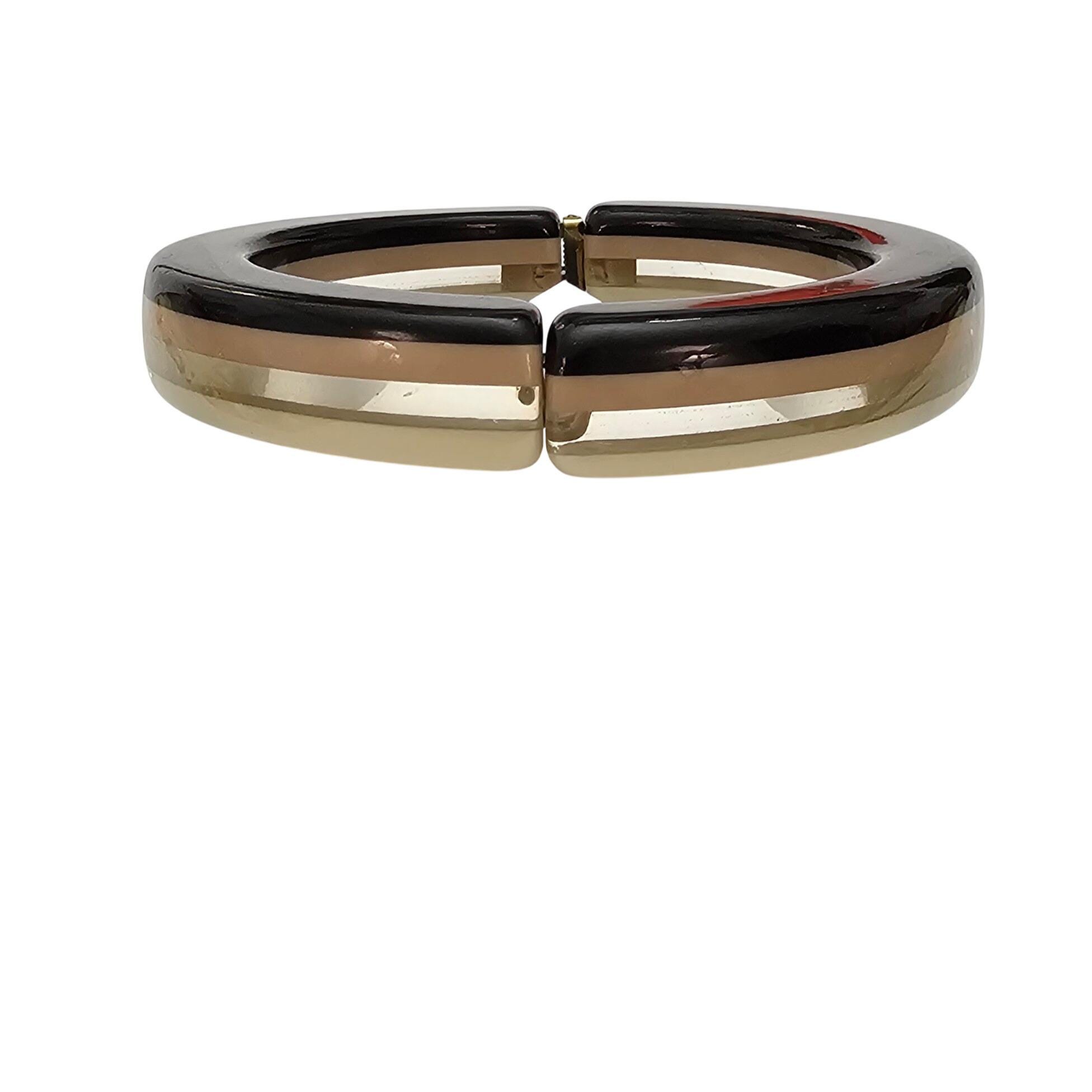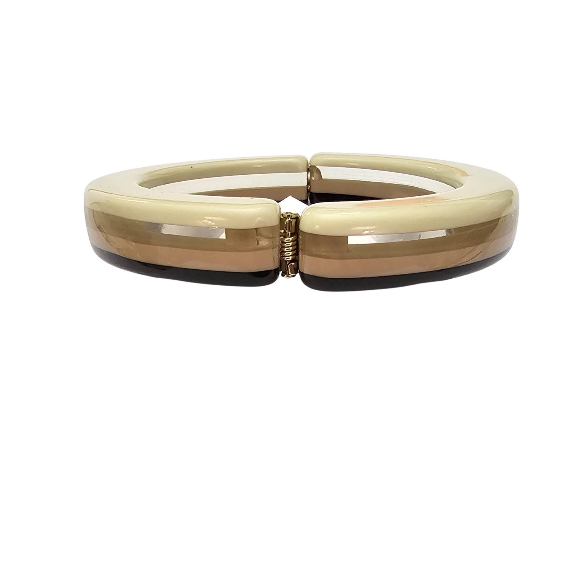 Neapolitan Style Hinged Bangle Cream, Nude Clear Striped Lucite Bracelet J690