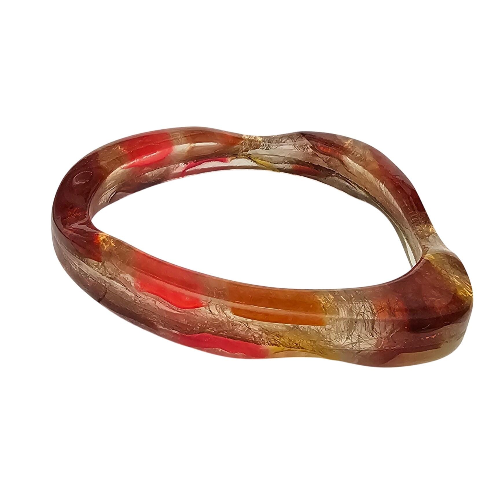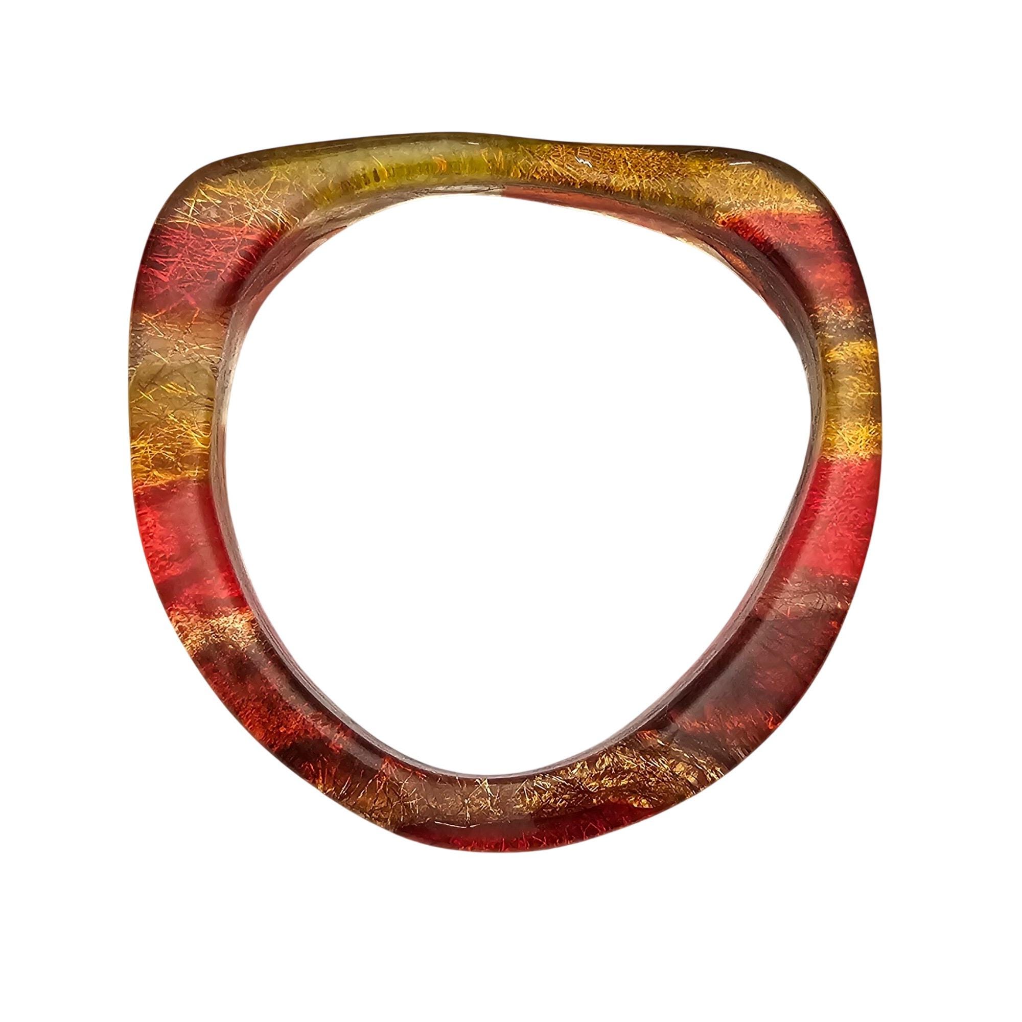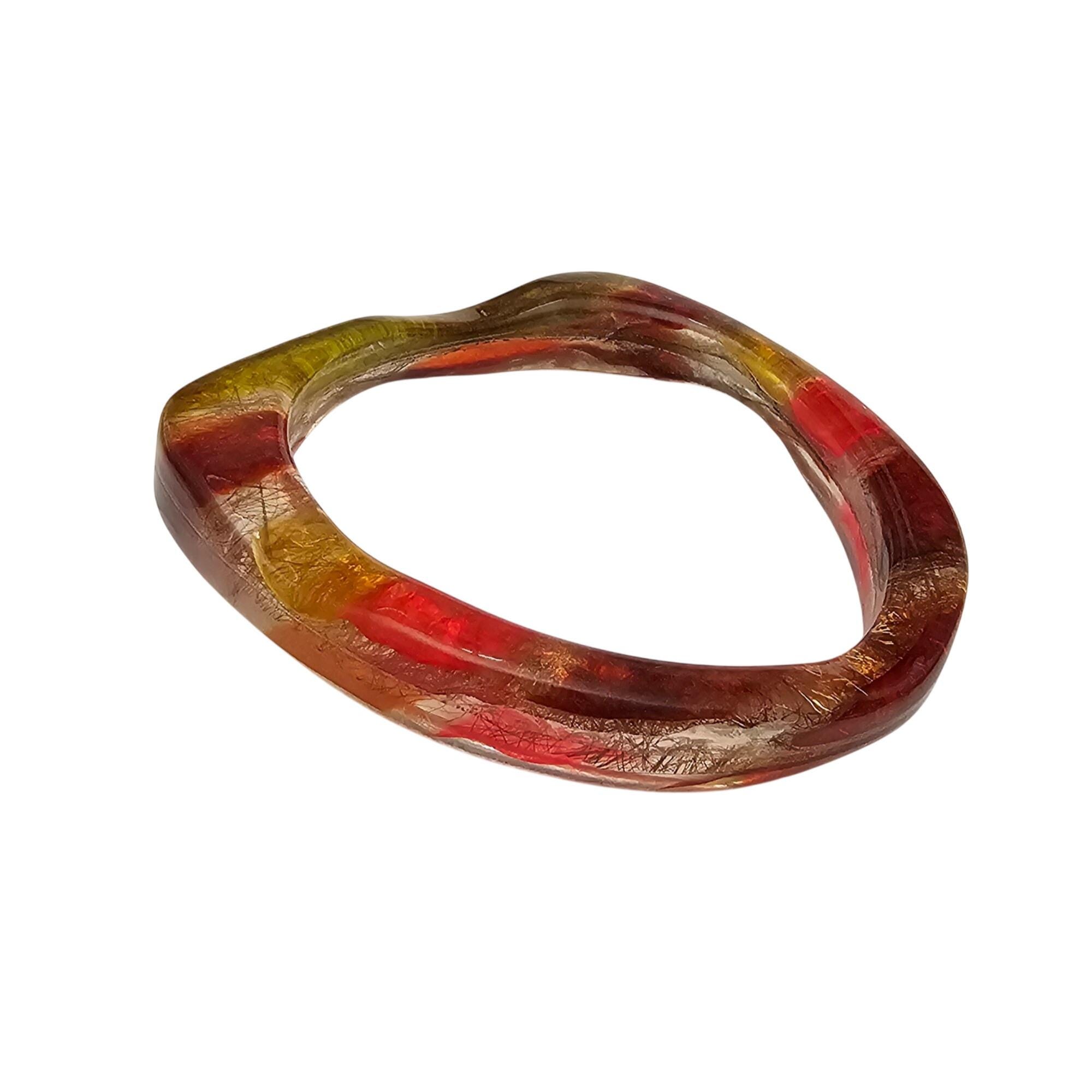 • Orange Yellow Red Confetti Wine Lucite Bangle Bracelet