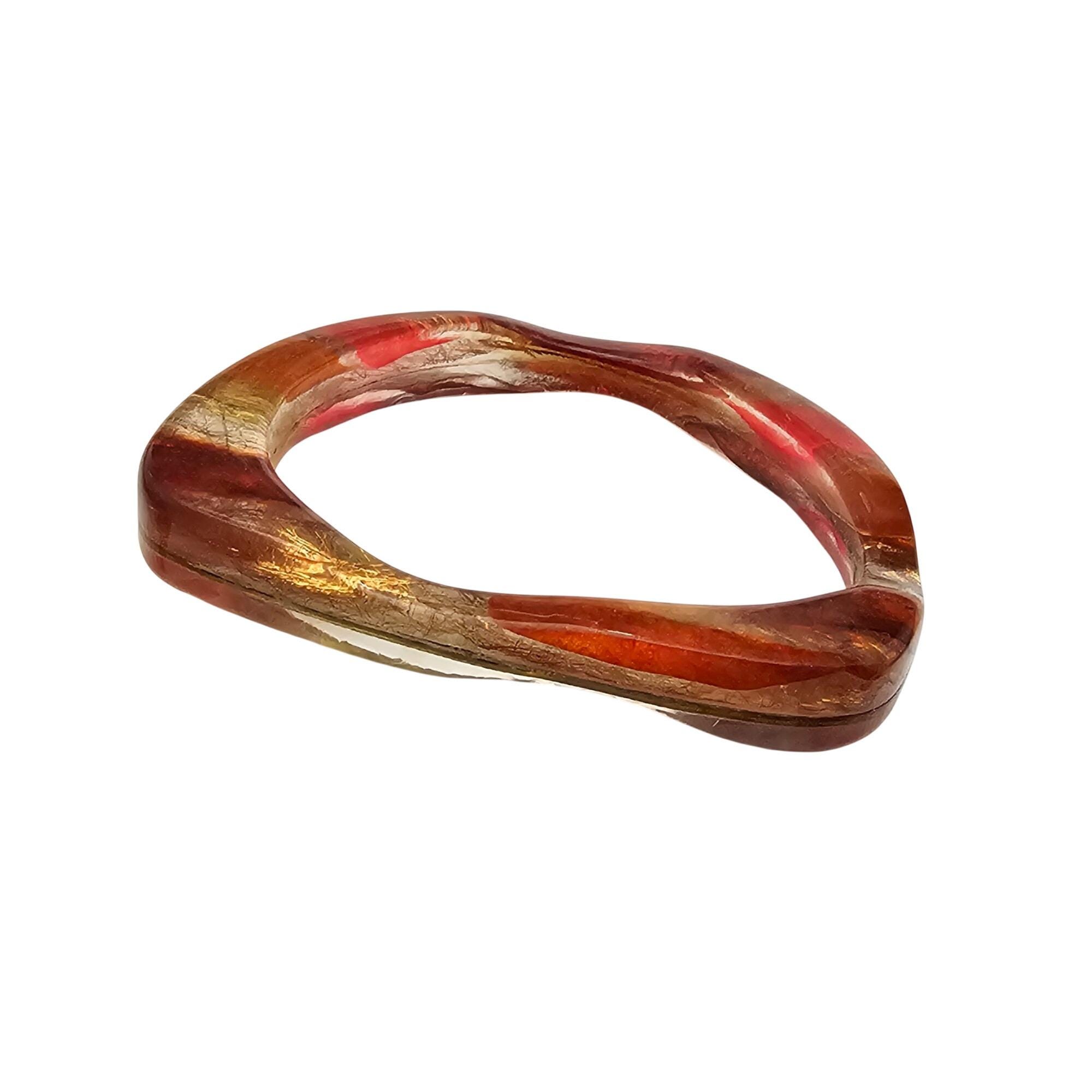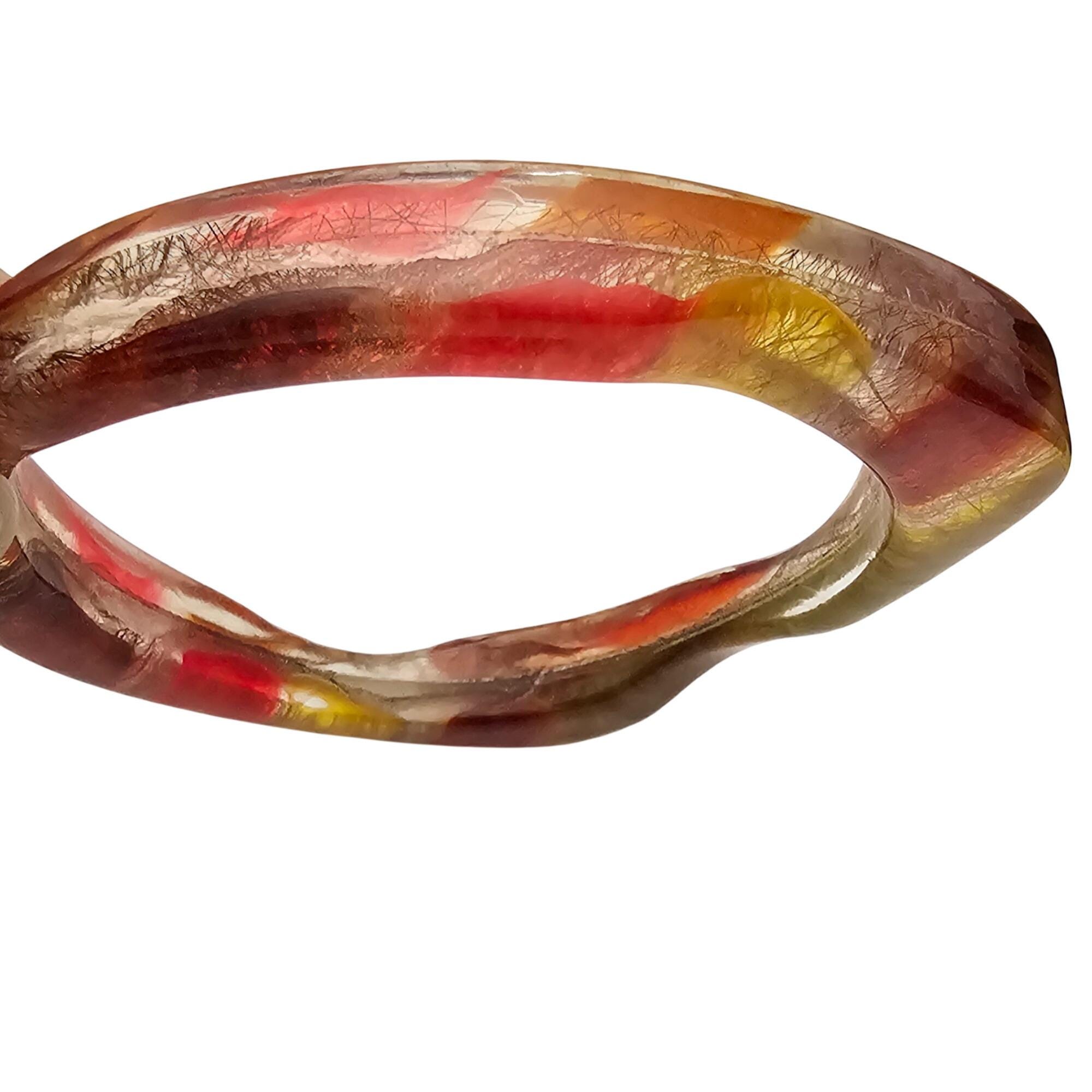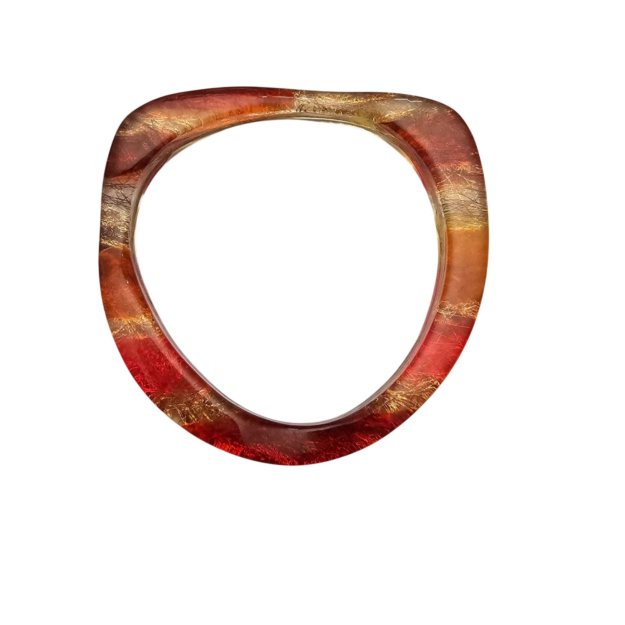 • Orange Yellow Red Confetti Wine Lucite Bangle Bracelet