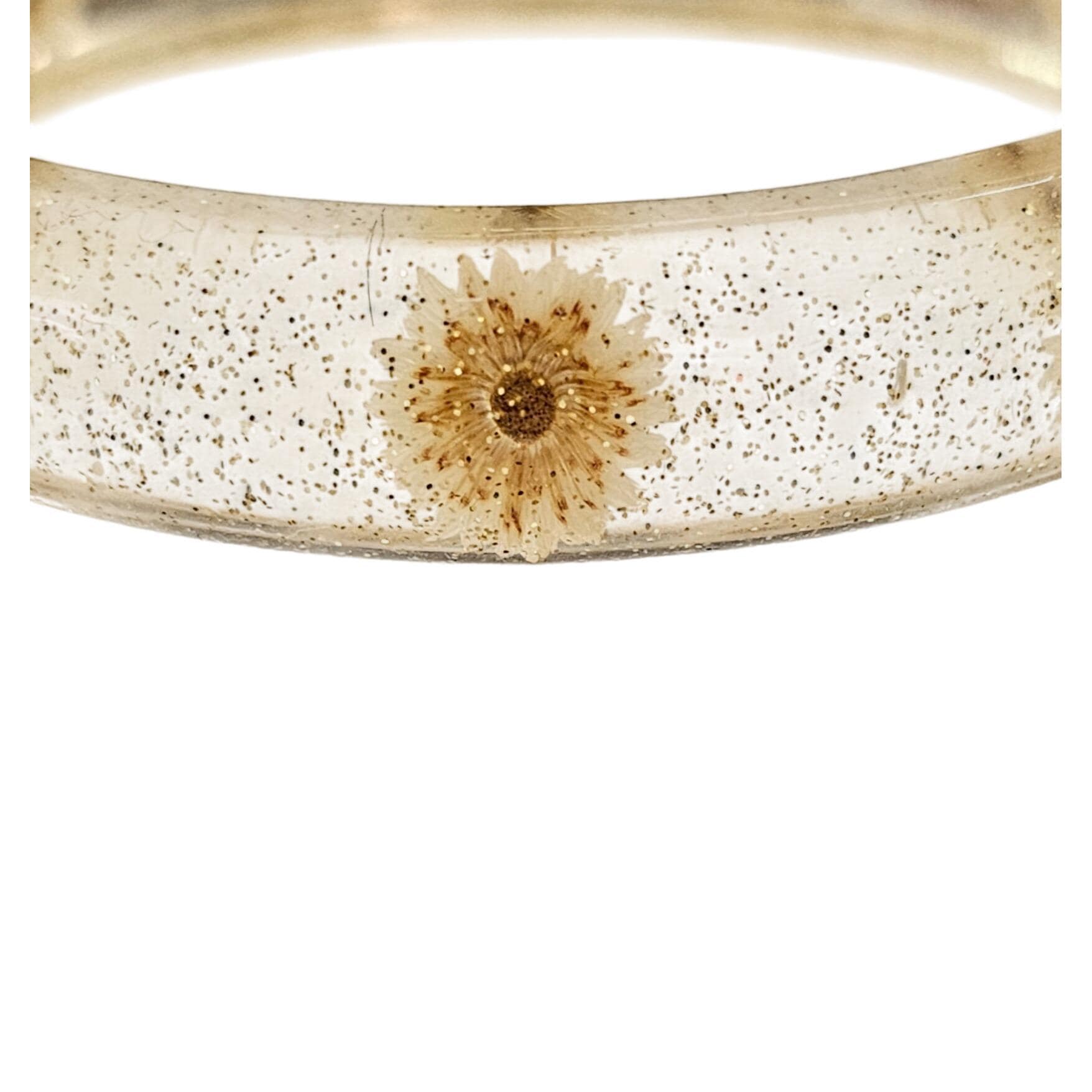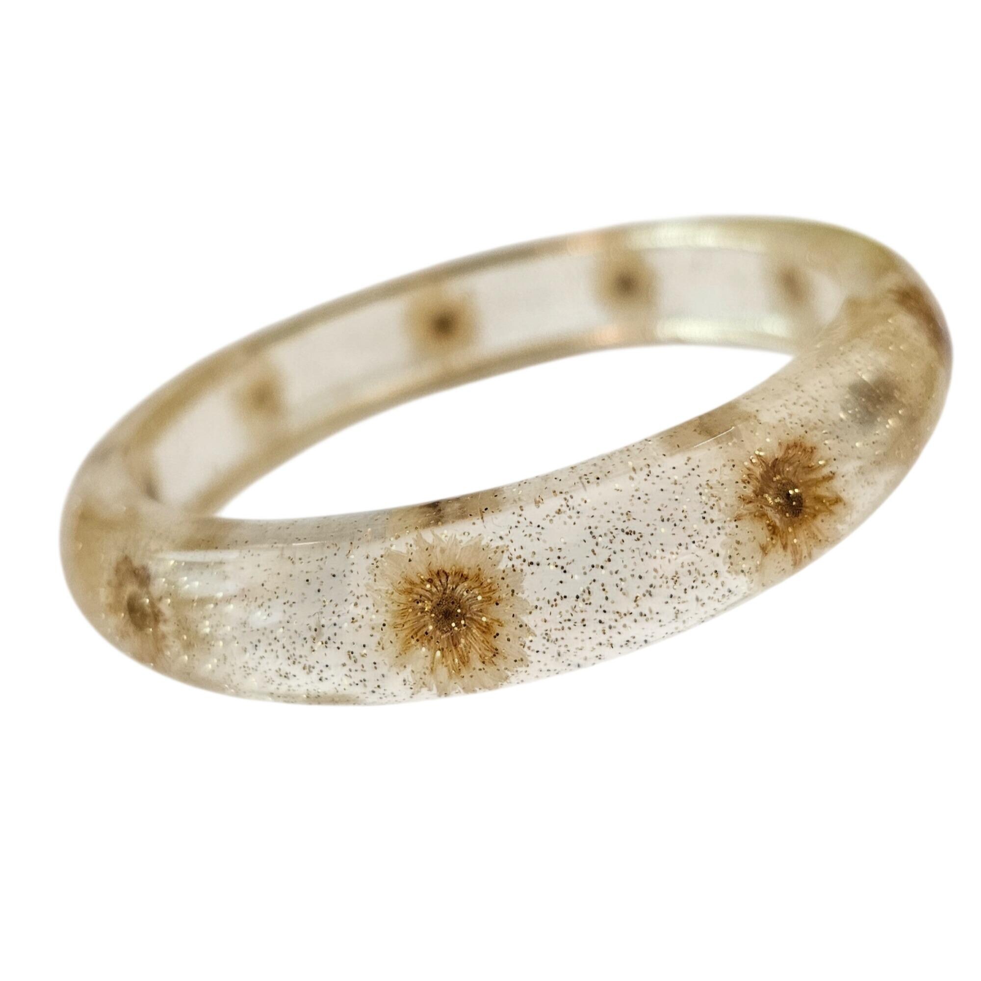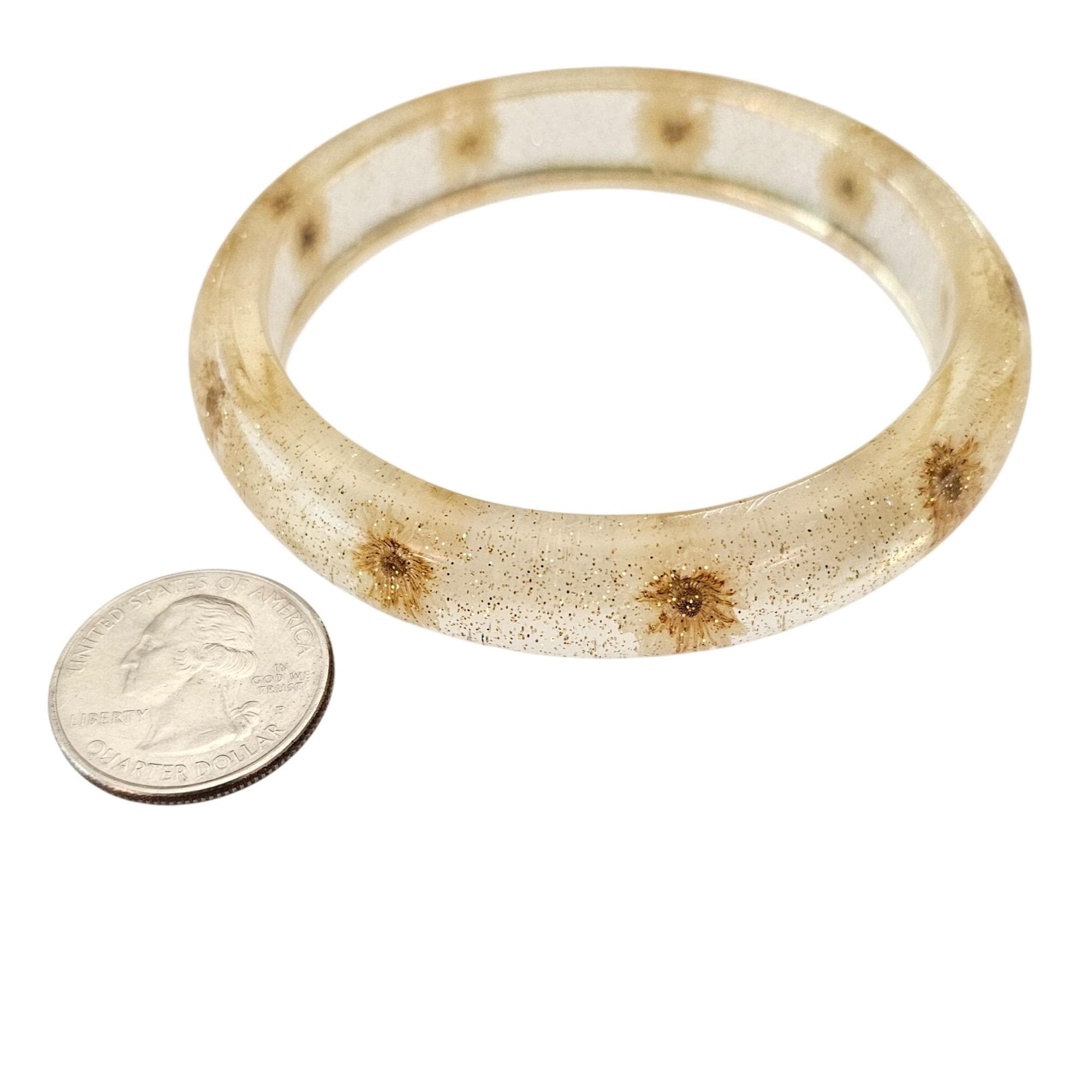 Vintage Clear Glitter Dried Dandelion Lucite Bangle Bracelet J684