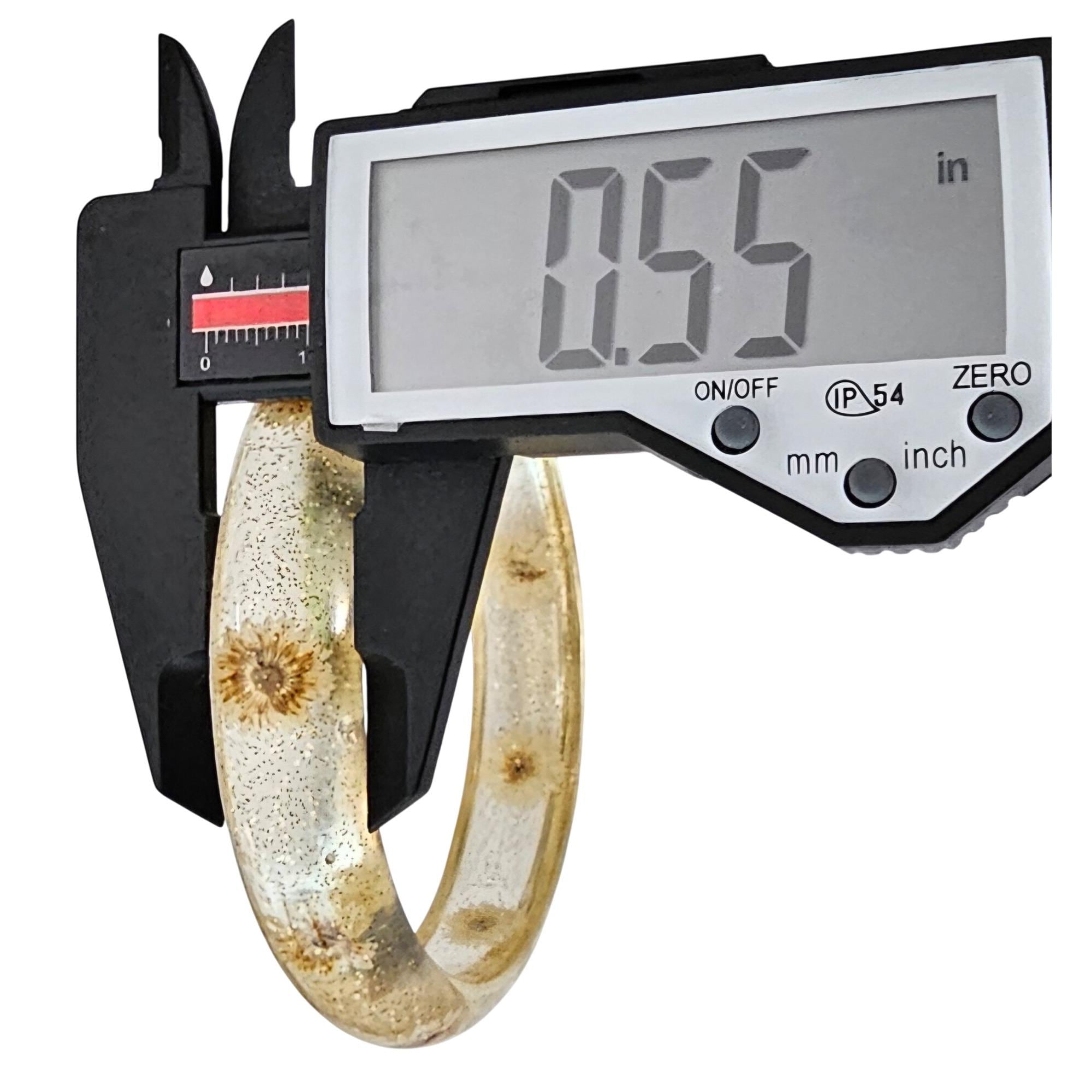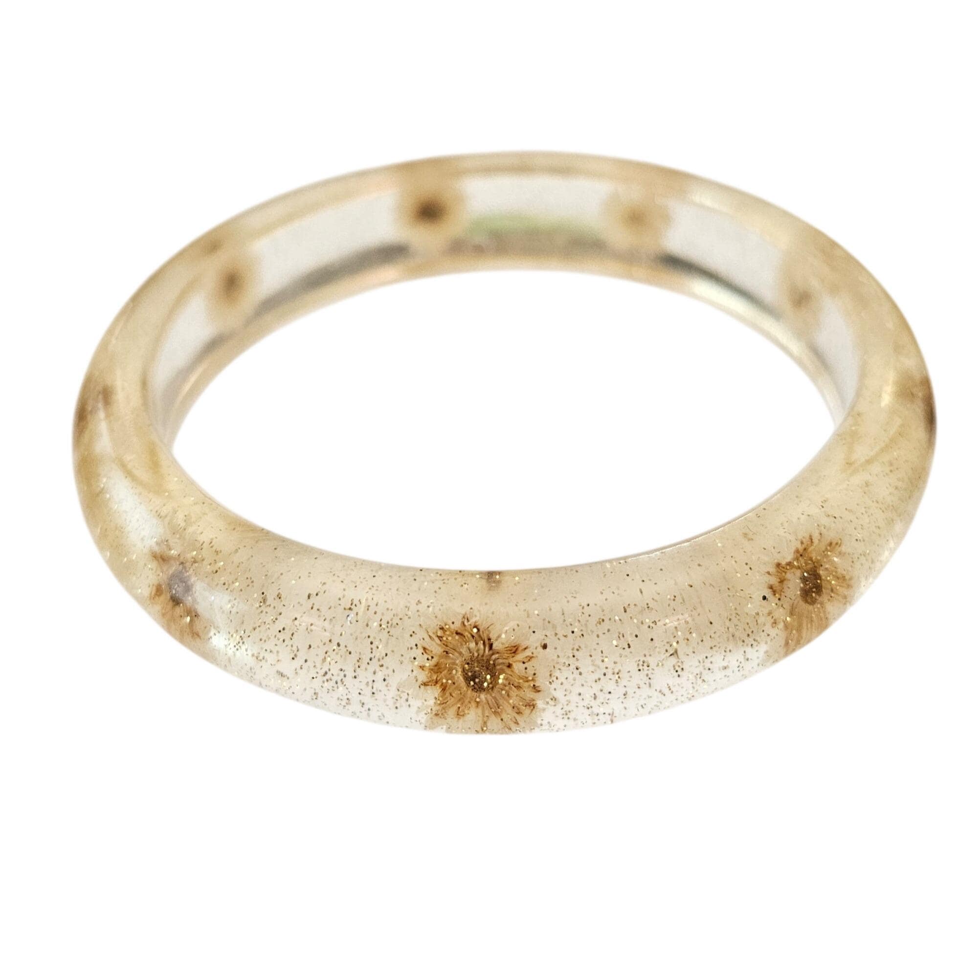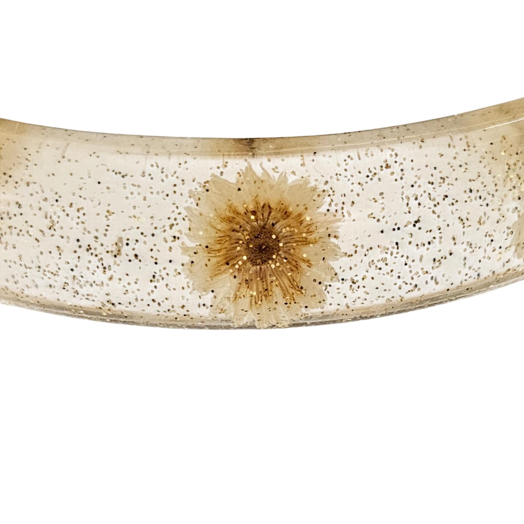 Vintage Clear Glitter Dried Dandelion Lucite Bangle Bracelet J684