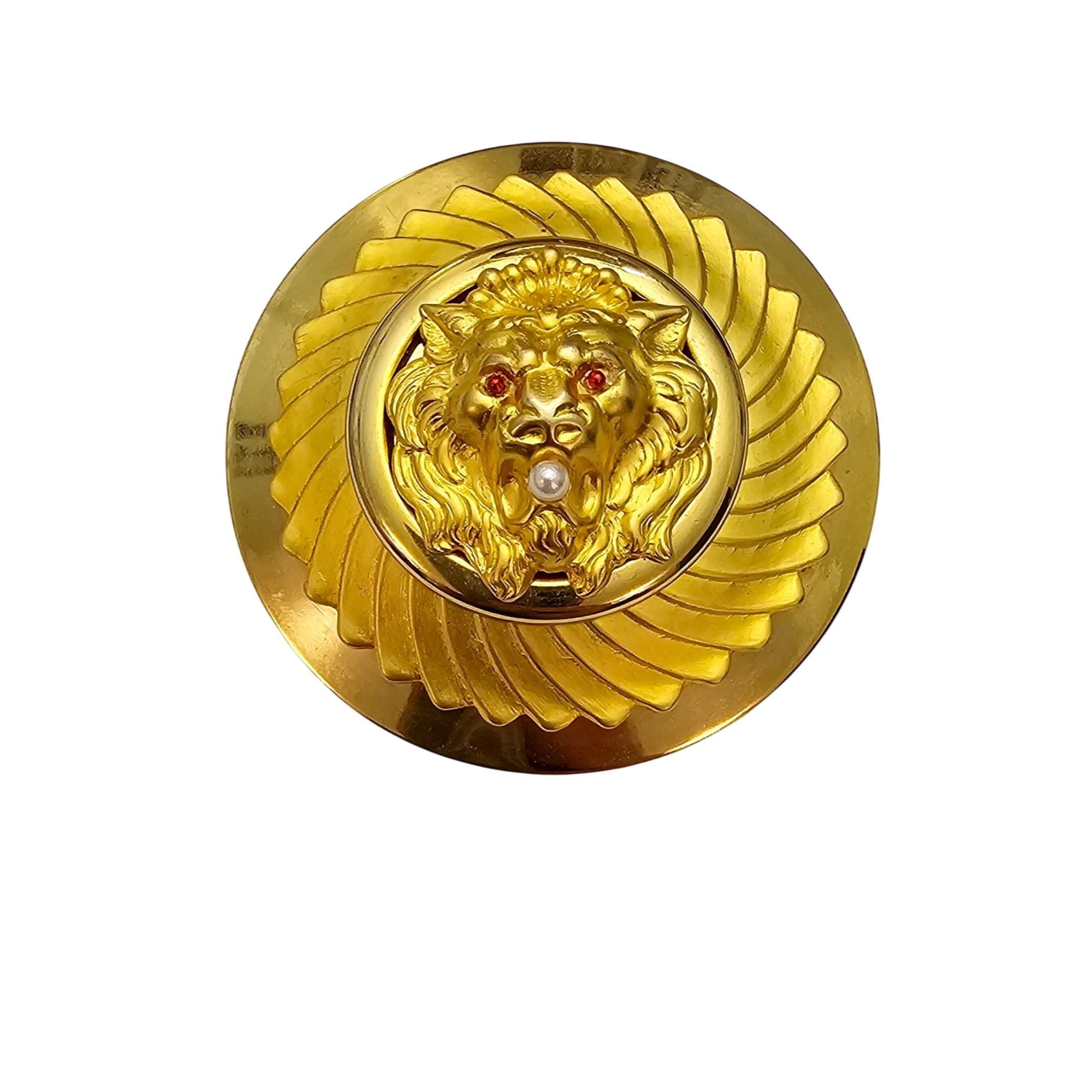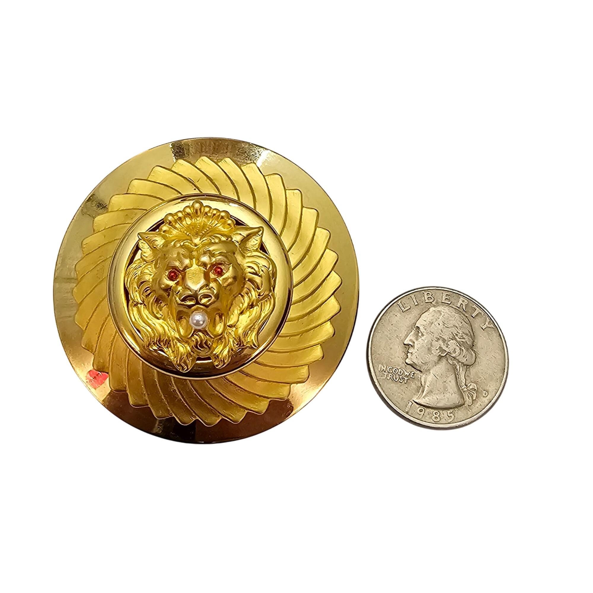 Vintage Lion Brooch Faux Pearl In Mouth Red Eyes Pin J695