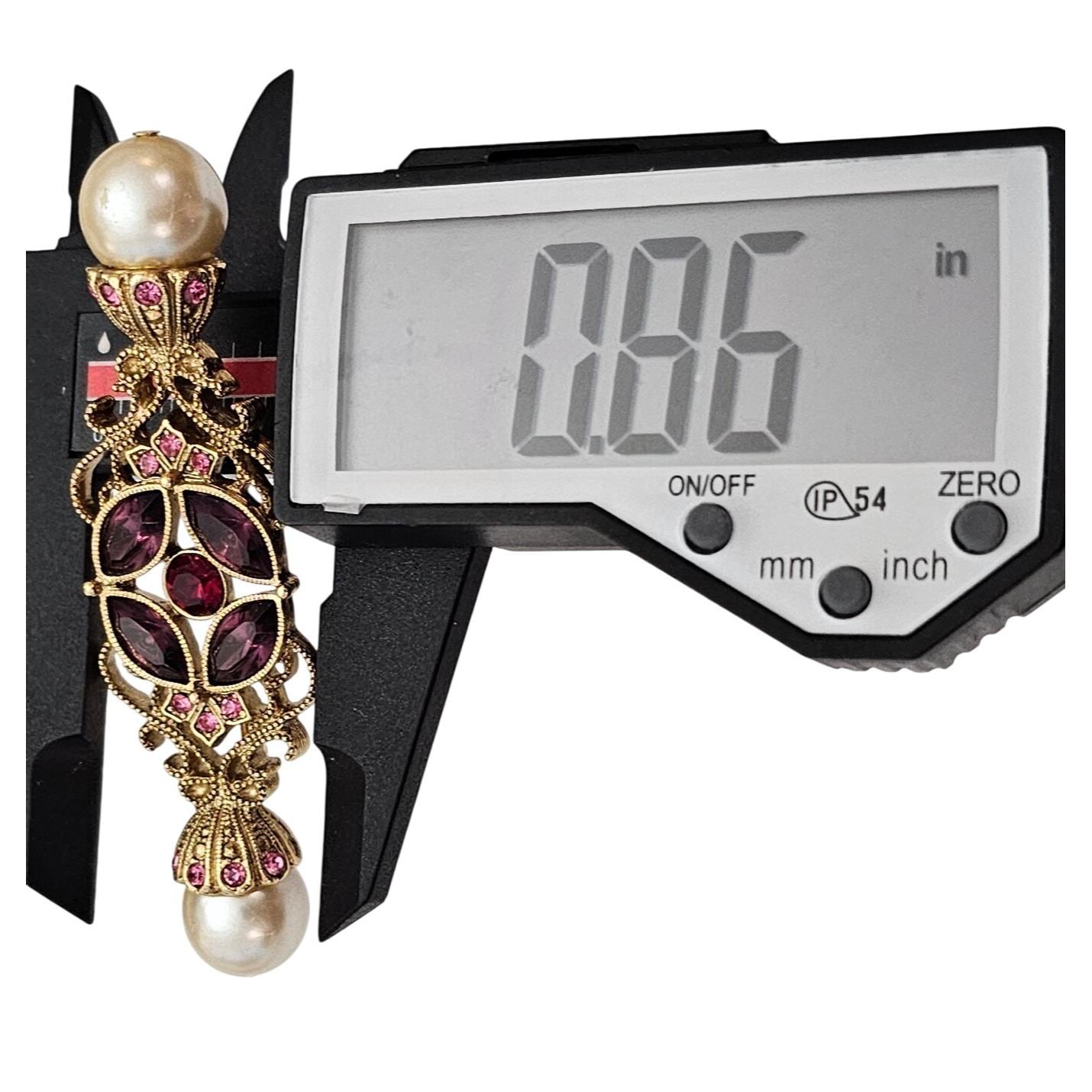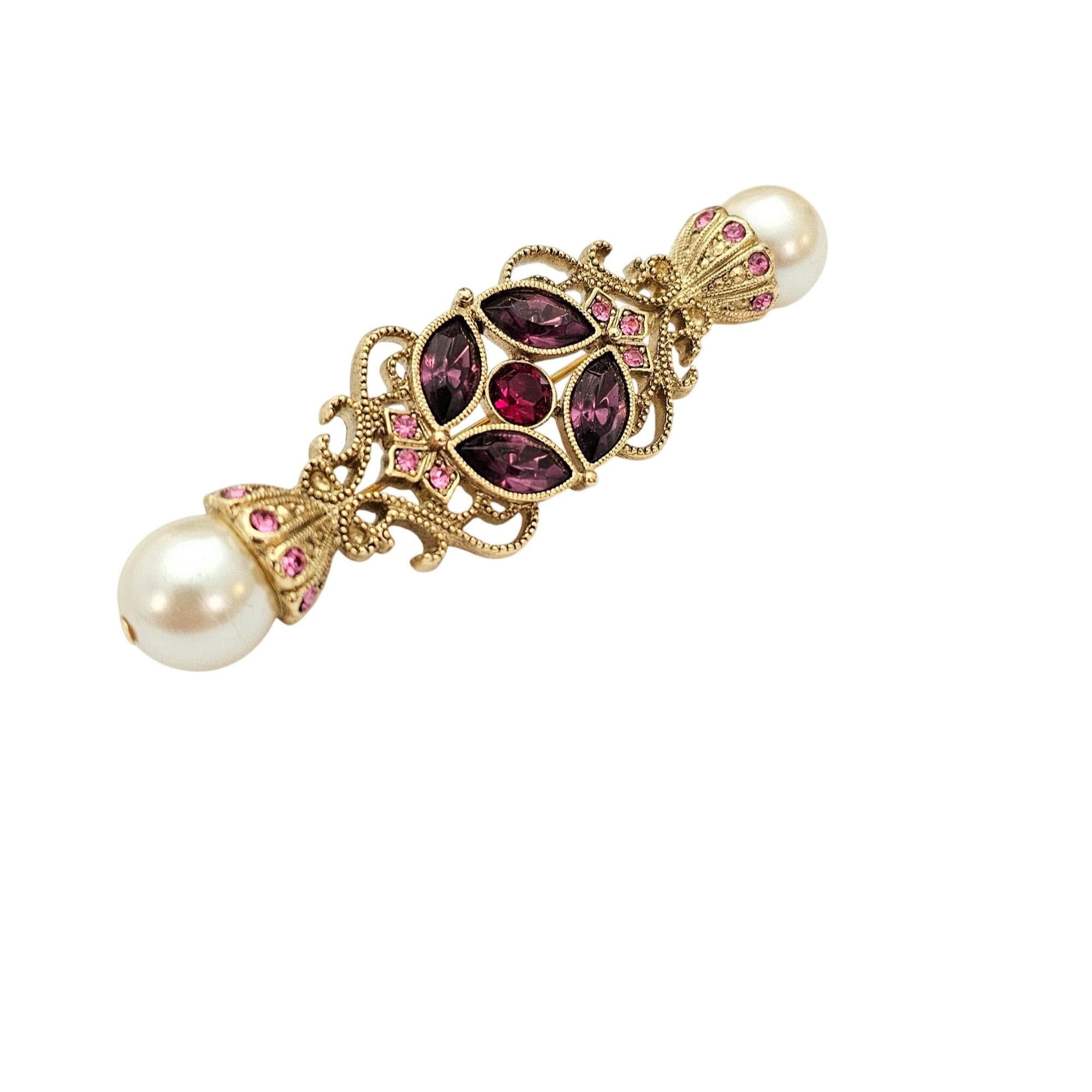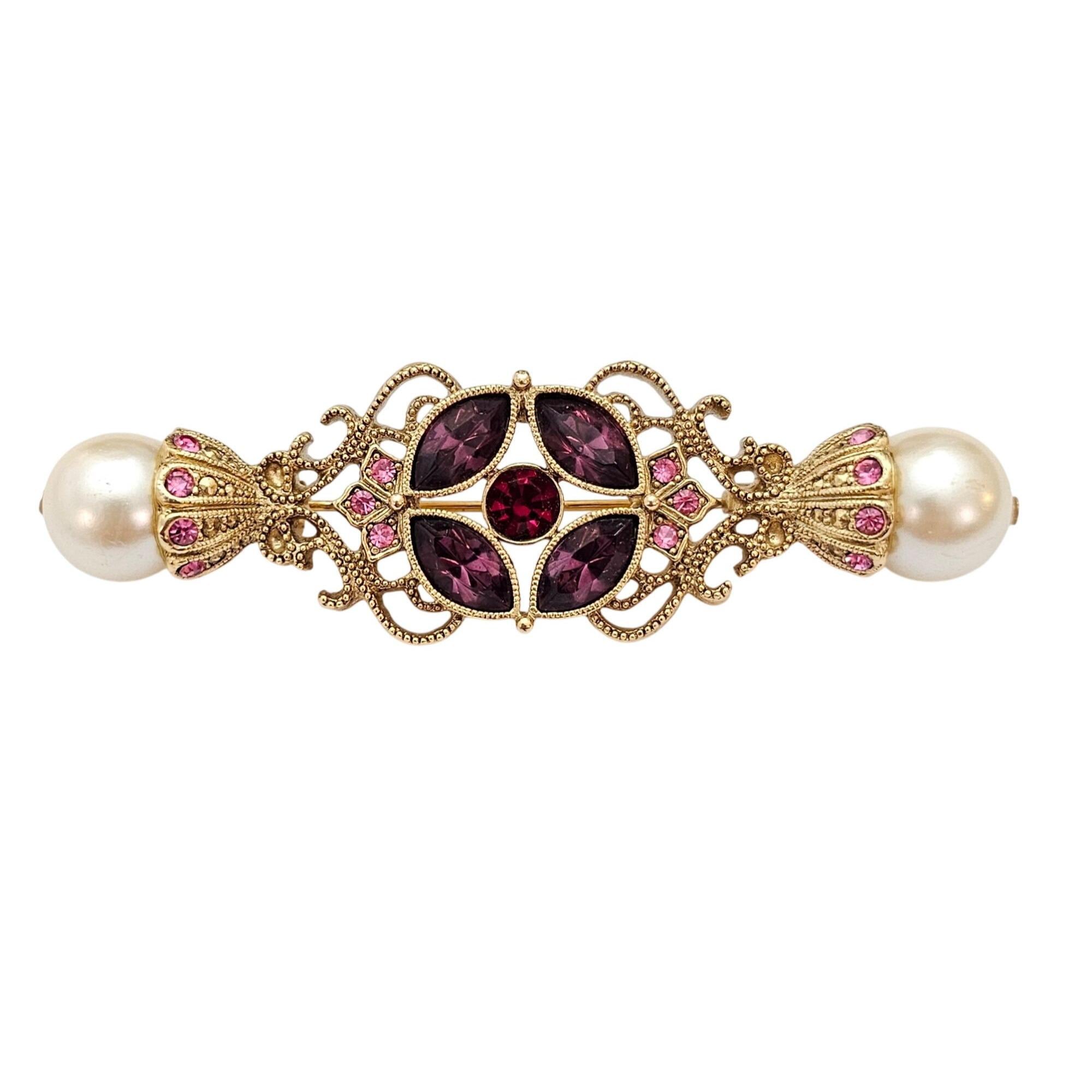 1928 Brand Pink Red Purple Bar Brooch Faux Pearl Art Nouveau Style Pin J707