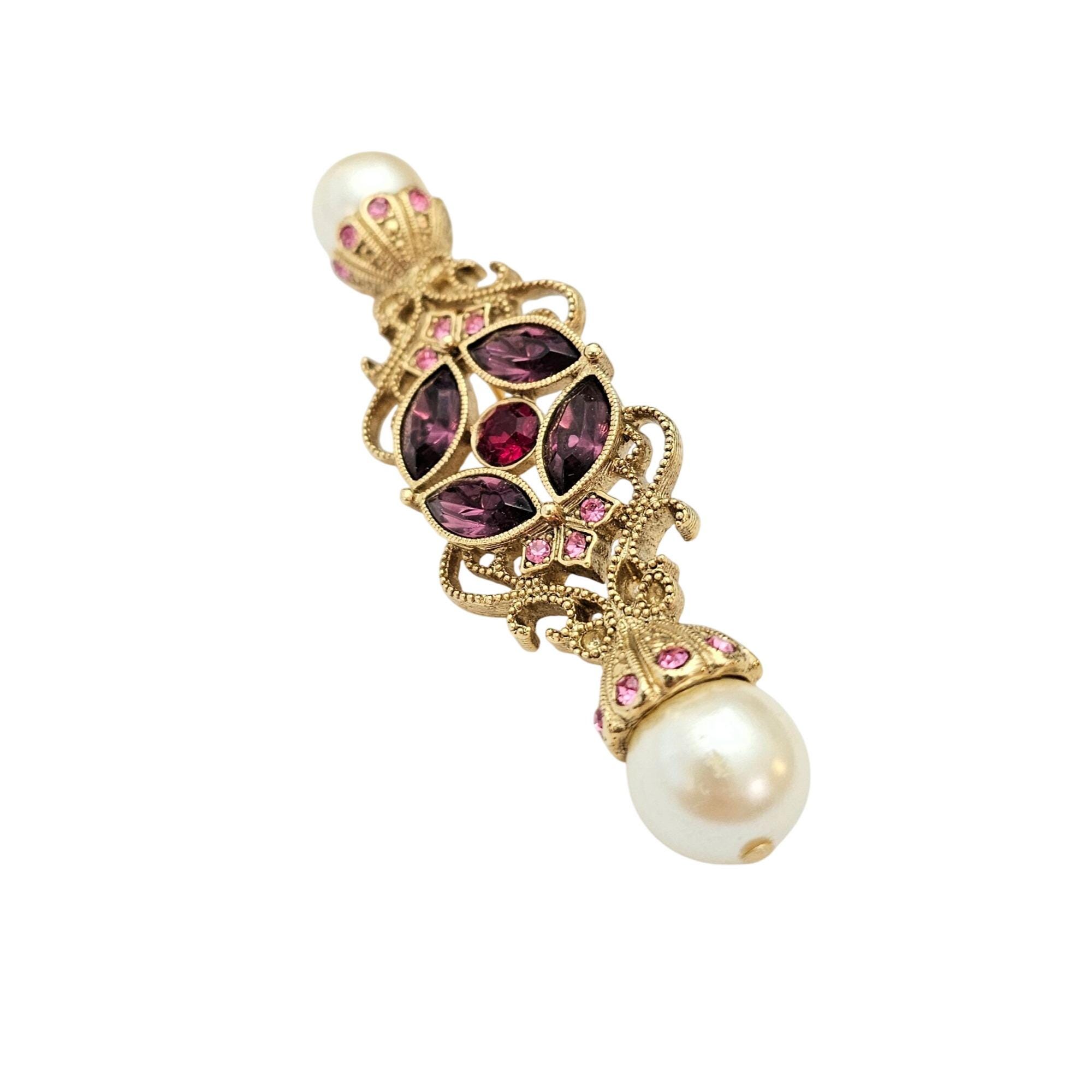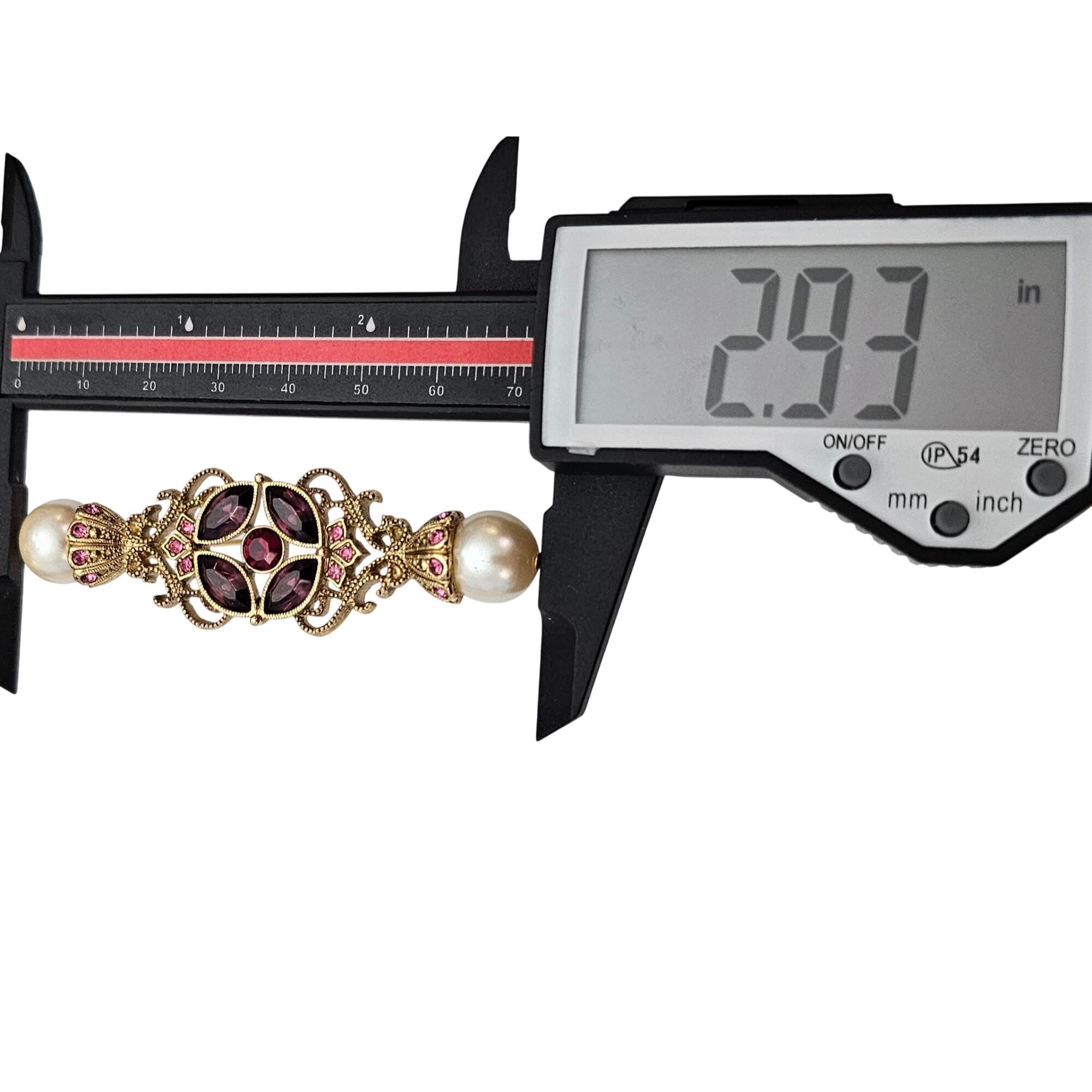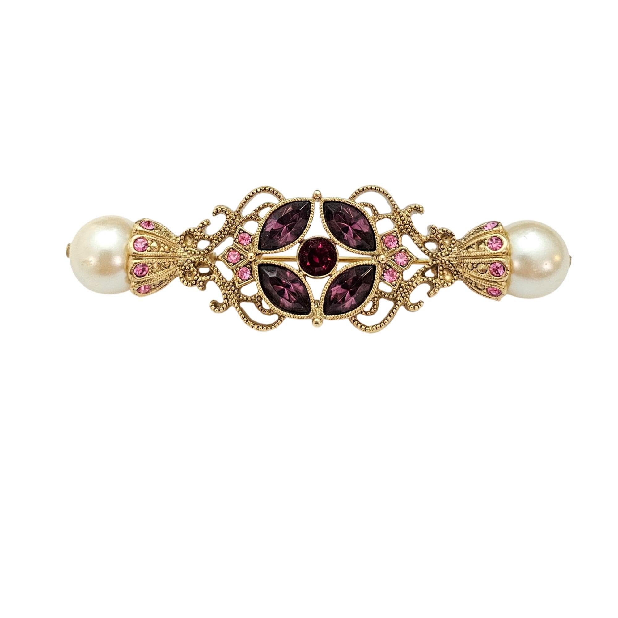 1928 Brand Pink Red Purple Bar Brooch Faux Pearl Art Nouveau Style Pin J707