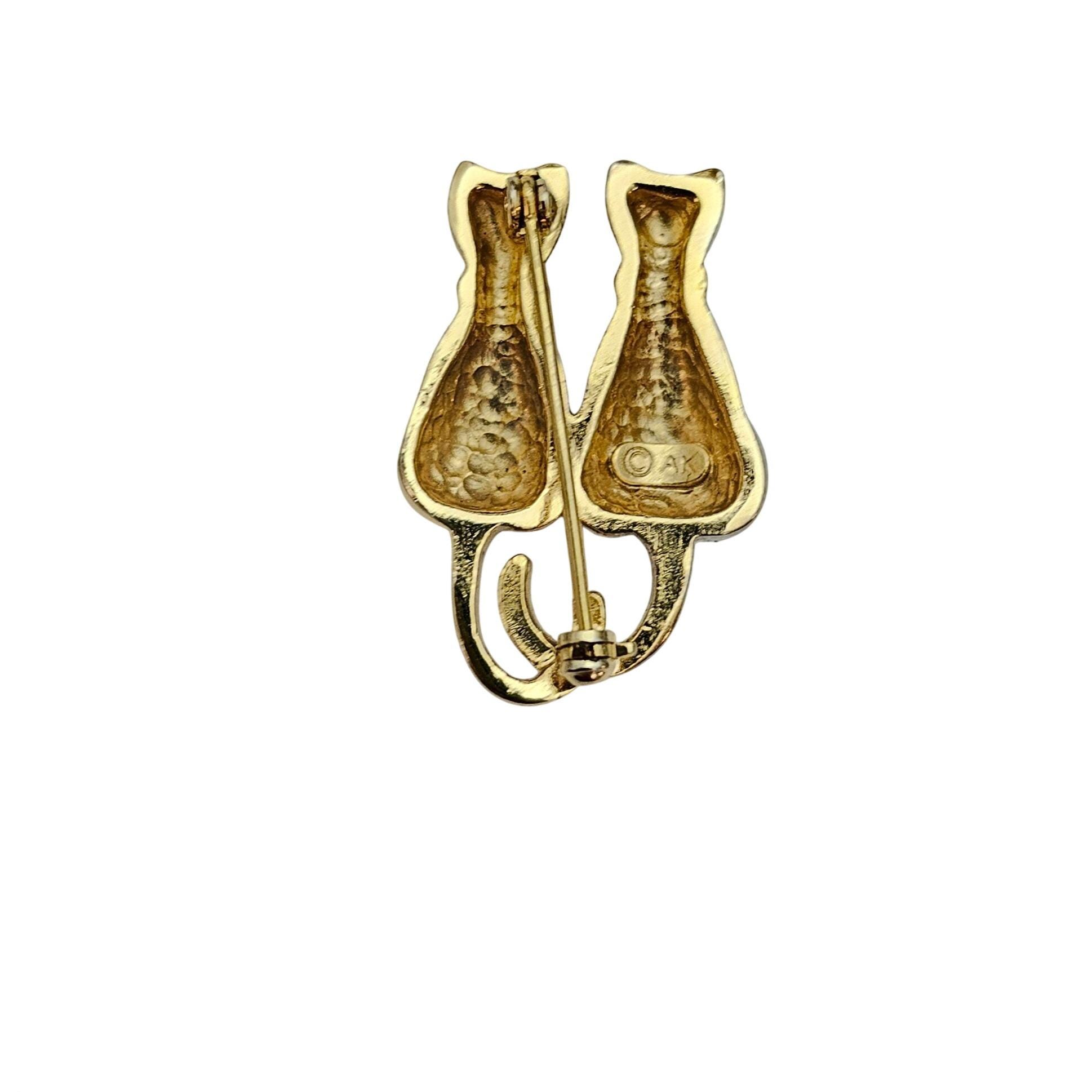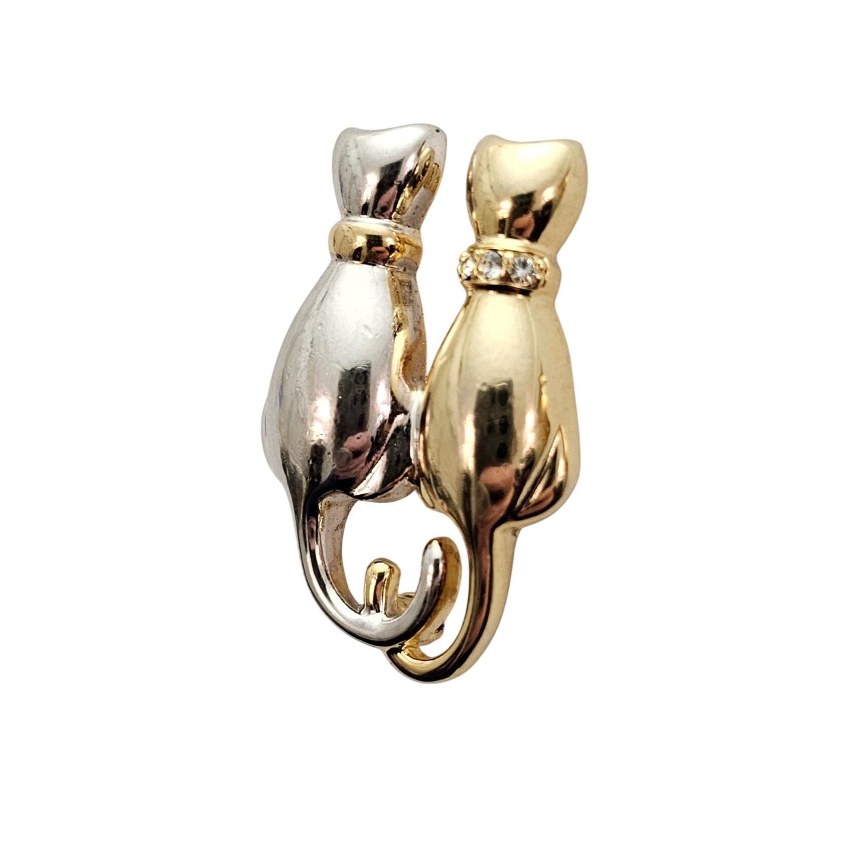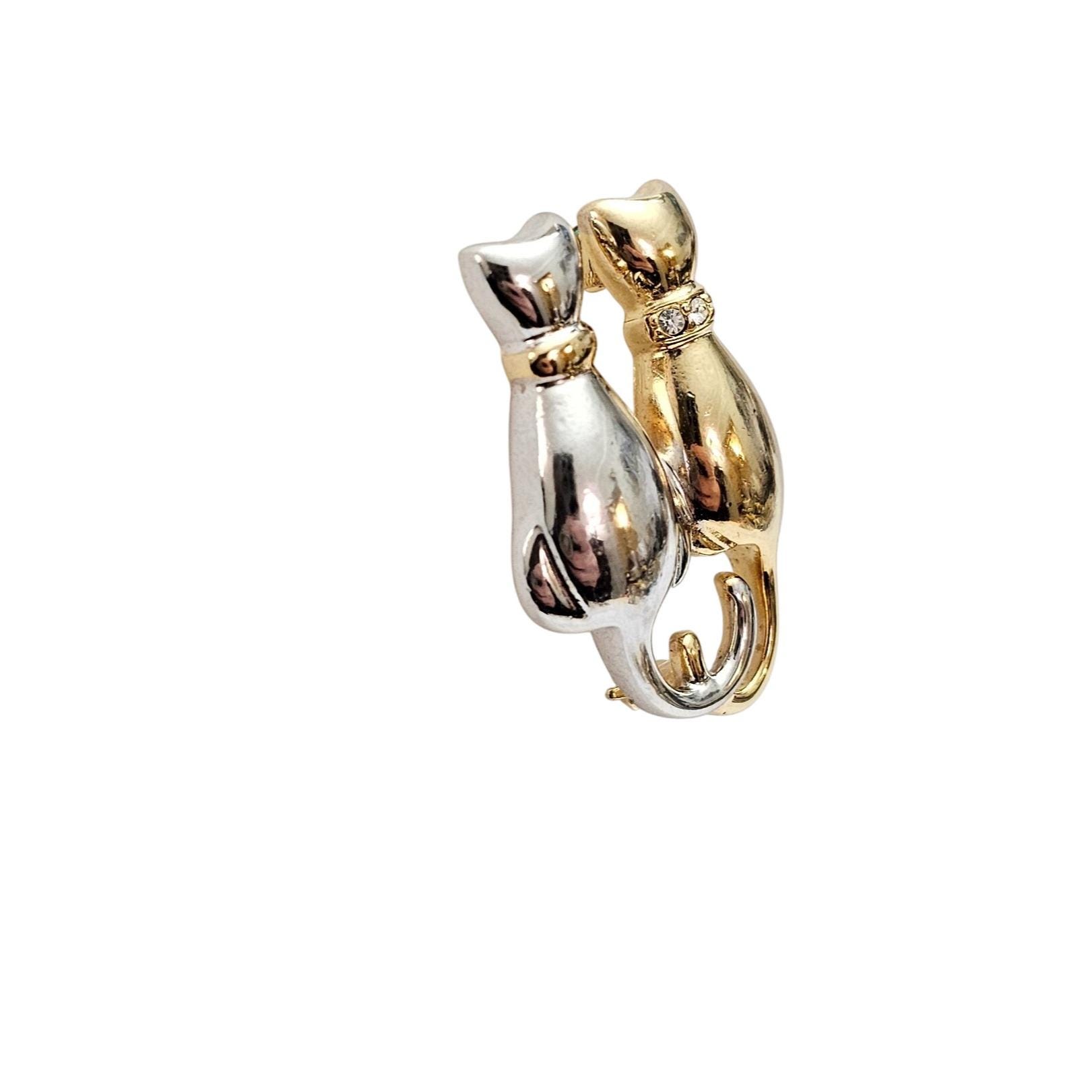 Anne Klein Cat Pair Brooch Rhinestone Pin Signed, J719