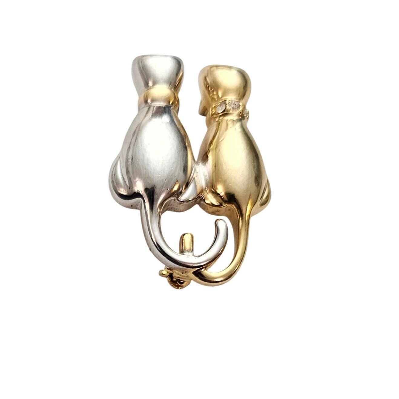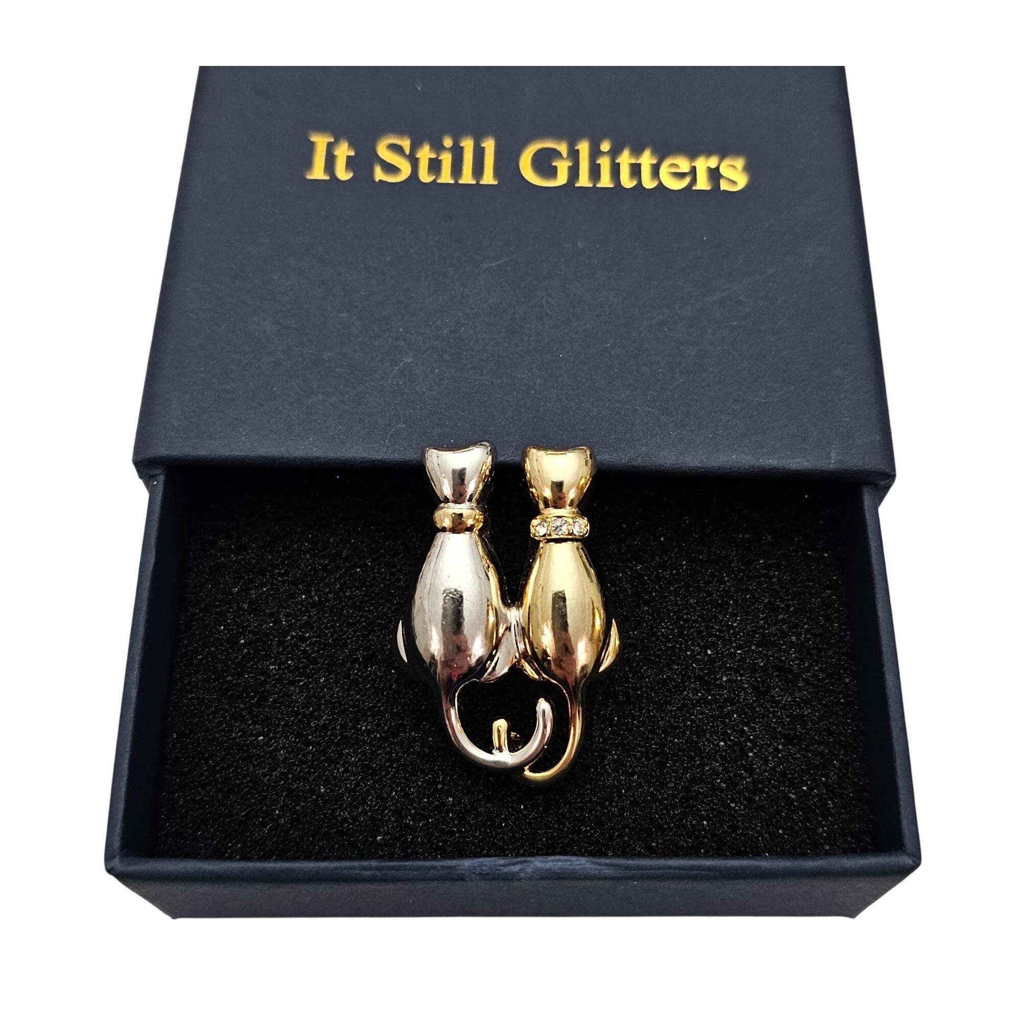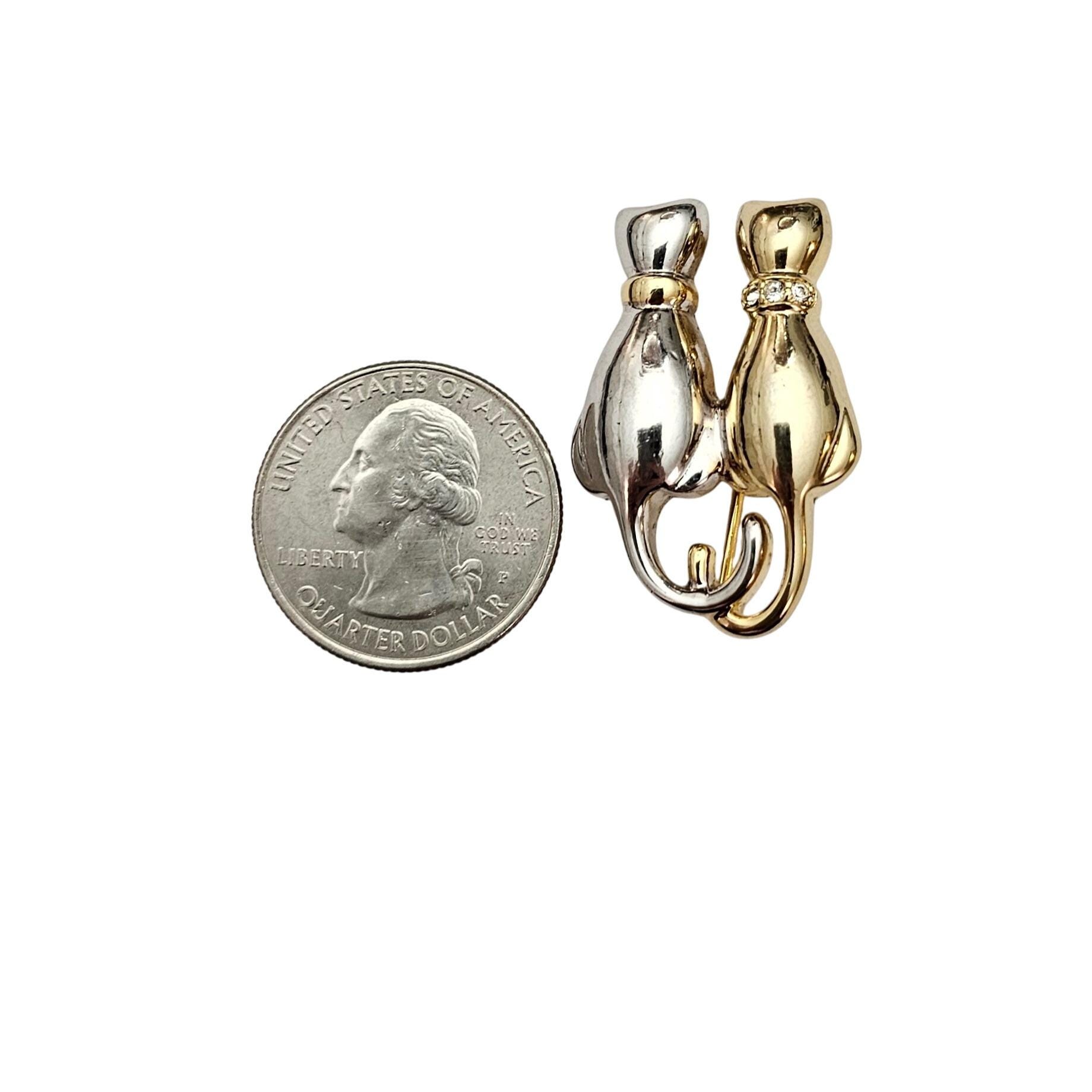 Anne Klein Cat Pair Brooch Rhinestone Pin Signed, J719