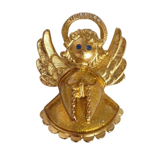 PELL Gold Tone Faux Coral, Plastic Rose Brooch Pin, Signed E539